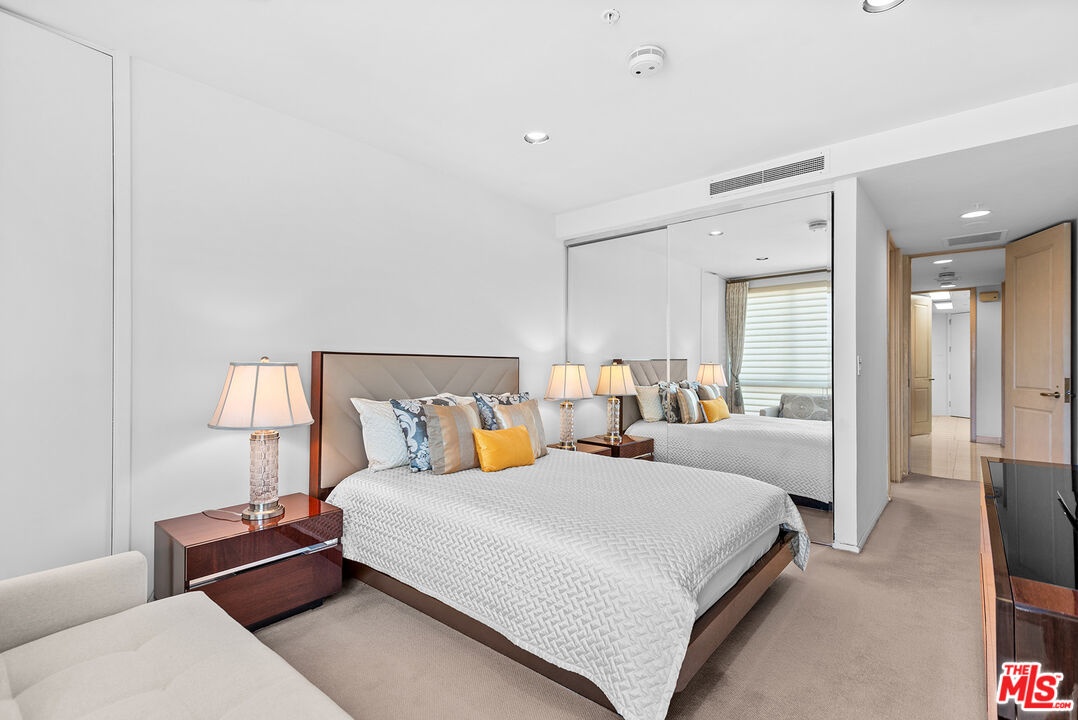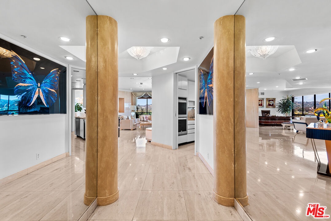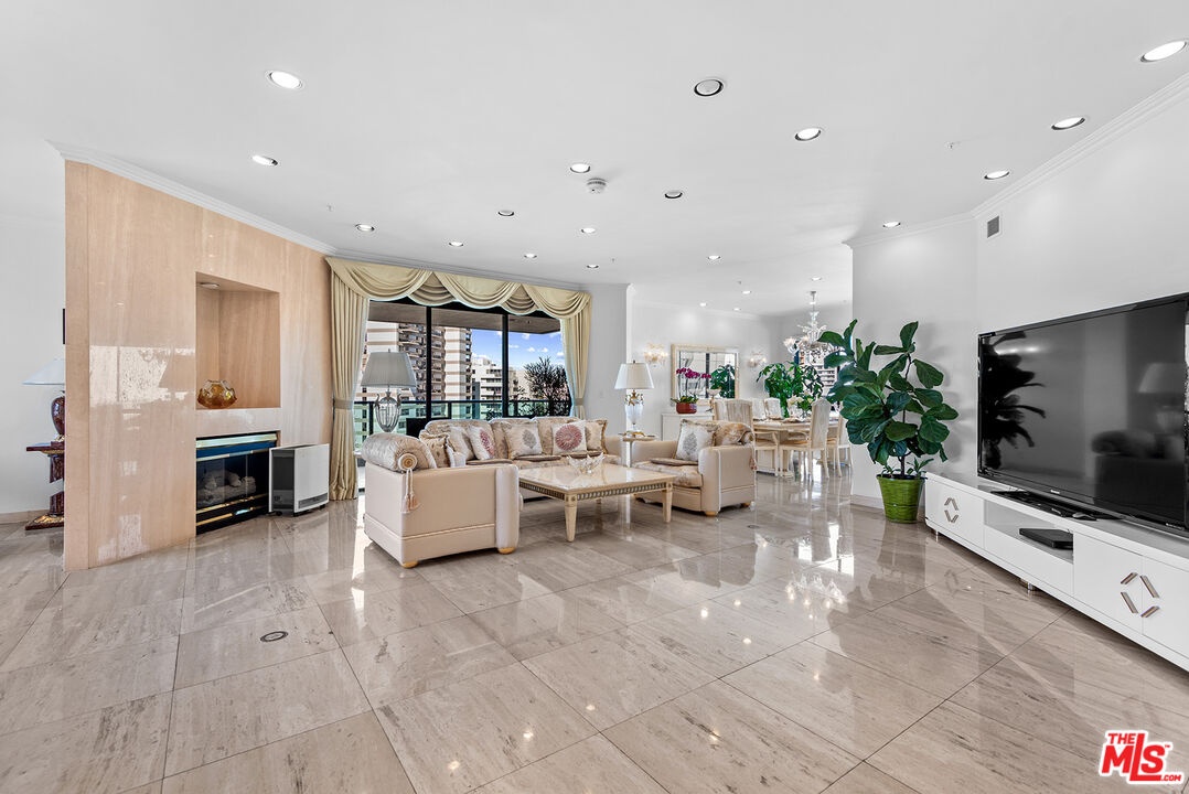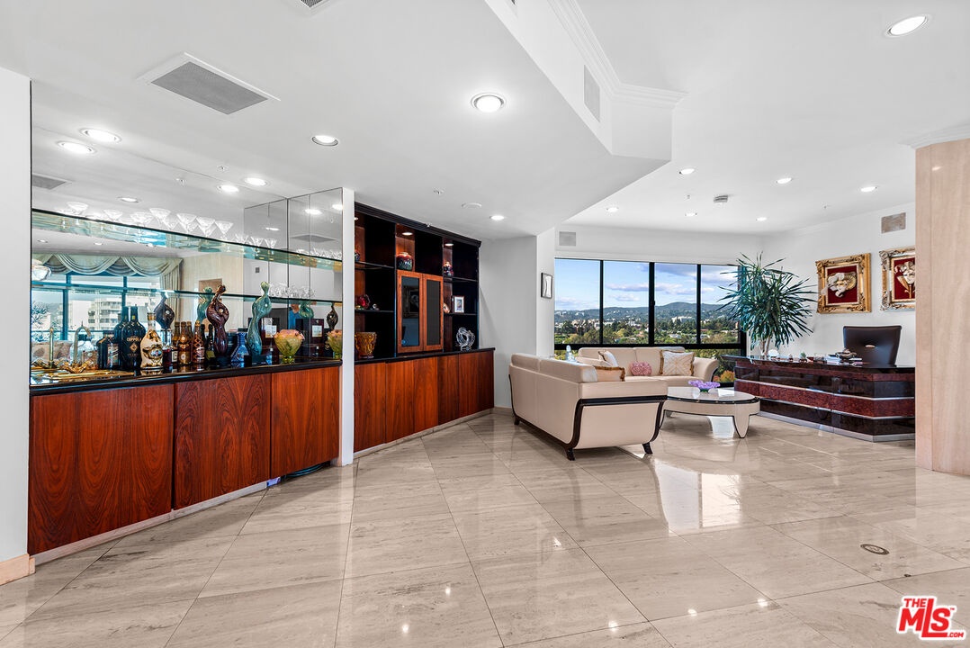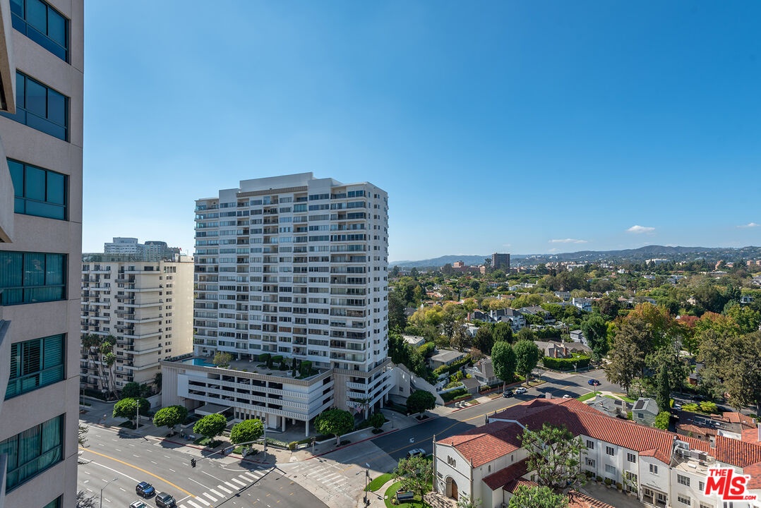 Experience luxury and comfort in this elegant 3 bedroom, 3 bath residence (currently being used as 2 + den) perched on the 12th floor of The Blair House, one of Wilshire Corridor's most desirable full-service buildings. Flooded with natural light, this spacious home showcases sweeping city and mountain views, including Century City, snow on the San Gabriel Mountains and Bel Air, through floor-to-ceiling windows, creating a serene and inspiring backdrop throughout. The formal dining area and generous living spaces are perfect for entertaining, complemented by timeless finishes and beautiful travertine marble floors. The expansive primary suite features a large bedroom, a spa-like bathroom, and a large walk-in closet. The second bedroom with ensuite bath, offers flexibility for guests, a home office, or den. Additional highlights include large laundry with lots of additional storage and 2 zones of heat and air. Unit 1206 comes with 3 deeded parking spaces. The Blair House offers an unparalleled lifestyle with 24-hour valet parking and security, Huge sparkling saline pool & spa on large pool deck featuring lots of comfortable seating and BBQs. A new huge fully equipped gym is currently under construction. Spacious rec room and north/south tennis court with lights complete the picture. This is better than living at The Four Seasons Hotel!