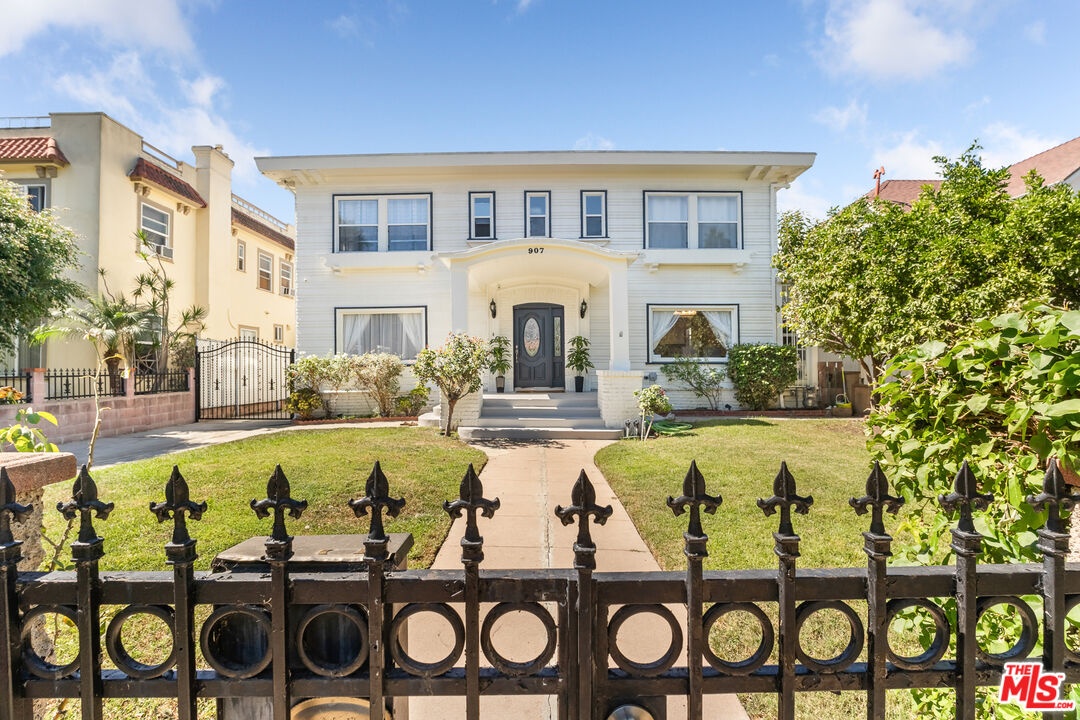 A location of this caliber is truly irreplaceable. Ideally situated on one of the most coveted, tree-lined streets in Wilshire Park HPOZ, 907 Westchester Place sits among a collection of architecturally significant homes that define this historic enclave. This Craftsman-influenced American Foursquare, enriched with Colonial Revival, faces east, welcoming the morning sun and bathing the interiors in abundant natural light throughout the day. The property has been taken down to the studs and thoughtfully rebuilt with a careful balance of preservation and modern refinement. The residence offers over 3,400 square feet of living space across 4 bedrooms and 4 bathrooms, featuring soaring ceilings, custom millwork, and interiors showered with natural light. The chef's kitchen pairs timeless white shaker cabinetry with marble countertops, creating a space that is both elegant and functional. Beyond, the expansive backyard unfolds into a private retreat with a basketball court, and generous space for a future pool or ADU. The detached garage is convenient to have and is ready for conversion into additional living space ideal for guests, a studio, or income-producing potential. Moments from Hancock Park, Koreatown, and the city's finest cultural destinations, this home offers the rare opportunity to own a masterfully restored piece of Los Angeles historyone that gracefully balances architectural heritage, modern living, and enduring value.