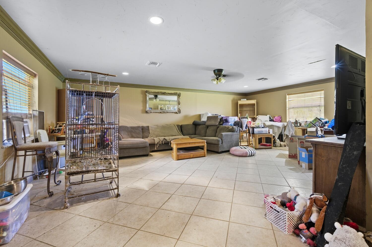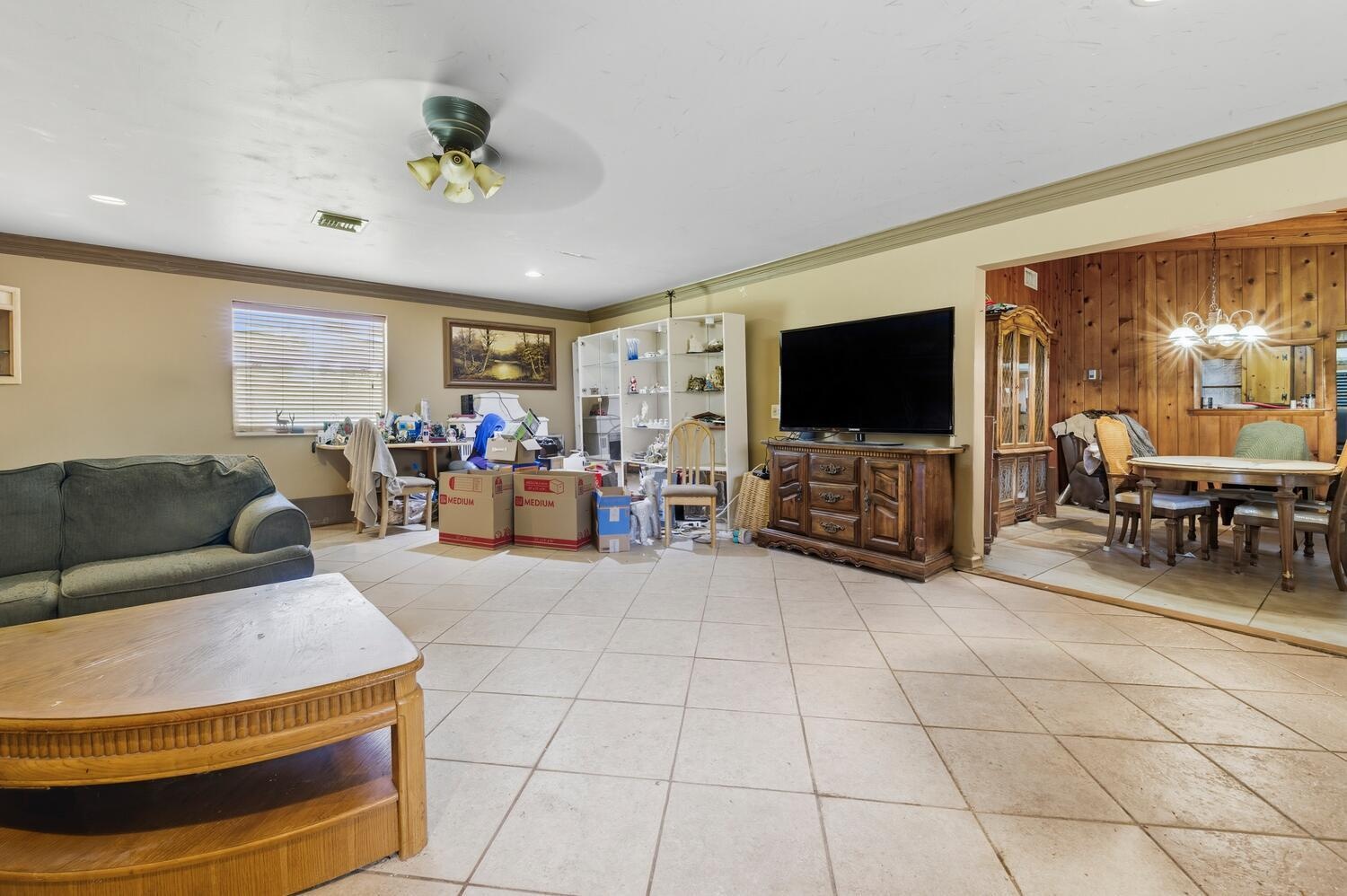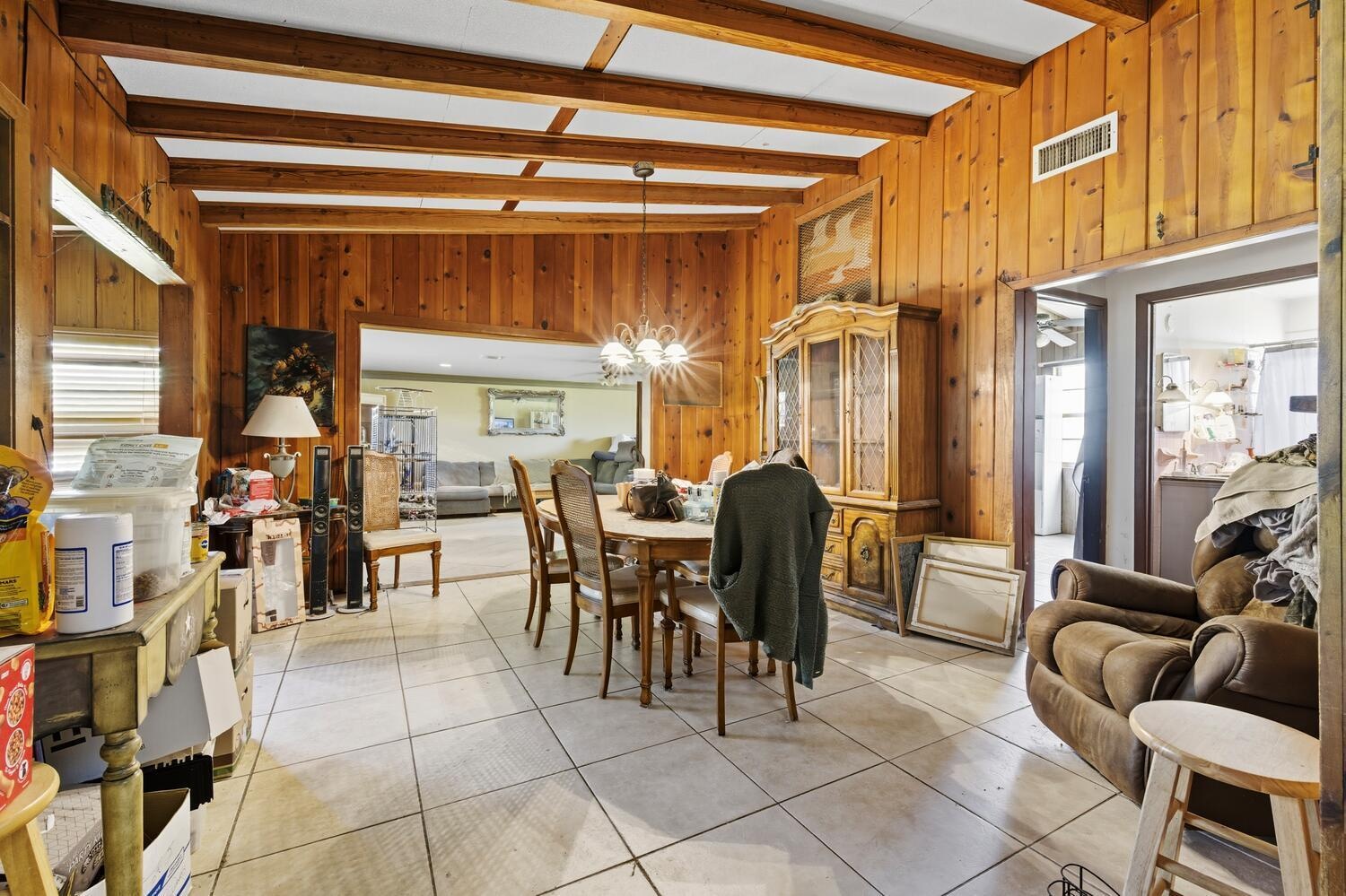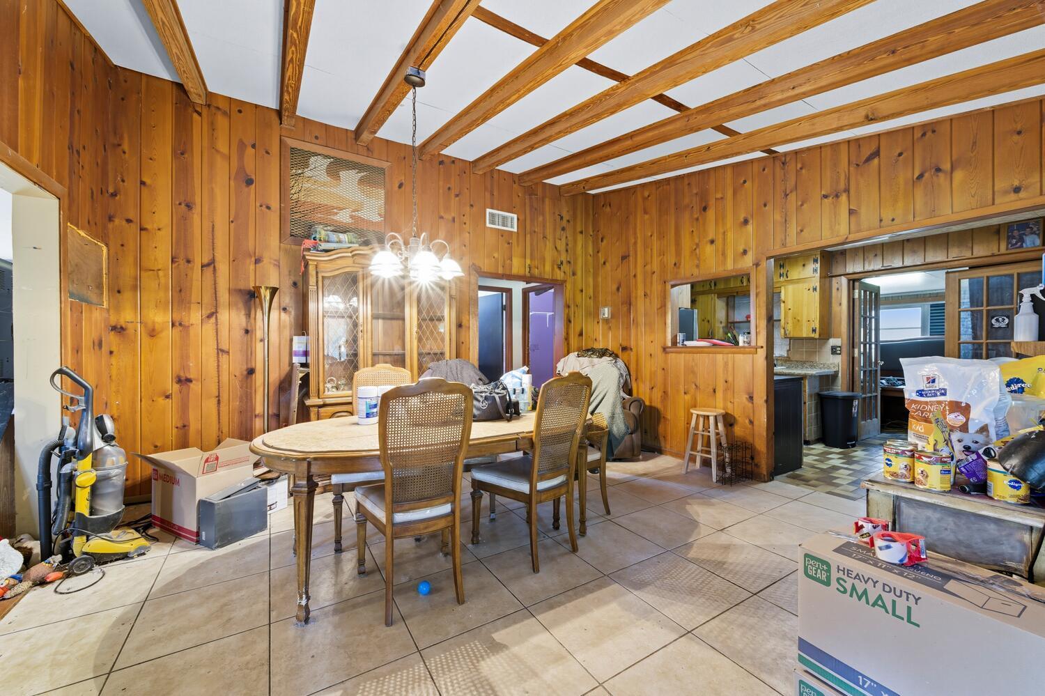 DescriptionMAJOR INVESTMENT OPPORTUNITY! Nestled at the end of a quiet cul-de-sac, sits this unique property with nearly a full acre of land at .97 acres. This expansive property is zoned multifamily, offering endless potential to build multiple units such as duplexes, triplexes, quadplexes or simply enjoy the extra space for your own use. The existing home features three bedrooms and one bathroom, with a covered patio that can also be used as a carport, plus an attached shed for convenient storage. Step through the covered front entry into the welcoming foyer and front sitting room, where tile flooring extends throughout the home. The foyer flows seamlessly into an impressive formal dining room, featuring soaring ceilings, rustic exposed beams, and an a chandelier. To the left, you'll find