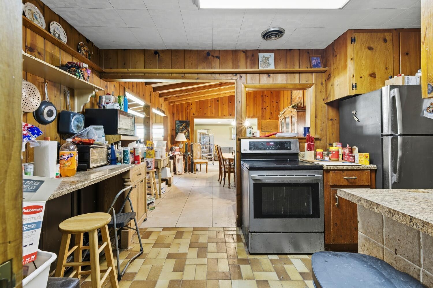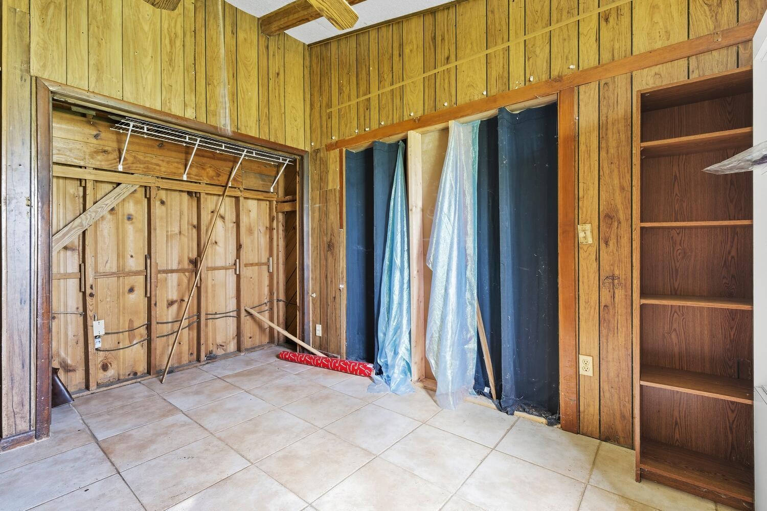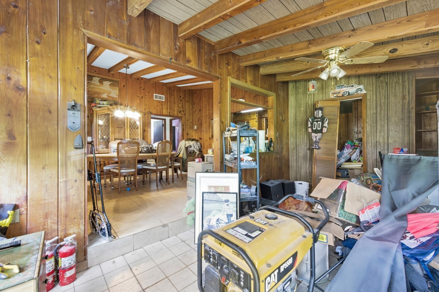 MAJOR INVESTMENT OPPORTUNITY! Nestled at the end of a quiet cul-de-sac, sits this unique property with nearly a full acre of land at .97 acres. This expansive property is zoned multifamily, offering endless potential to build multiple units such as duplexes, triplexes, quadplexes or simply enjoy the extra space for your own use. The existing home features three bedrooms and one bathroom, with a covered patio that can also be used as a carport, plus an attached shed for convenient storage. Step through the covered front entry into the welcoming foyer and front sitting room, where tile flooring extends throughout the home. The foyer flows seamlessly into an impressive formal dining room, featuring soaring ceilings, rustic exposed beams, and an a chandelier. To the left, you'll find