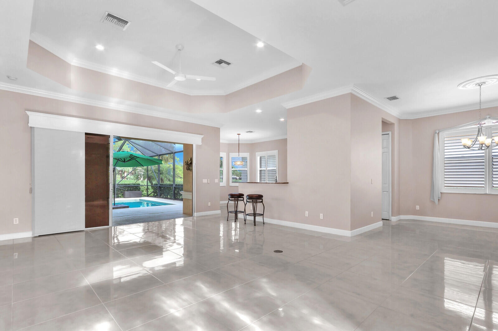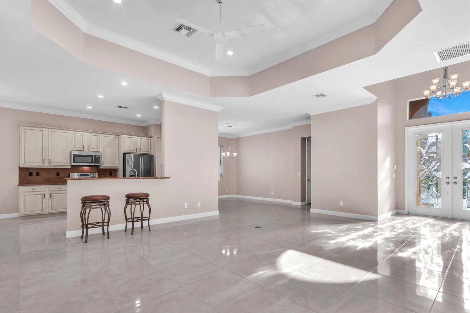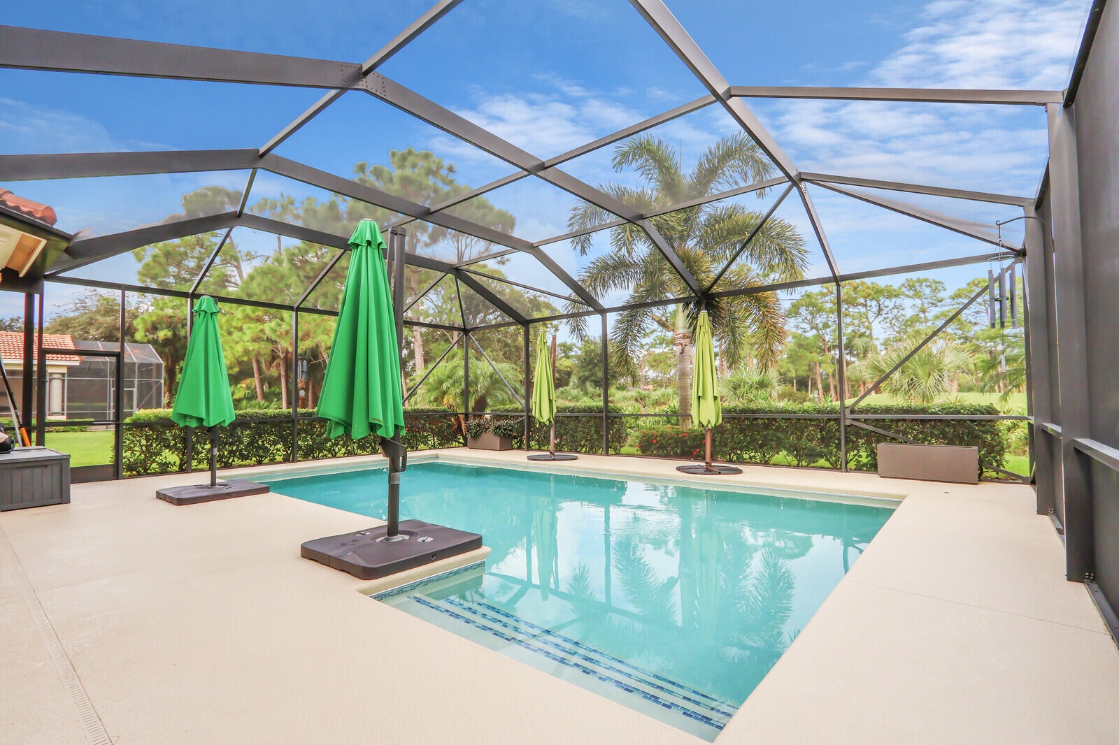 DescriptionBREATHTAKING GOLF & WATER VIEWS! Experience refined living in this IMMACULATE, UPDATED, 3-bedroom, 3-bath property boasting elegant decor, designer finishes, current colors & high gloss porcelain tiles throughout for a sleek, modern aesthetic. A highlight of the property is the 15x30 heated, saltwater pool & enclosure that was added in 2019. The kitchen has been beautifully updated with modern finishes, full extension drawers & soft-close doors & drawers, SS appliances & granite countertops. LED lighting throughout provides both style & efficiency. The upgraded lighting, fixtures & ceiling fans add a touch of luxury, while crown moldings, plantation shutters & wood valance over the patio doors enhance the overall sophistication. The home is fully equipped with storm protection, including