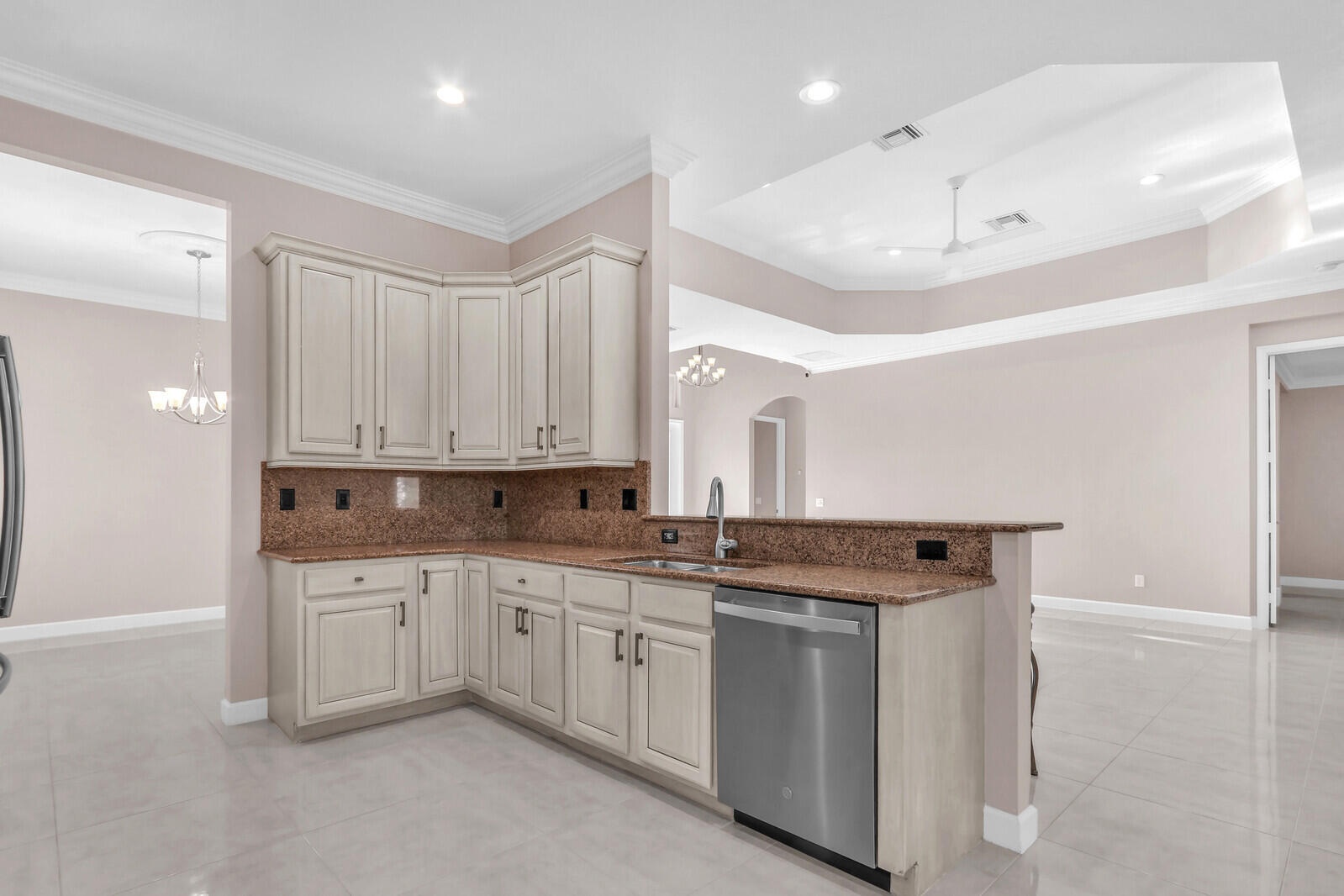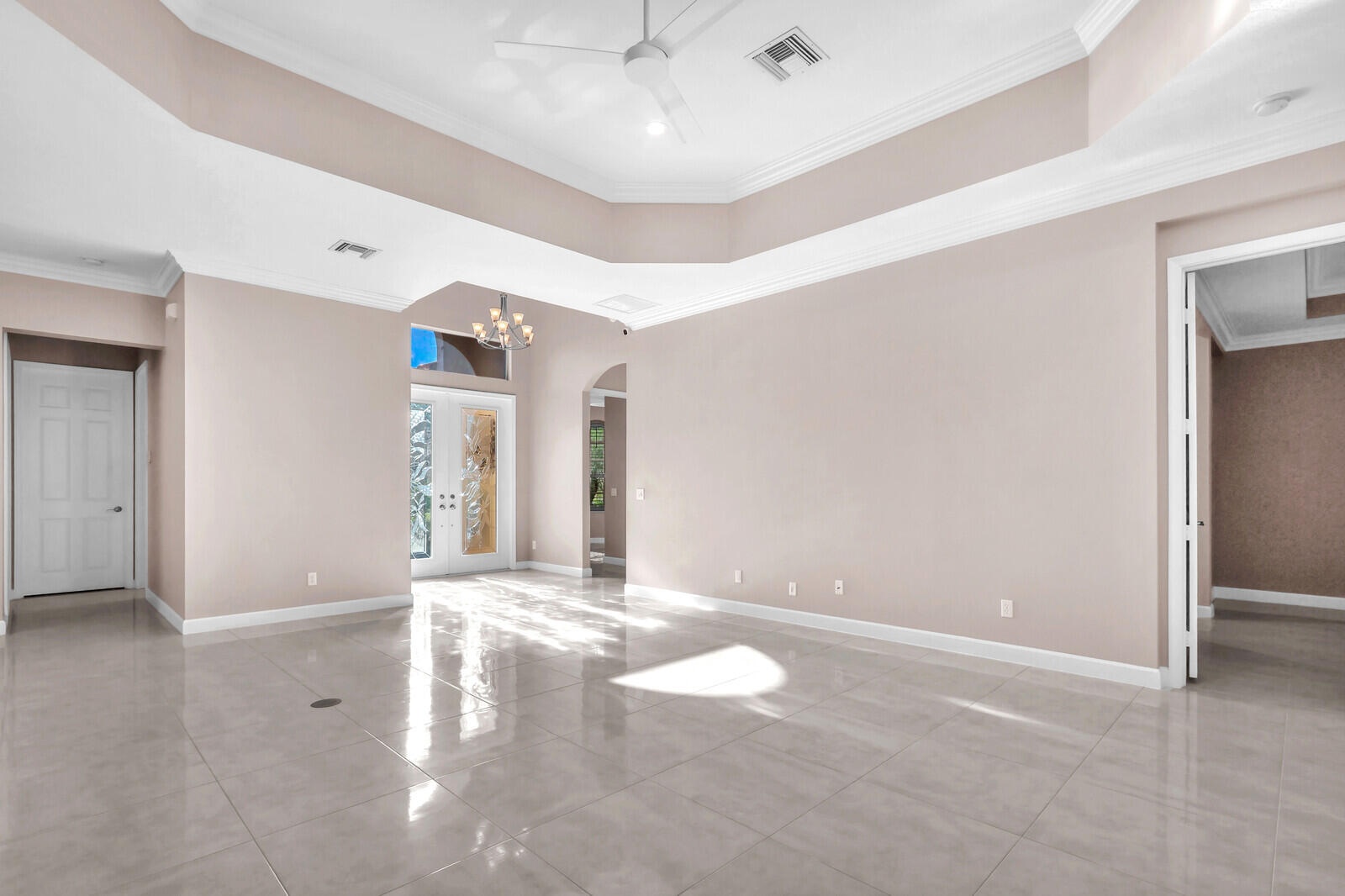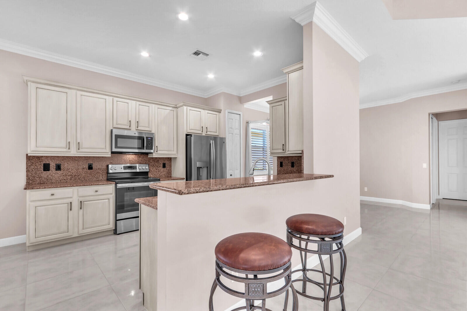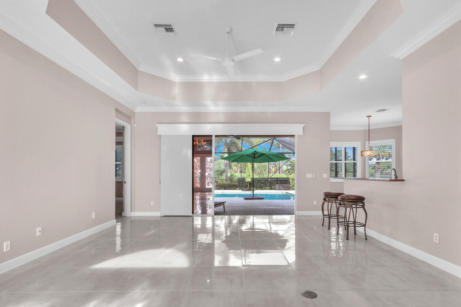 DescriptionBREATHTAKING GOLF & WATER VIEWS! Experience refined living in this IMMACULATE, UPDATED, 3-bedroom, 3-bath property boasting elegant decor, designer finishes, current colors & high gloss porcelain tiles throughout for a sleek, modern aesthetic. A highlight of the property is the 15x30 heated, saltwater pool & enclosure that was added in 2019. The kitchen has been beautifully updated with modern finishes, full extension drawers & soft-close doors & drawers, SS appliances & granite countertops. LED lighting throughout provides both style & efficiency. The upgraded lighting, fixtures & ceiling fans add a touch of luxury, while crown moldings, plantation shutters & wood valance over the patio doors enhance the overall sophistication. The home is fully equipped with storm protection, including