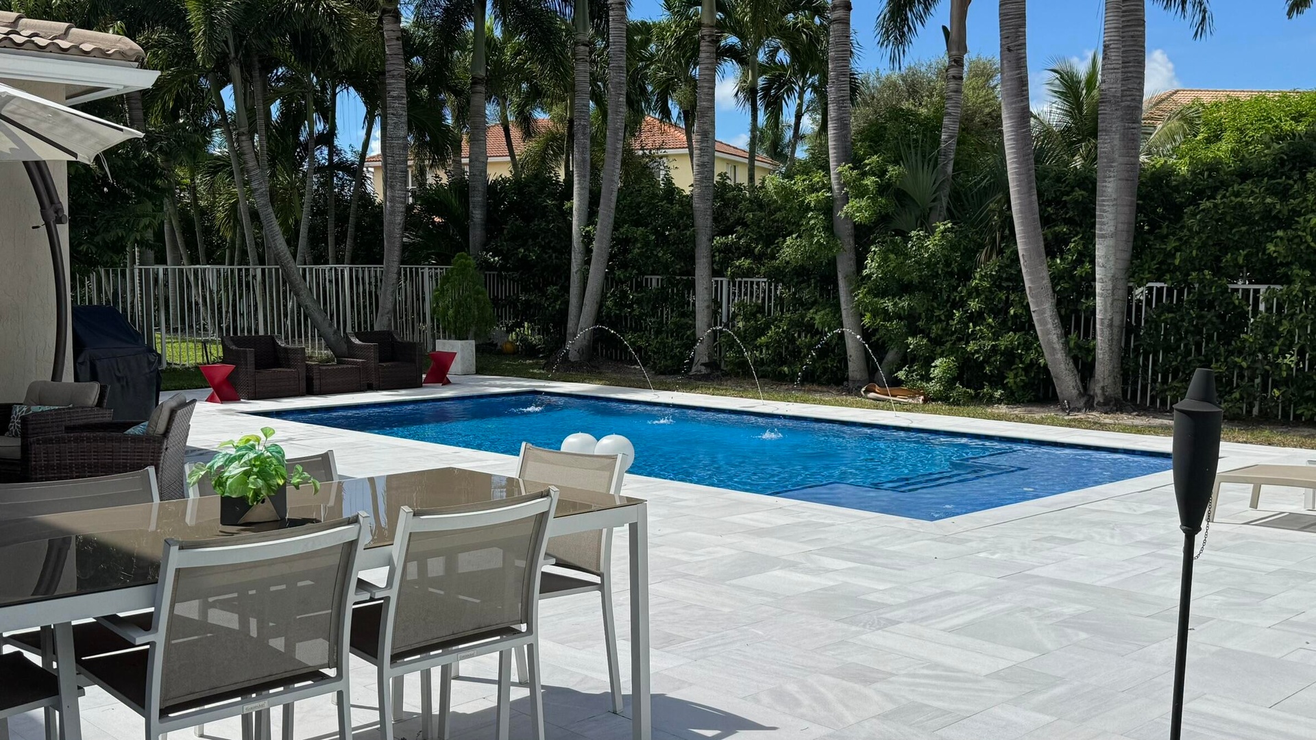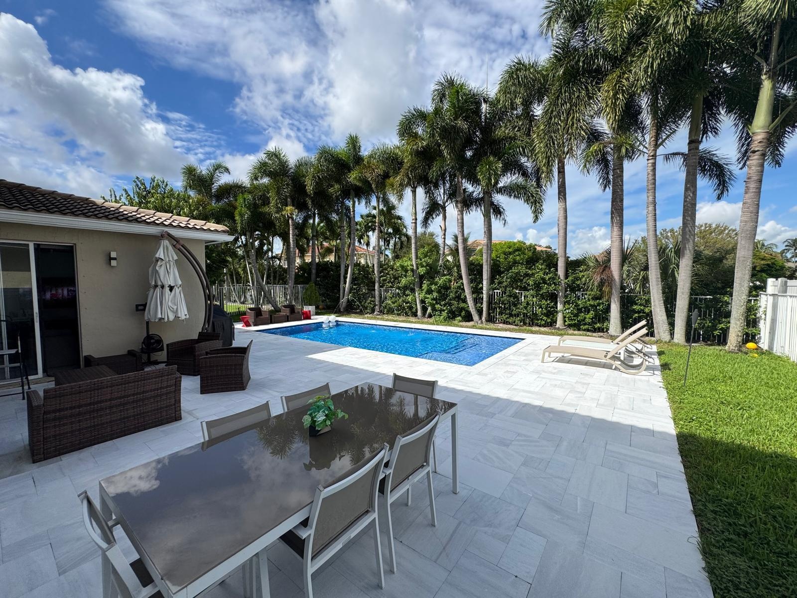 DescriptionStunning spacious 5 Bedroom, 3 Bath Pool Home in Prestigious Gated Golf Community (No Mandatory Membership!)Welcome to your dream home! This beautifully updated 2-story residence offers the perfect blend of luxury and comfort, featuring 5 bedrooms, 3 bathrooms, and porcelain tile with natural light pouring through every room, enhancing the open and airy layout.Step outside to your private oasis, a brand-new heated saltwater pool surrounded by a gorgeous marble deck, lush palm trees, and serene water views that create the ultimate resort-style atmosphere.Located in a sought-after gated community with a renowned golf course and NO mandatory membership and low HOA! This home also includes an EV charging station in the garage, updated bathrooms, and plenty of modern touches throughout.