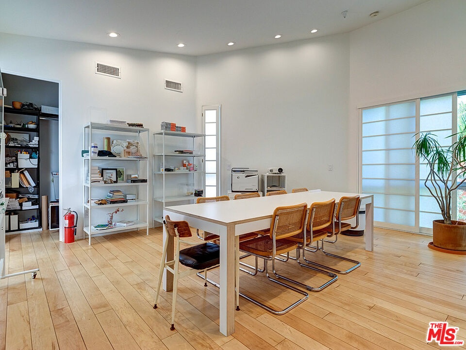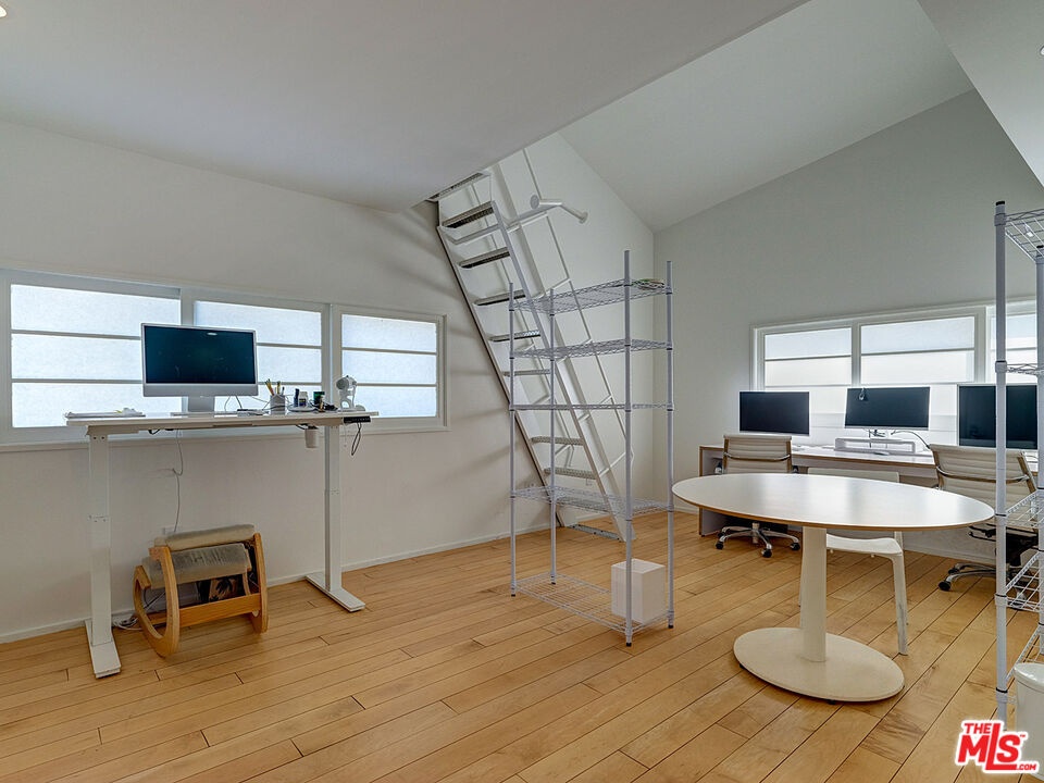 DescriptionExperience the best of Venice living in this striking 3-bedroom, 3-bathroom live/work residence designed by renowned architect Mark Mack. Encompassing 3,269 square feet of inspired design, this home offers a rare combination of scale, flexibility, and style in a secured, well-maintained 7-unit complex on famed Abbot Kinney Boulevard. Inside, soaring ceilings, abundant natural light, and hardwood floors throughout create a clean, modern aesthetic. The main living level features a bright open floor plan with custom cabinetry, high-end appliances, and generous entertaining areas. The primary suite is privately positioned away from the main living areas, while the two additional bedrooms each feature their own lofts, offering versatile space for lounging, study, or creative work. The top-level loft with floor-to-ceiling windows makes an ideal home office or other flex space. On the first level, an expansive artist's studio with en-suite bathroom (which can also be used as fourth bedroom) opens directly to the wraparound garden, a tranquil outdoor sanctuary with two seating areas with fire pits--perfect for relaxing or entertaining. Additional features include an in-unit laundry room with full-size washer and dryer, a private two-car garage, and two additional secured parking spaces (four total). With both residential and commercial zoning, this one-of-a-kind home adapts effortlessly to your lifestyle, whether used as a residence, workspace, or both on one of Los Angeles' most desirable streets.Amenities- End Unit