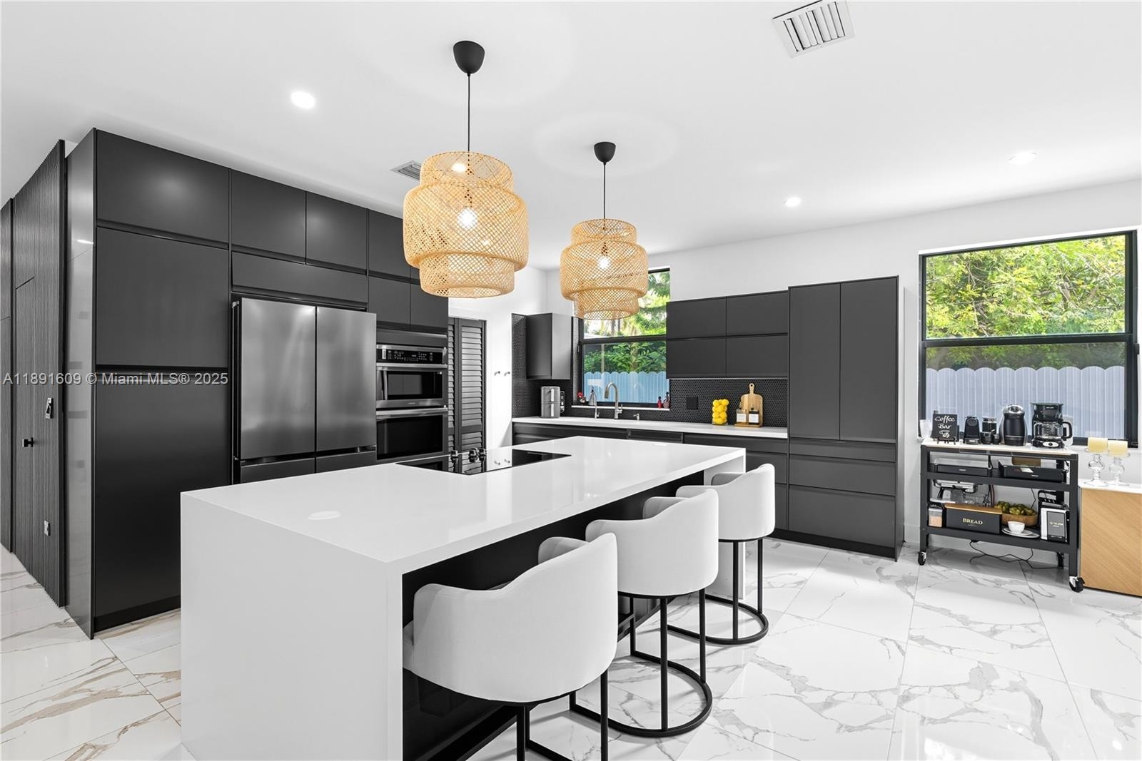 DescriptionExceptional new-construction modern home just minutes from Coral Way, Brickell, and Coconut Grove. This 4-bedroom, 4.5-bath residence perfectly blends elegance, comfort, and functionality. The main level features an open living and dining area flowing into a designer kitchen with custom cabinetry, premium appliances, and a large island. A private guest suite with its own entrance and a stylish half bath complete the first floor. Upstairs, three spacious bedroom suites include custom closets and private baths, while the primary suite offers a spa-inspired bathroom and walk-in closet with built-ins. Additional highlights include impact windows and doors, a 240V car charger, and a signed pool project with transferable credits.Virtual Tour: https://www.propertypanorama.com/instaview/mia/A11891609Amenities- BedroomOnMainLevel