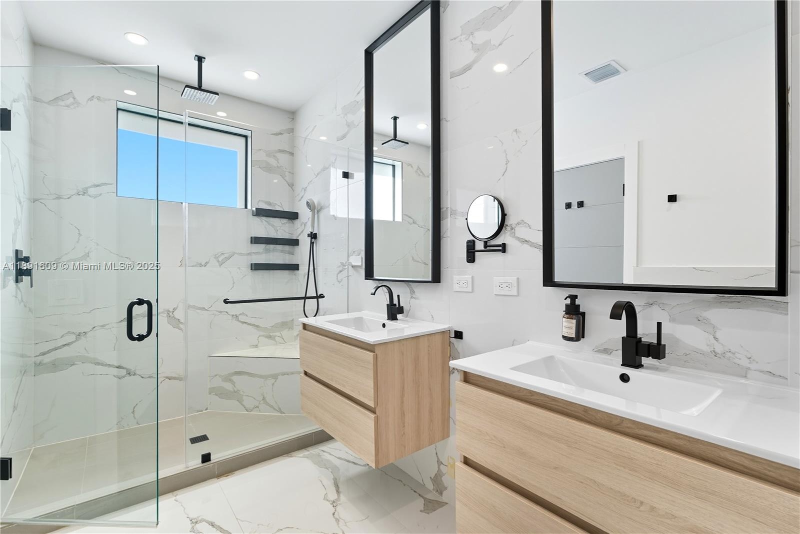 Exceptional new-construction modern home just minutes from Coral Way, Brickell, and Coconut Grove. This 4-bedroom, 4.5-bath residence perfectly blends elegance, comfort, and functionality. The main level features an open living and dining area flowing into a designer kitchen with custom cabinetry, premium appliances, and a large island. A private guest suite with its own entrance and a stylish half bath complete the first floor. Upstairs, three spacious bedroom suites include custom closets and private baths, while the primary suite offers a spa-inspired bathroom and walk-in closet with built-ins. Additional highlights include impact windows and doors, a 240V car charger, and a signed pool project with transferable credits.