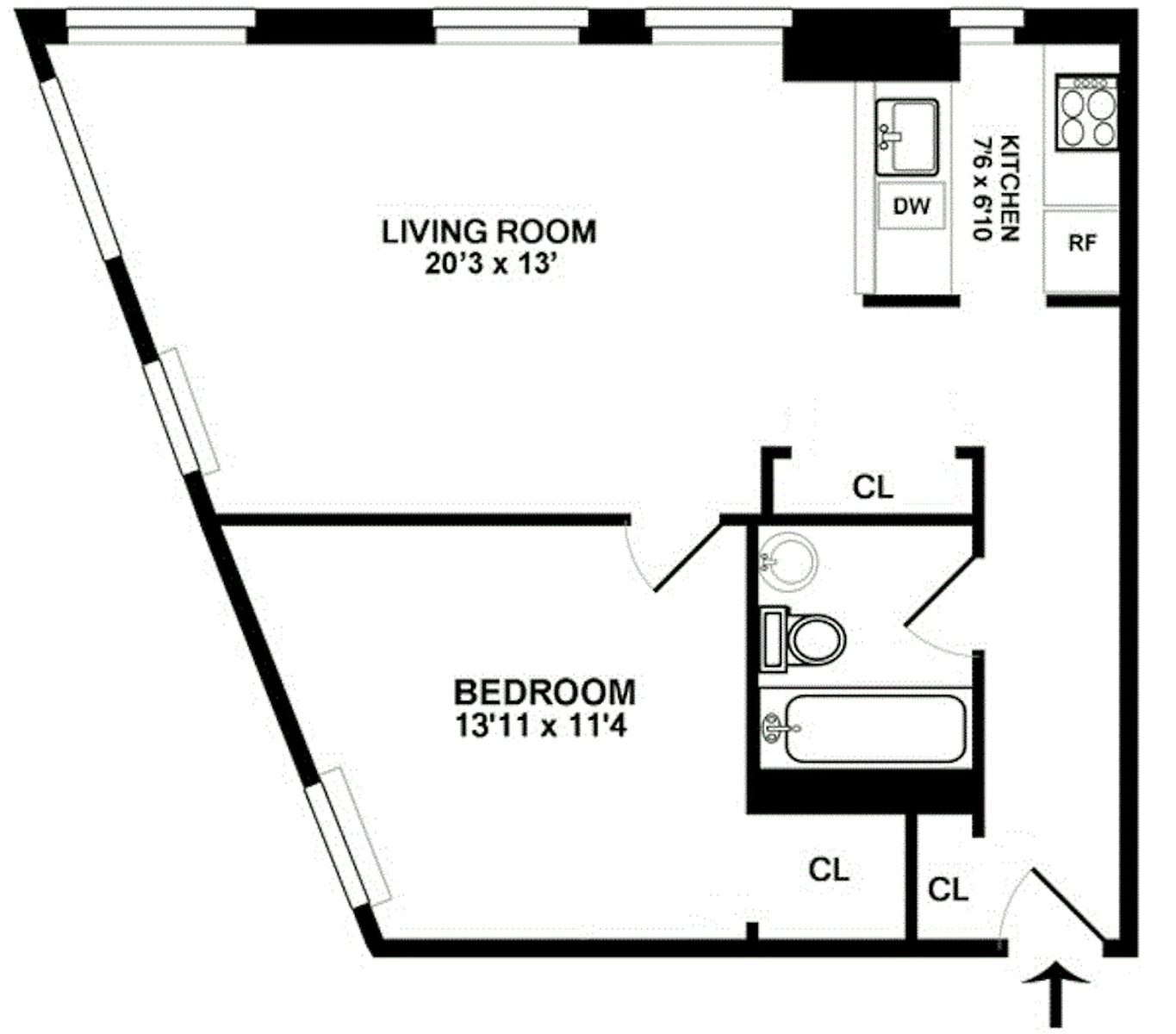 Seven oversized windows wrap the apartment, bathing every room in sunlight throughout the day. The windowed pass-through kitchen features modern finishes and excellent storage, opening into a spacious living area that's ideal for entertaining. The bathroom has also been tastefully updated.