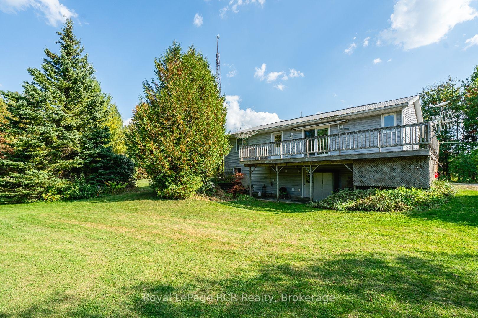 Just north of Hanover, this beautiful 2+ acre property offers privacy, space, and natural beauty. It features a raised bungalow, detached shop/garage, gazebo, pond, garden shed, gardens, all surrounded by a beautiful variety of trees. The 1993 raised bungalow features 2+2 bedrooms and 2 bathrooms. The main floor includes an open kitchen/dining area with patio doors to the deck, a living room with a large picture window overlooking the south covered porch, laundry room with outside access, 2 bedrooms, full guest bathroom and primary bedroom with 3-piece ensuite and walk-in closet. The lower level offers a spacious family room with bar and sink, cozy propane fireplace, 2 additional bedrooms, and a utility room with walkout. Enjoy the outdoors from the large north-side deck with manual awning and propane BBQ hookup, or from the stunning post & beam gazebo (12' x 16') with 10' x 10' extension overlooking the pond and tree-lined yard. The detached steel clad heated/insulated garage (24' x 40') with propane heat and radiant heater provides an excellent workspace, complete with two 9'6 x 8' doors and a 12' x 40' lean-to (with access doors on each end). A garden shed (10 'x 16')with verandah (6' x 16'), extensive gardens, decorative brick fire pit area and greenhouse (negotiable) add to the property's appeal. With its mix of open space, trails through mature trees, and peaceful views, this property offers the perfect balance of country living just minutes from Hanover's amenities.