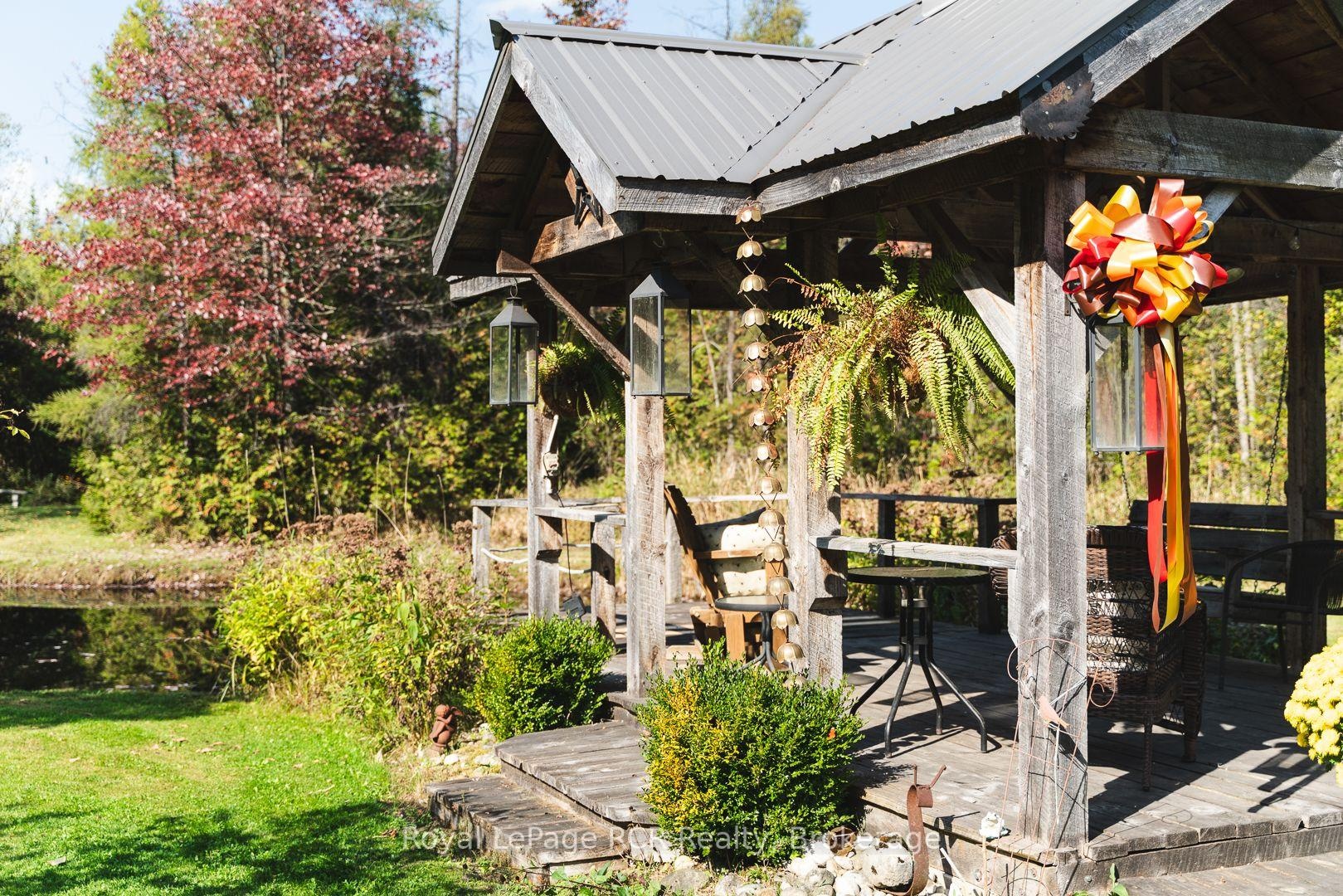 DescriptionJust north of Hanover, this beautiful 2+ acre property offers privacy, space, and natural beauty. It features a raised bungalow, detached shop/garage, gazebo, pond, garden shed, gardens, all surrounded by a beautiful variety of trees. The 1993 raised bungalow features 2+2 bedrooms and 2 bathrooms. The main floor includes an open kitchen/dining area with patio doors to the deck, a living room with a large picture window overlooking the south covered porch, laundry room with outside access, 2 bedrooms, full guest bathroom and primary bedroom with 3-piece ensuite and walk-in closet. The lower level offers a spacious family room with bar and sink, cozy propane fireplace, 2 additional bedrooms, and a utility room with walkout. Enjoy the outdoors from the large north-side deck with manual awning and propane BBQ hookup, or from the stunning post & beam gazebo (12' x 16') with 10' x 10' extension overlooking the pond and tree-lined yard. The detached steel clad heated/insulated garage (24' x 40') with propane heat and radiant heater provides an excellent workspace, complete with two 9'6 x 8' doors and a 12' x 40' lean-to (with access doors on each end). A garden shed (10 'x 16')with verandah (6' x 16'), extensive gardens, decorative brick fire pit area and greenhouse (negotiable) add to the property's appeal. With its mix of open space, trails through mature trees, and peaceful views, this property offers the perfect balance of country living just minutes from Hanover's amenities.Amenities- Air Exchanger