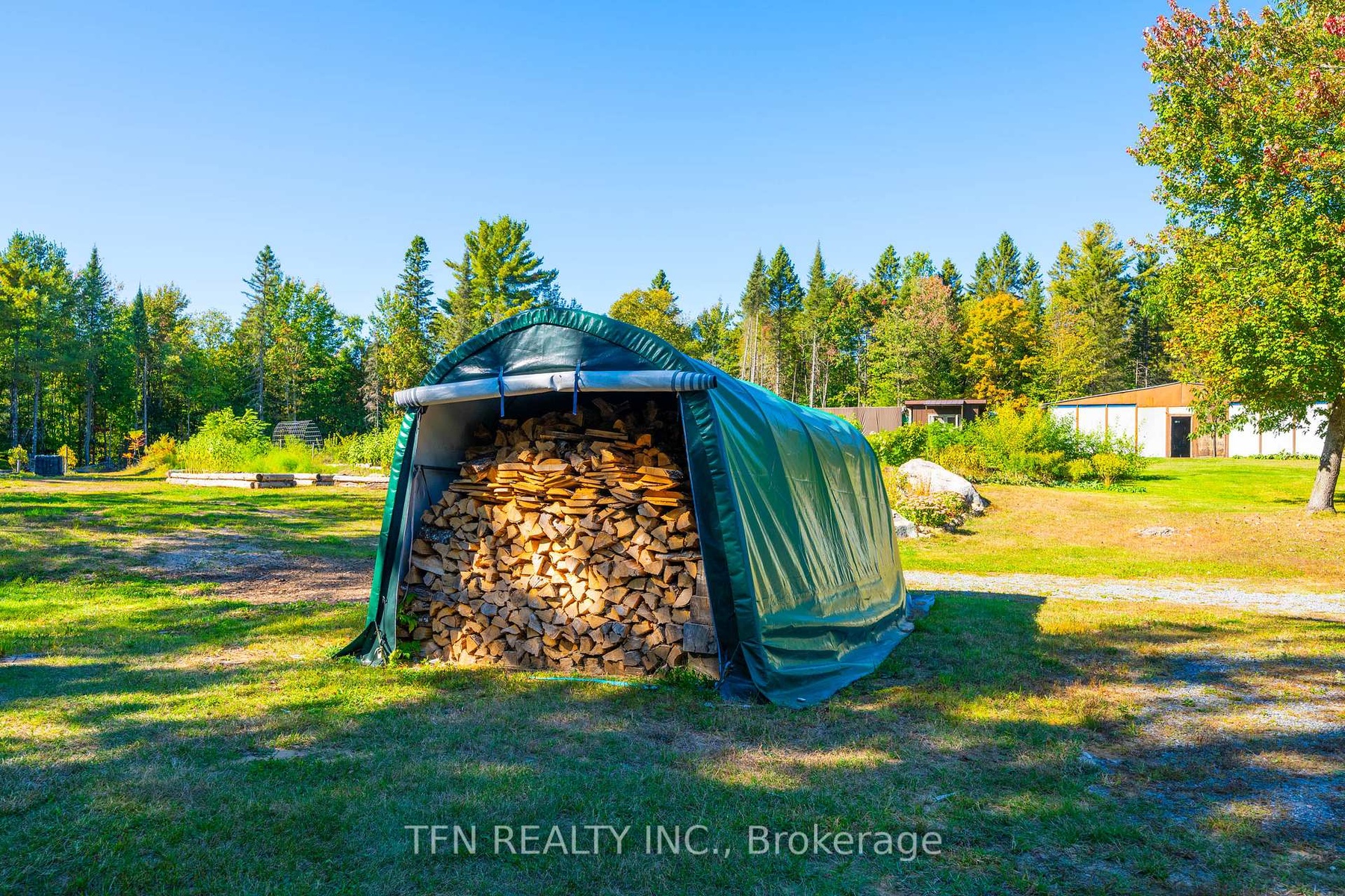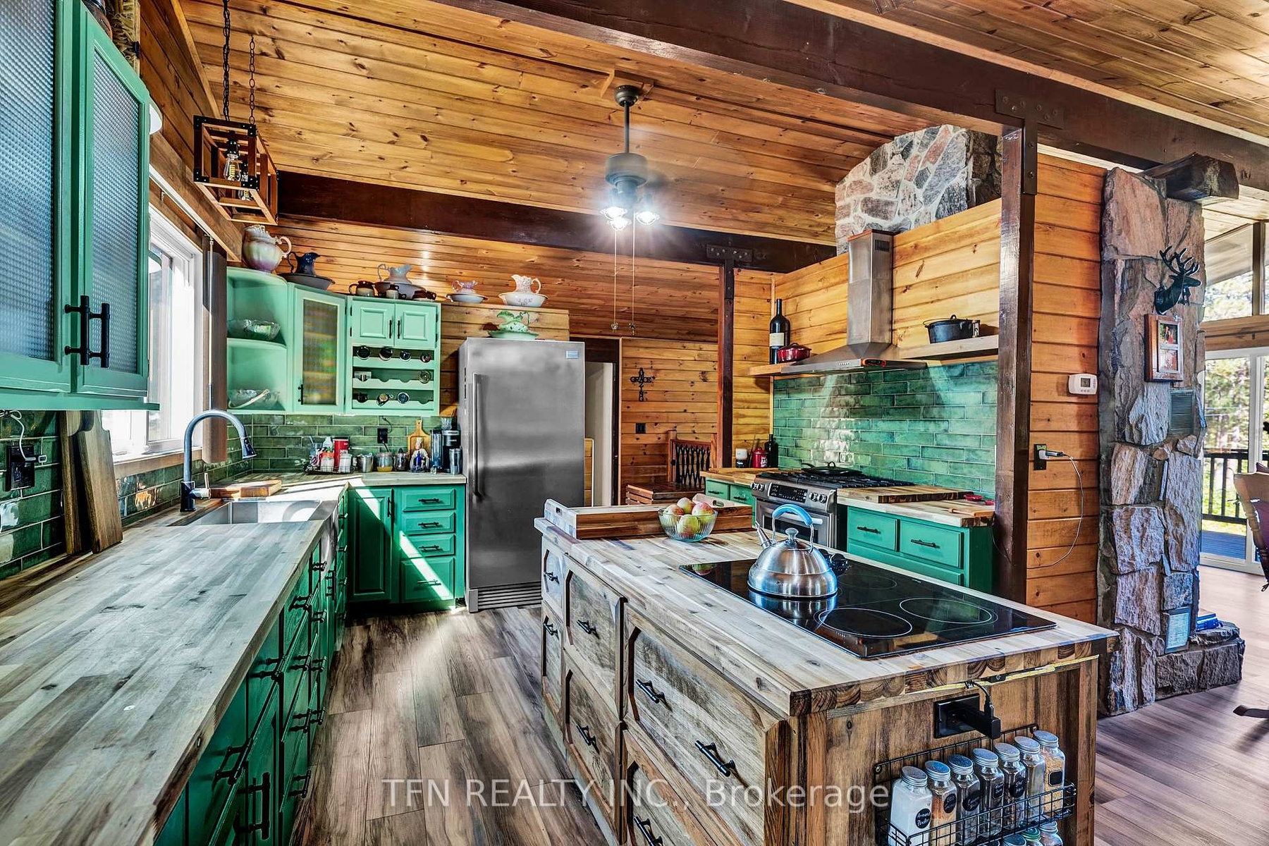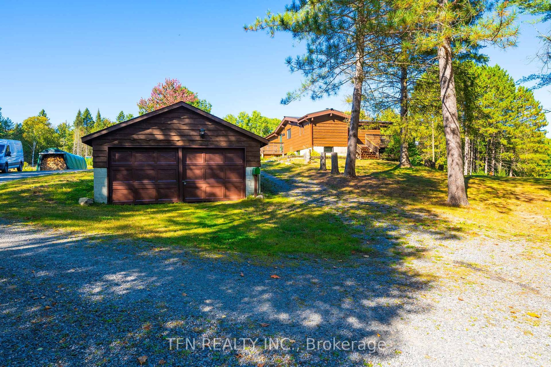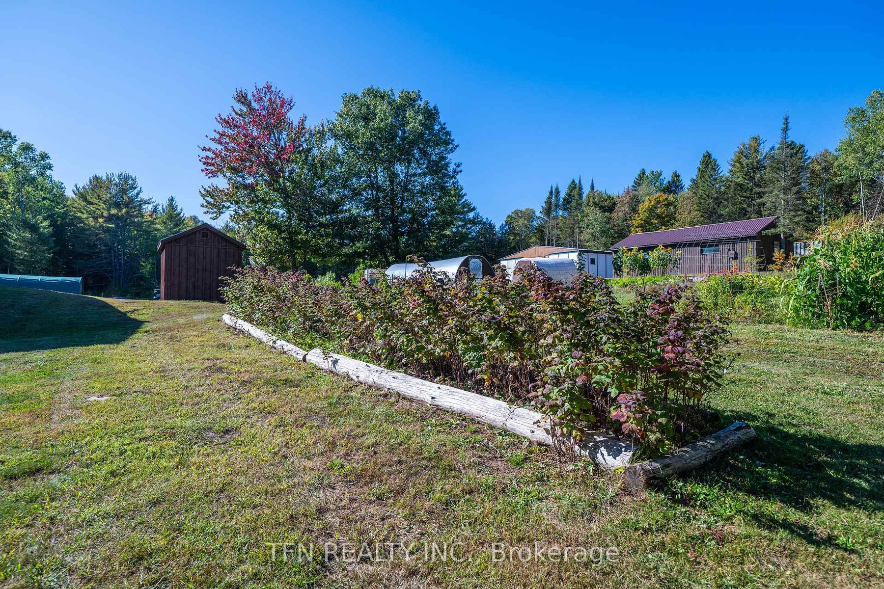 Discover a tranquil retreat on 25 acres of picturesque woodlands, complete with a serene stream, nestled in a private setting. This modern rural residence is conveniently located just 20 minutes from Burk's Falls or Sprucedale, with public boat launches only a 10-minute drive away.This incredible property boasts two detached car garages and a spacious 36x50 barn featuring eight stalls, a 20x30 shop, a chicken house, and a new 8x8 greenhouse. Enjoy the fruits of your labor with thriving apple, pear, raspberry, blueberry, and cherry trees, along with a flourishing asparagus patch.The home offers a perfect blend of modern and rustic design, featuring an open-concept living area that seamlessly integrates the kitchen, dining, and great room. A cozy gas fireplace adds warmth and ambiance, making it an inviting space for gatherings. The kitchen is equipped with ample cabinetry and counter space, along with a stove and cooktops for all your culinary needs. The walkout basement includes large patio doors, providing easy access to the outdoors. This level also features a separate laundry room, storage area, guest room, and an additional bedroom, complemented by a second wood stove. Two rooms in the basement have been converted into a dry room and an extra insulated cold room, adding functionality and convenience. Wildlife abounds on this stunning property, making it an ideal sanctuary for nature lovers. Don't miss the chance to create your own rural paradise perfect for individuals and families alike!