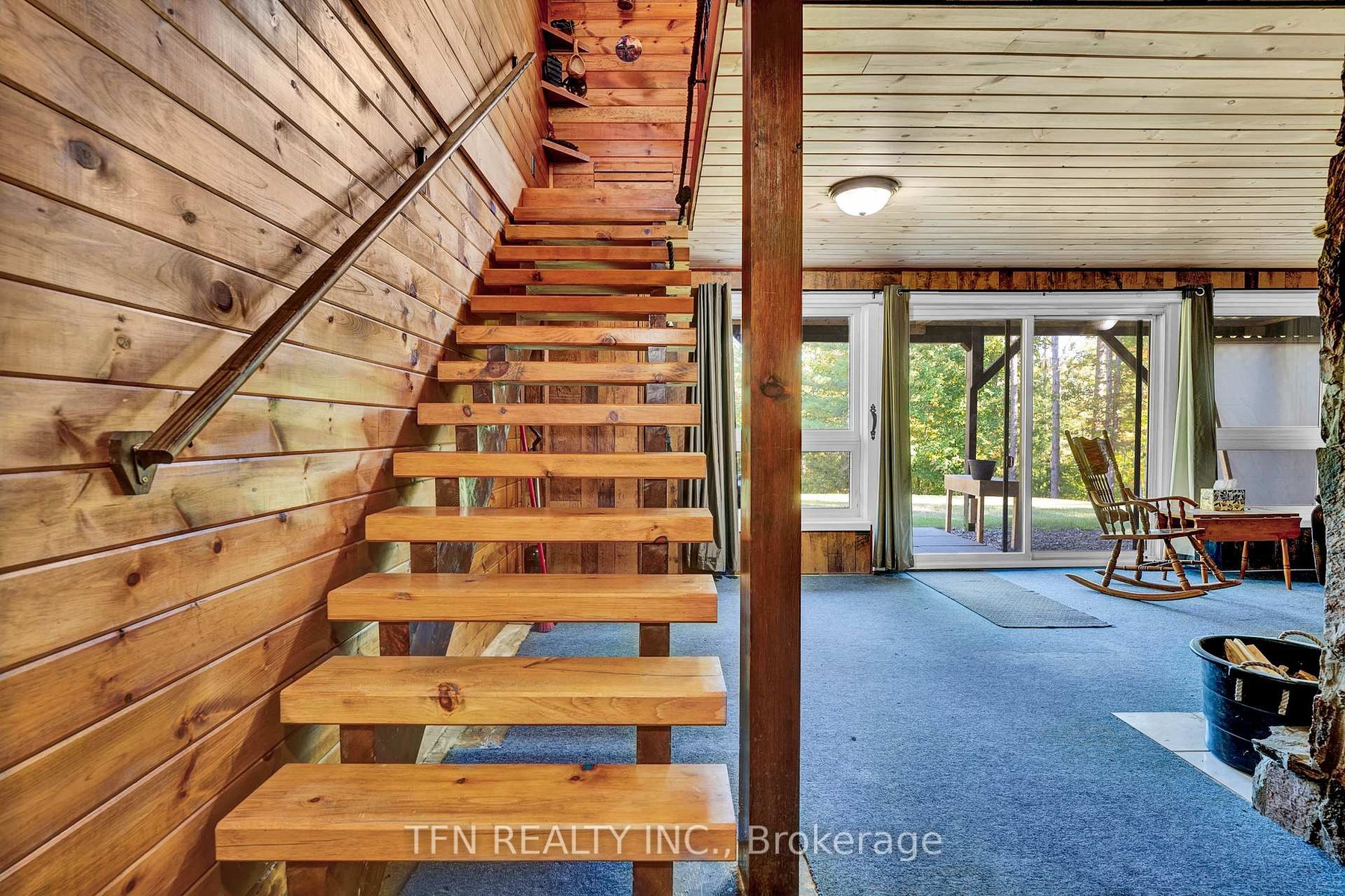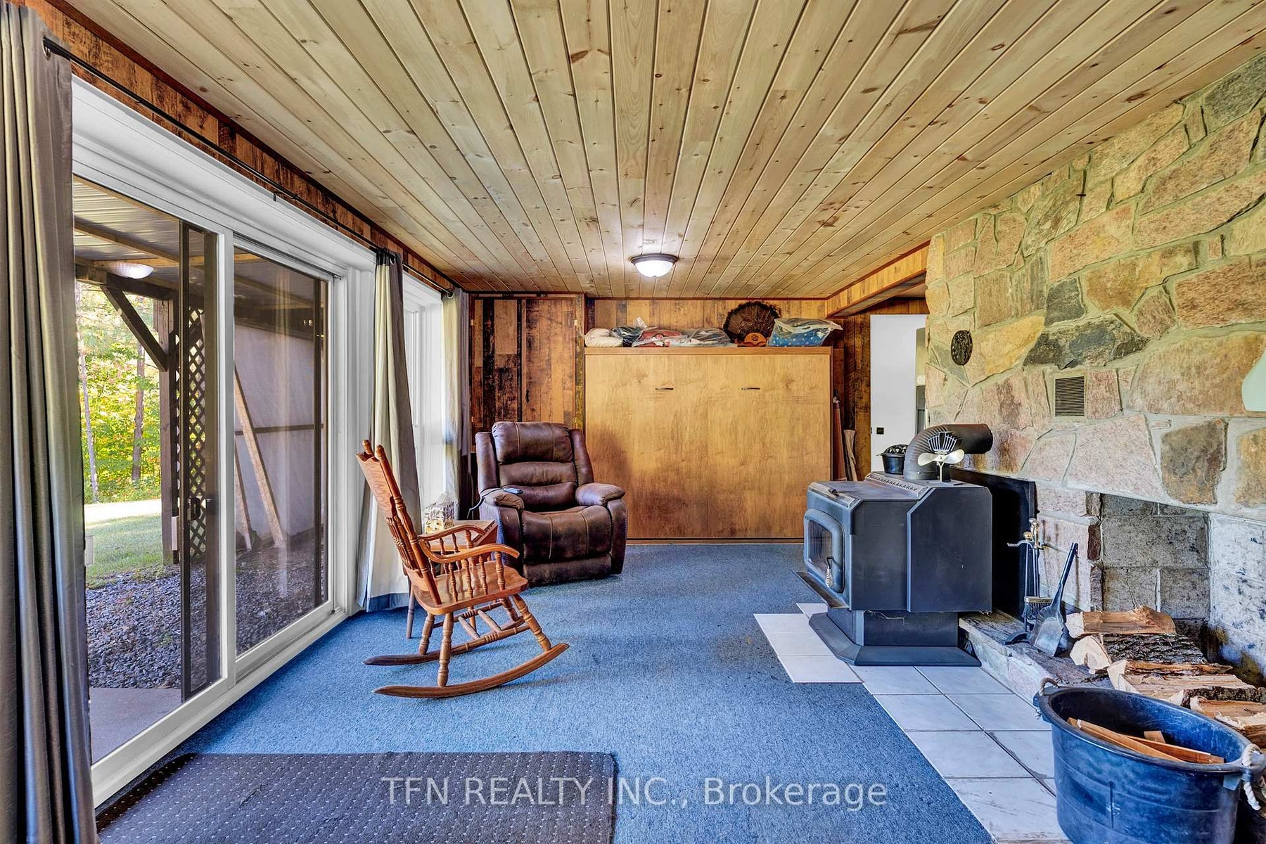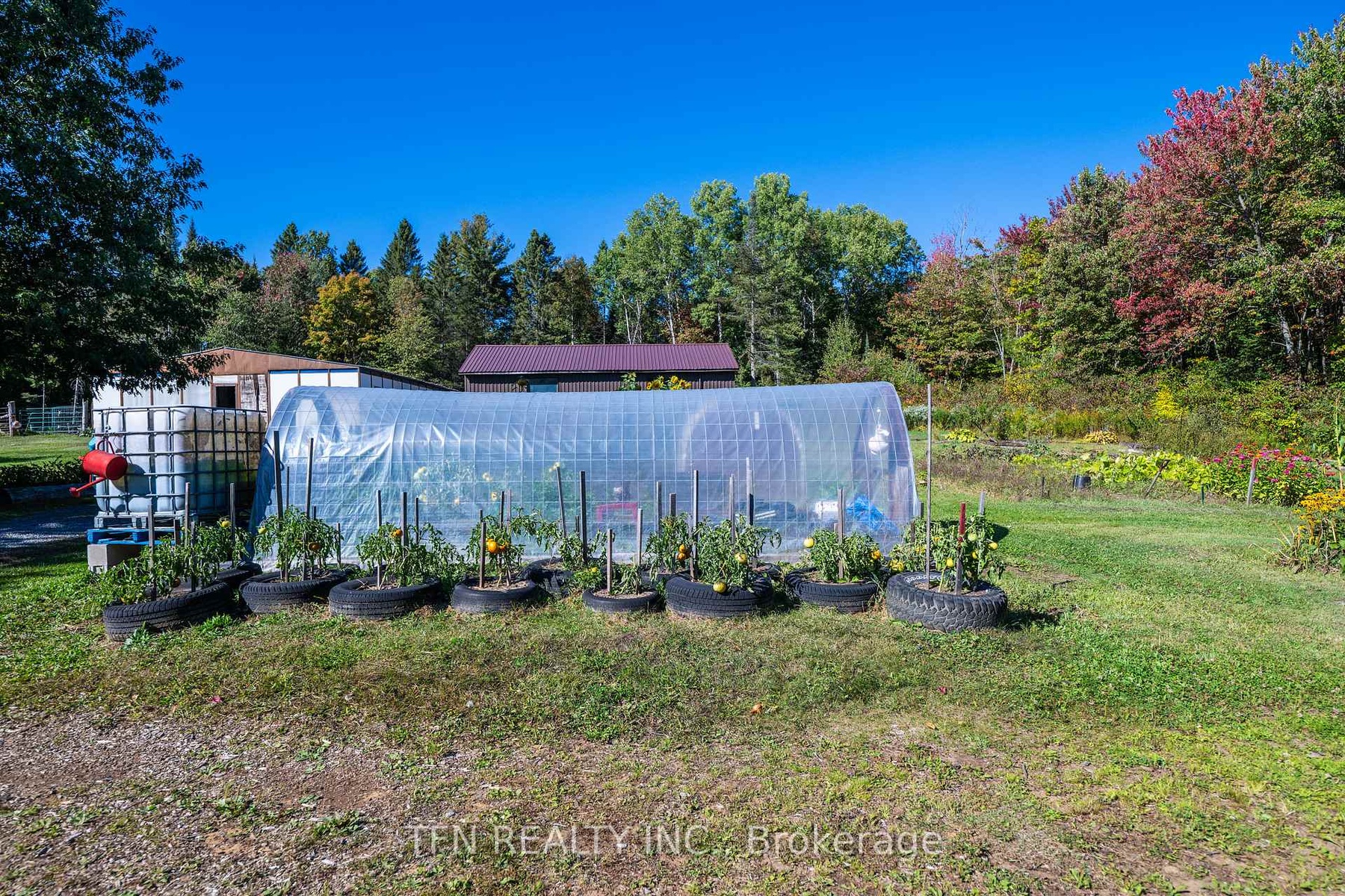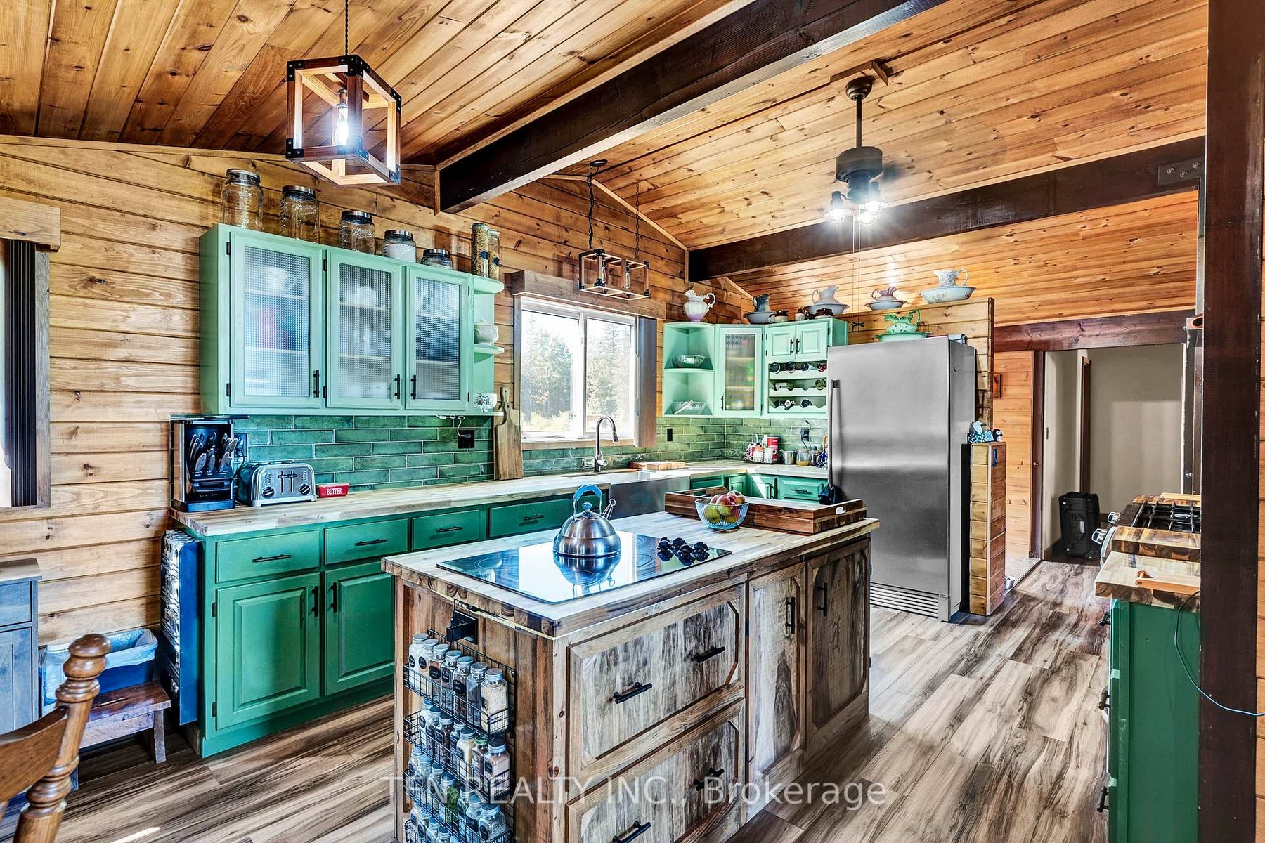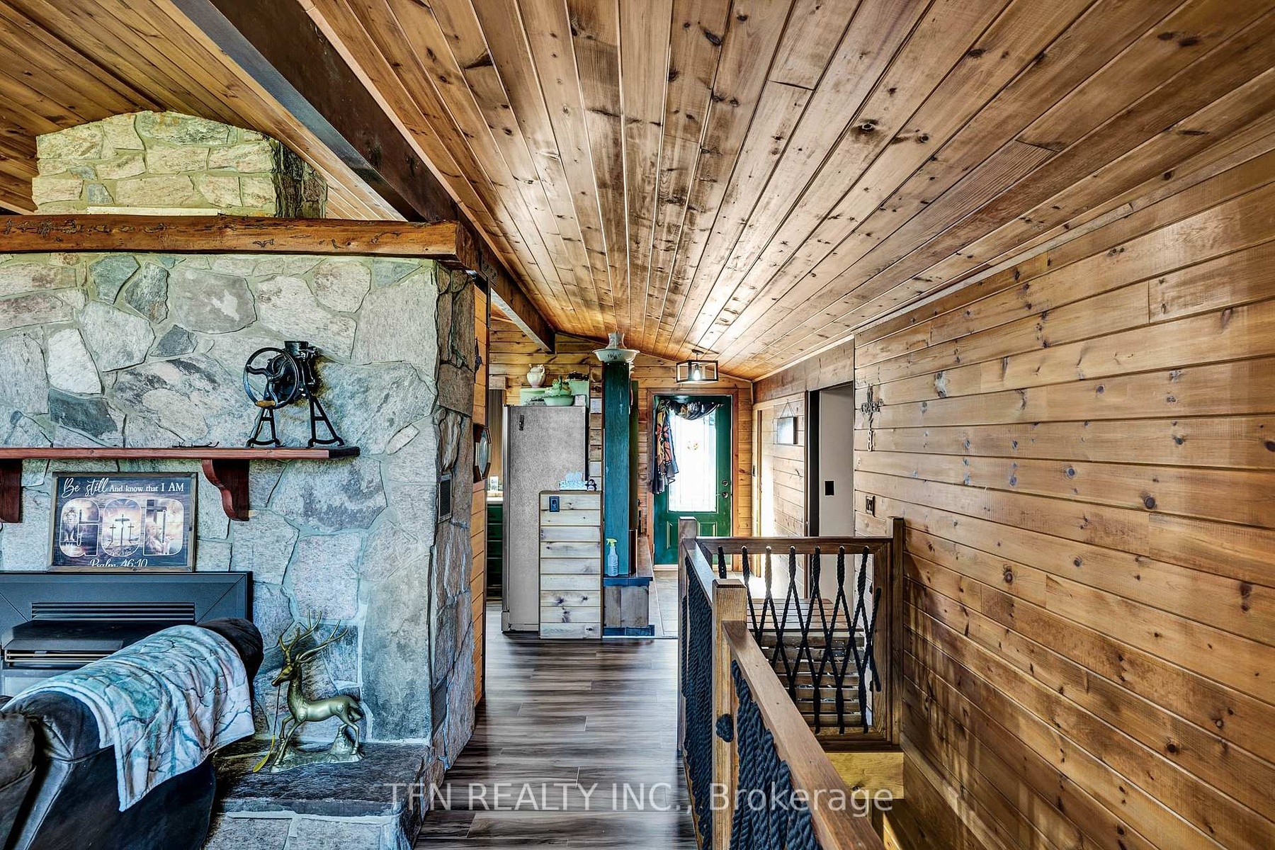 Discover a tranquil retreat on 25 acres of picturesque woodlands, complete with a serene stream, nestled in a private setting. This modern rural residence is conveniently located just 20 minutes from Burk's Falls or Sprucedale, with public boat launches only a 10-minute drive away.This incredible property boasts two detached car garages and a spacious 36x50 barn featuring eight stalls, a 20x30 shop, a chicken house, and a new 8x8 greenhouse. Enjoy the fruits of your labor with thriving apple, pear, raspberry, blueberry, and cherry trees, along with a flourishing asparagus patch.The home offers a perfect blend of modern and rustic design, featuring an open-concept living area that seamlessly integrates the kitchen, dining, and great room. A cozy gas fireplace adds warmth and ambiance, making it an inviting space for gatherings. The kitchen is equipped with ample cabinetry and counter space, along with a stove and cooktops for all your culinary needs. The walkout basement includes large patio doors, providing easy access to the outdoors. This level also features a separate laundry room, storage area, guest room, and an additional bedroom, complemented by a second wood stove. Two rooms in the basement have been converted into a dry room and an extra insulated cold room, adding functionality and convenience. Wildlife abounds on this stunning property, making it an ideal sanctuary for nature lovers. Don't miss the chance to create your own rural paradise perfect for individuals and families alike!