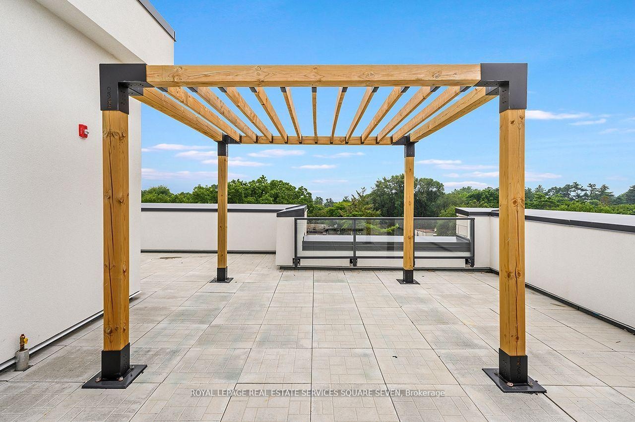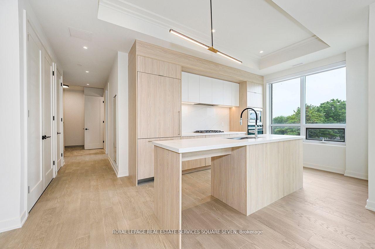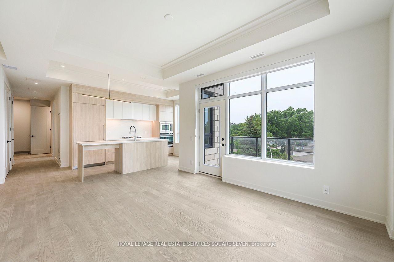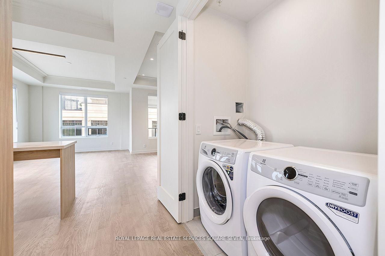 LIVE IN SOUTH OAKVILLE'S NEWEST LUXURY BUILDING, THE BERKSHIRE. First class amenities including Concierge, Roof Top Oasis, Party Room, Gym with state of the art equipment, Visitor Parking. Stunning 2-bedroom and 1 story's suite at The Berkshire Residences Offering roof top with private hot tub beautifully designed space, this suite features soaring 10-foot ceilings, a spacious laundry room, and premium brushed oak hardwood flooring throughout. The modern kitchen is a chefs dream, complete with soft-close cabinetry, a large island with a waterfall edge, quartz countertops and matching backsplash, and a full 6-piece stainless steel appliance package. Additional upgrades include extended-height kitchen cabinets, upgraded vanities and tiles in all bathrooms, and a sleek Napoleon Entice Series electric fireplace with a contemporary stone surround. Enjoy the comfort of heated flooring in the bathrooms and the sophisticated, townhouse-style feel of the layout. Two parking handicap and EV spaces and a storage locker are also included, offering added convenience in this upscale residence. The Berkshire Residences combines striking architecture with modern elegance, making this suite a perfect place to call home. Steps to Lake Ontario, waterfront promenades and downtown Oakville's finest shops and restaurants.