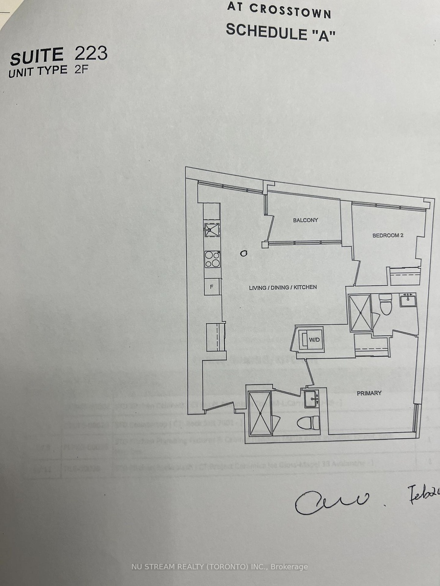 Welcome to Crest at Crosstown at 1 Kyle Lowry Rd a brand-new, never-lived-in residence inspired by the elegance of European Chateaux. This thoughtfully designed open-concept suite offers 750 sq. ft. of total living space (702sq. ft. interior + 48 sq. ft. balcony) with 2 bedrooms, 2 bathrooms, 9 ft ceilings, and expansive windows showcasing unobstructed northeast-facing corner views from the balcony. Enjoy modern conveniences including an parking space, a locker, and Rogers high-speed internet included. Residents will have access to premium amenities including gym, party/meeting room, pet wash station, co-working space, and 24-hour concierge. The upcoming Eglinton Crosstown LRT is just steps away with underground access via Crosstown Place, making commuting seamless. For outdoor lovers, the community features a 4,400 sq. ft. public park with bike paths and trails right outside your door, while being surrounded by multiple parks, shopping, dining, and top-rated schools. Be among the first to experience life in this master-planned community with striking architecture and unparalleled lifestyle offerings.EV charge available on request