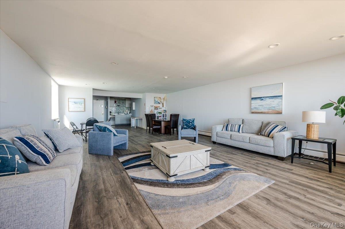 This elegant alcove studio is perfect as a weekend get away or for living on the beach full time. Enjoy this beautiful spacious, light and bright unit with sleeping alcove with sliding glass doors that open to an oversized terrace with a panoramic view above the roof tops for an unobstructed view of Long Beach, sunsets and city lights! Direct access to the beach from the pool, community/card room with oceanfront balcony, two saunas, bike storage and wait list for parking. Close to LIRR – under 50 minutes to NYC, all parkways, Golf course, restaurants, shops, Long Beach Rec Center and so much more! Enjoy your first summer in Long Beach!