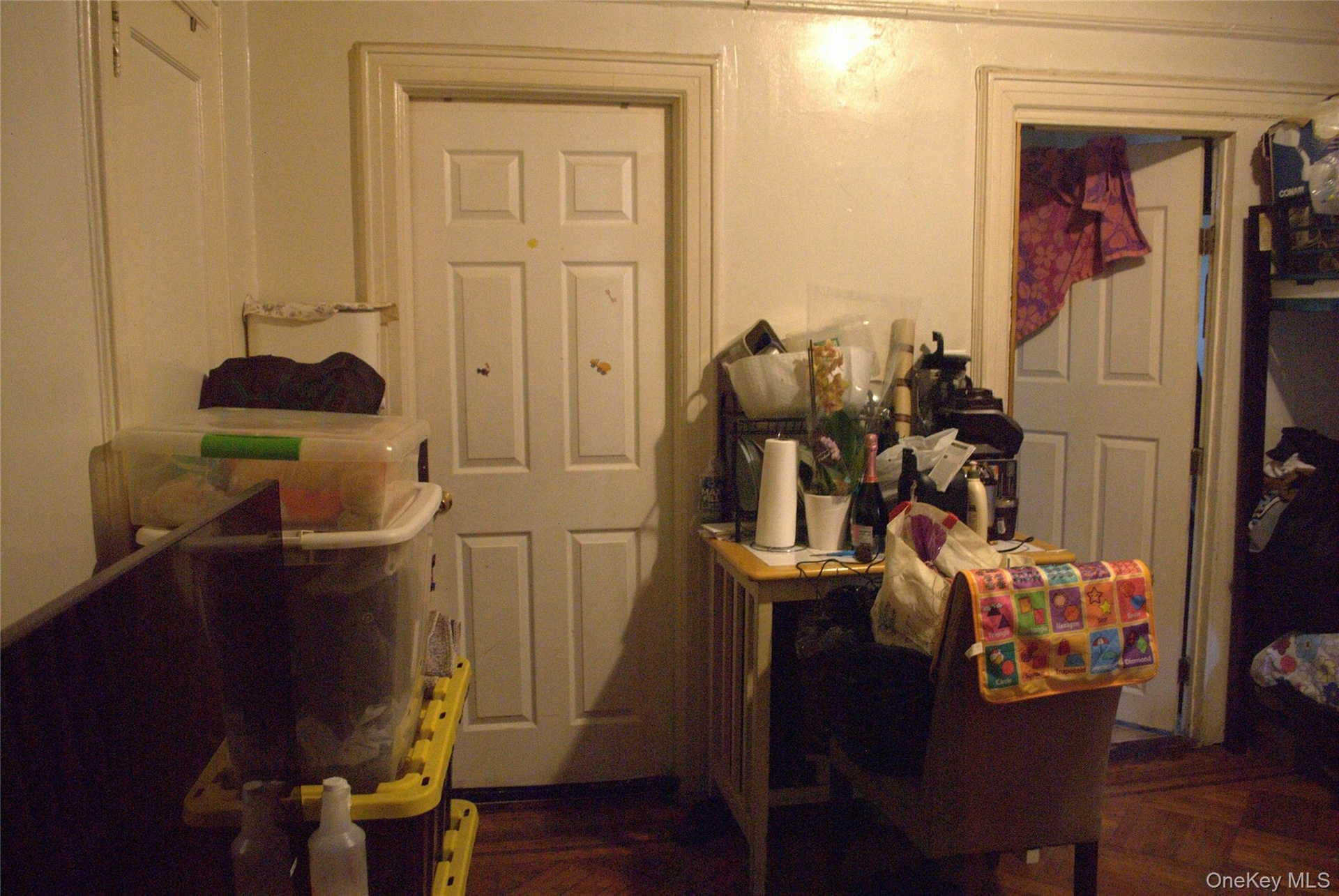 - Bedroom featuring dark wood-style flooring and an office area