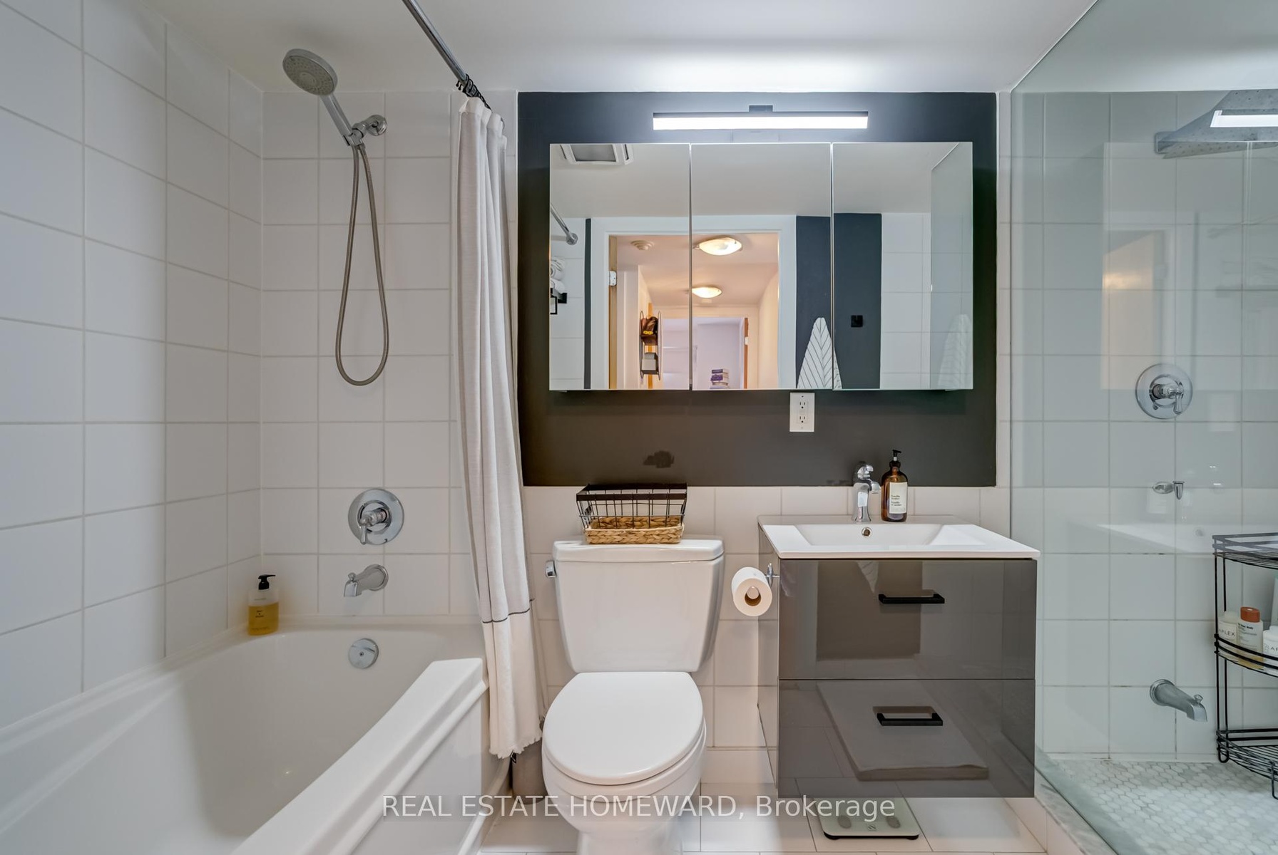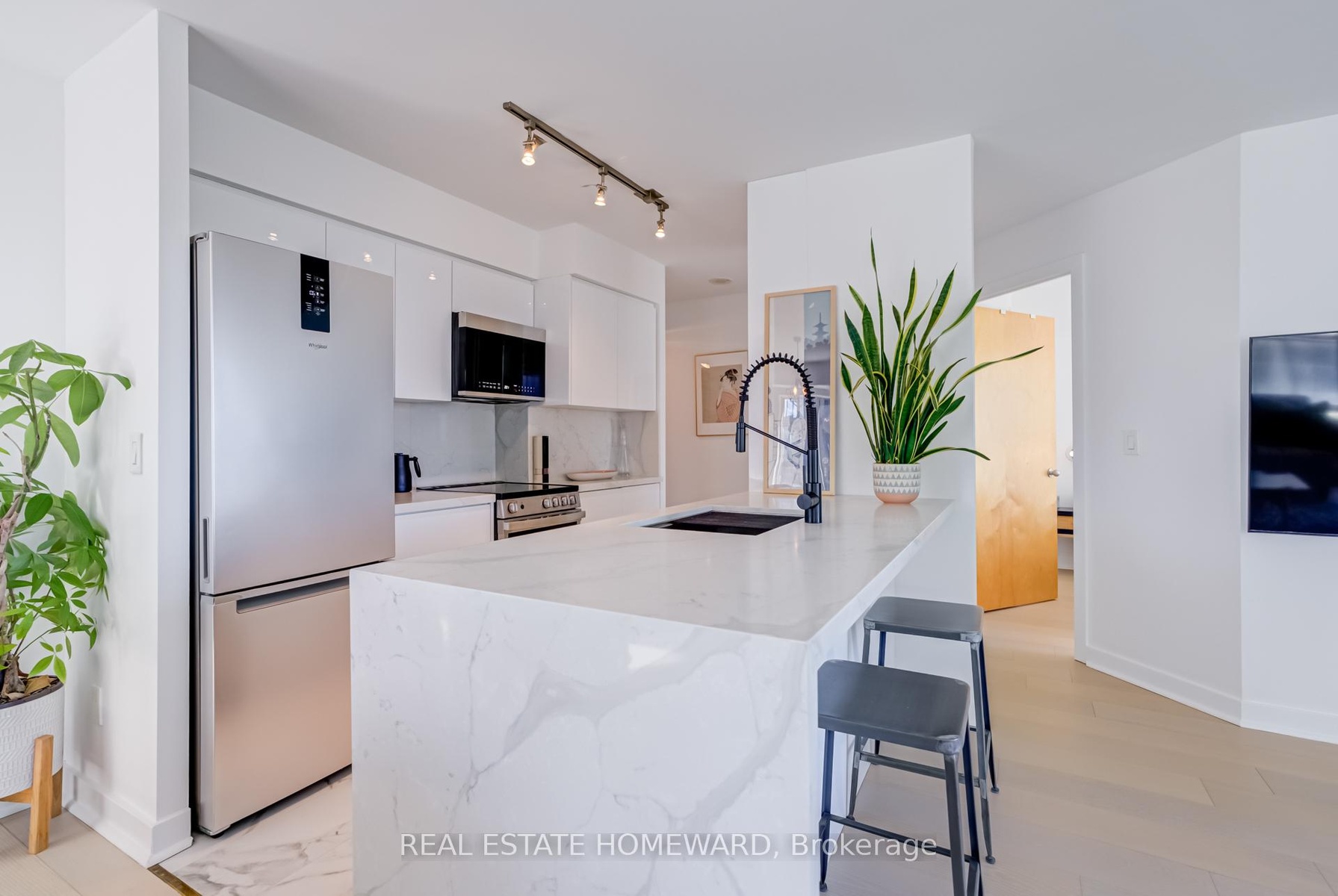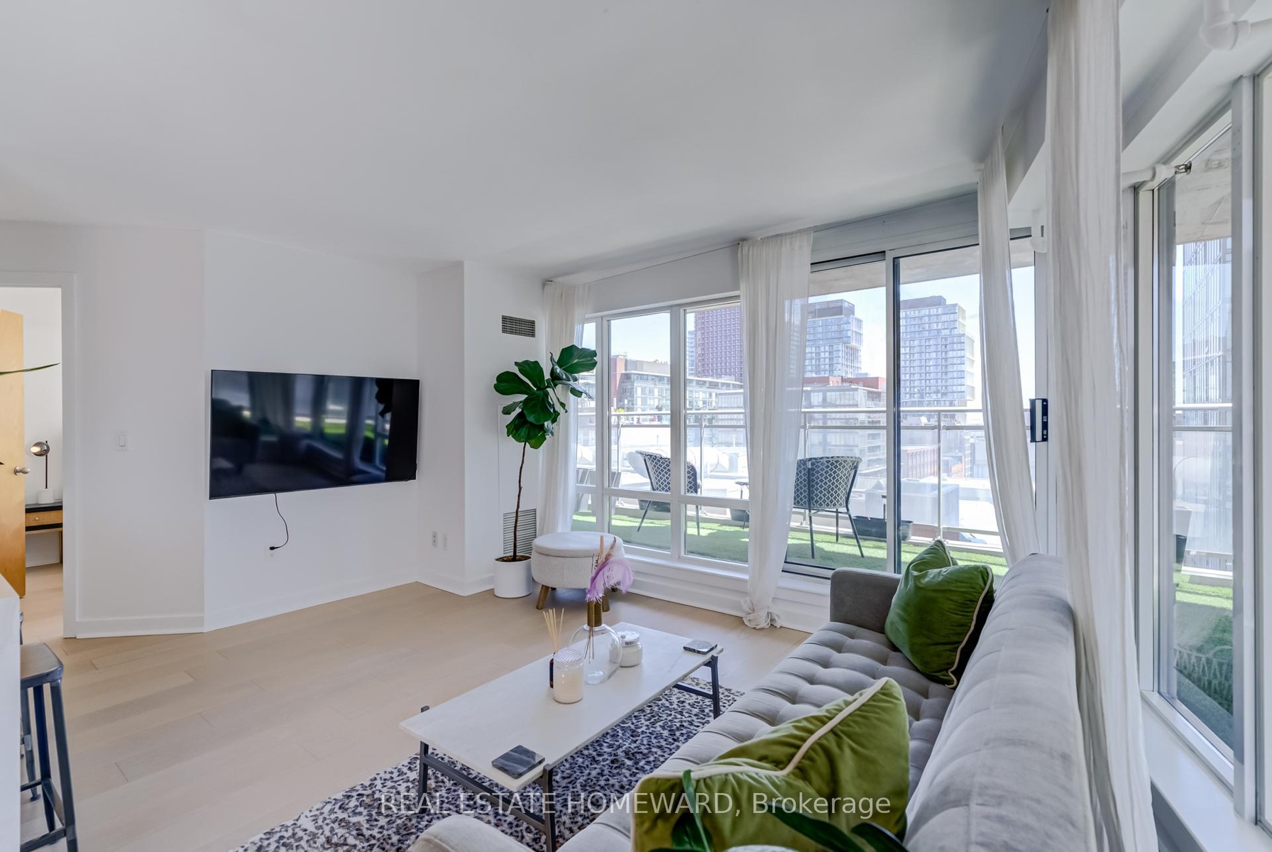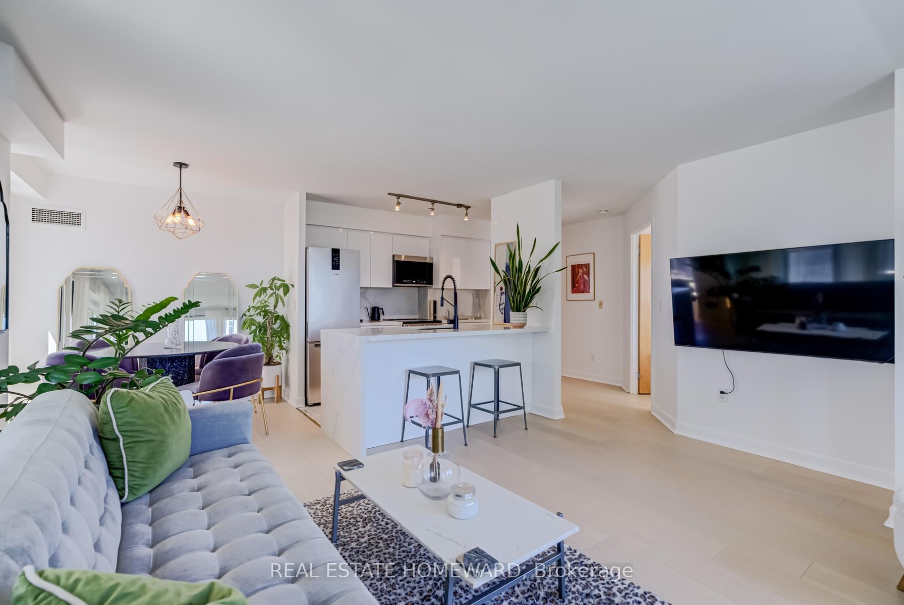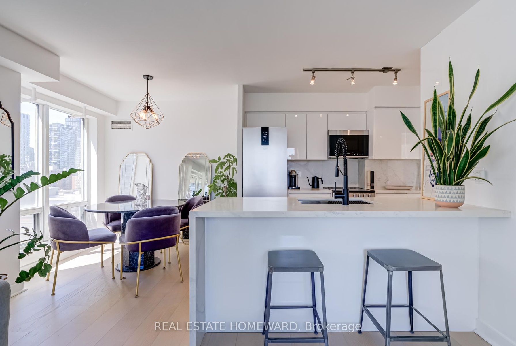 Stunning Sun-filled & Renovated 2-Bedroom Corner Unit with Wrap Around Terrace in the Heart of Downtown. Welcome to Suite 1004 at 255 Richmond Street East, upgraded with $50,000 in high-end renovations, this unit is the perfect blend of style and functionality. Enjoy brand-new wide-plank engineered hardwood floors throughout and a fully renovated designer kitchen featuring a beautiful quartz waterfall island countertop, custom cabinetry, and stainless steel appliances. The open-concept living and dining space is ideal for entertaining, while both bedrooms offer excellent storage and natural light, with a good sized walk-in closet in the primary bedroom. The bathroom has a separate shower and soaker tub option for you to choose from! Step out onto your large wrap-around terrace and take in the city views, or enjoy the buildings fantastic amenities, including 24-hour concierge, gym and party/meeting room, and BBQ area. Parking and locker included. Unbeatable location steps to King Street, St. Lawrence Market, Financial District, TTC, and more. Low maintenance fees that includes heat, hydro, and water! This unit represents excellent value! Just move in and enjoy downtown living at its best! Check out the virtual tour and book a viewing today!