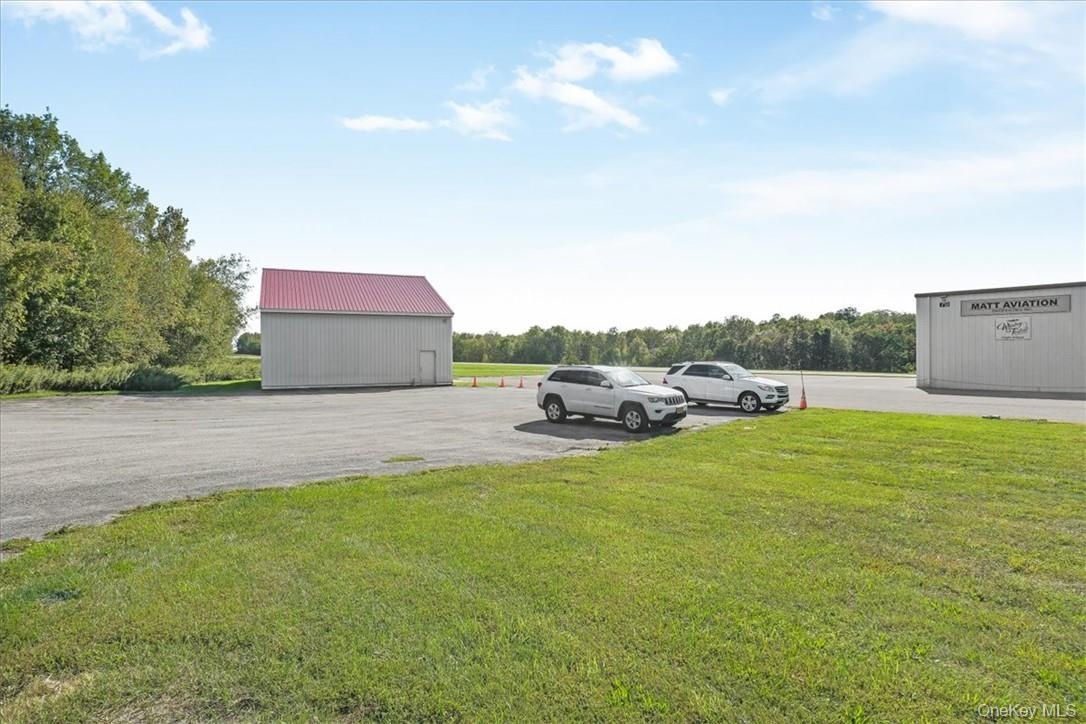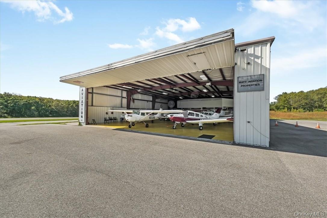 In the booming Hudson Valley at Sky Acres Airport (44N) is this rare aviation related opportunity in a fantastic setting. 14,046 SF commercial space with two clear span hangars with space for 8 airplanes and other equipment. The second building, built in 2014, is a steel skinned advanced framing technique hangar with 1,632 SF on one level. The paved parking lot has 25 spots. This all sits on 24+ acres of level and partially cleared land abutting the north end of the runway, with direct access to the taxiway from the hangars. Plenty of room to grow, with most of the land yet to be developed. Development potential of office, trade shop, light manufacturing, aviation schools and flight instruction, warehouse and a host of additional airport related uses. Access from a gated private road on the property, adjacent to Sky Acres airport, a full service airport with fueling station, terminal and restaurant, and approximately 40 miles to Stewart International Airport.