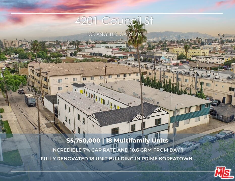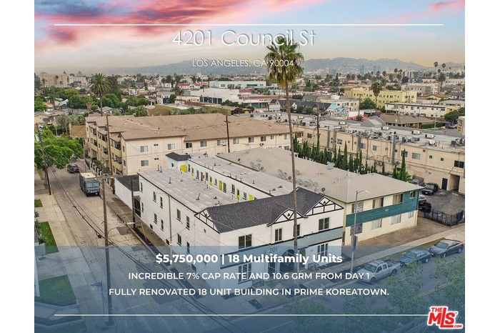 Huge 650k Price Reduction! 100% Fully Renovated 18-unit apartment building with permits cash flowing at an amazing 7% Cap Rate and 10.6 GRM from day 1! All units have already been leased at full market rents of over $2,500 per month on average providing an incredible cash flow. The offering provides investors with a unique opportunity to purchase a premium asset that was completely vacated and renovated. 201 N Normandie Avenue was built in 1923 and boasts 16 stylish apartment homes renovated in 2023 as well as 2 brand-new detached ADUs built in 2024. Ownership has conducted a complete property restoration with permits. It features an attractive unit composition of eighteen (18) spacious and well-designed One-Bedroom | One-Bathroom units. In all, 201 North Normandie Avenue features ~8,677 square feet of improvements on a collective ~7,700 square feet of land, zoned LAR3. The property is separately metered for gas and electrical utilities to further reduce operating costs. The property has seen a complete restoration, down to every inch. Overall systems were overhauled with a new roof, plumbing, and electrical systems were updated within the last couple of years with a new panel and wiring. Also, there are updated HVAC systems and new windows in each unit. When approaching the property, tenants are invited with a unique and inviting color scheme featuring a fresh paint job and stylish landscaping. The units have undergone gut-level updating with new wood flooring, updated lighting fixtures, and brand-new kitchen and bathrooms. In the kitchen, there are new cabinets, modern countertops, and new water heaters. The bathrooms boast new vanities and modern fixtures along with sleek shower stalls. The location is in the heavily sought-after Koreatown and Wilshire Center sub-markets. 201 N Normandie Avenue is poised to capitalize on the tremendous momentum in the immediate area and neighboring Hollywood and Downtown. The subject property's transit-oriented and highly walkable location offers residents access to a myriad of entertainment venues, cultural destinations, and dining options nearby. Given the property's location and strong income metrics, 201 N Normandie Avenue is an ideal investment for investors seeking immediate returns along with long-term wealth preservation and appreciation.