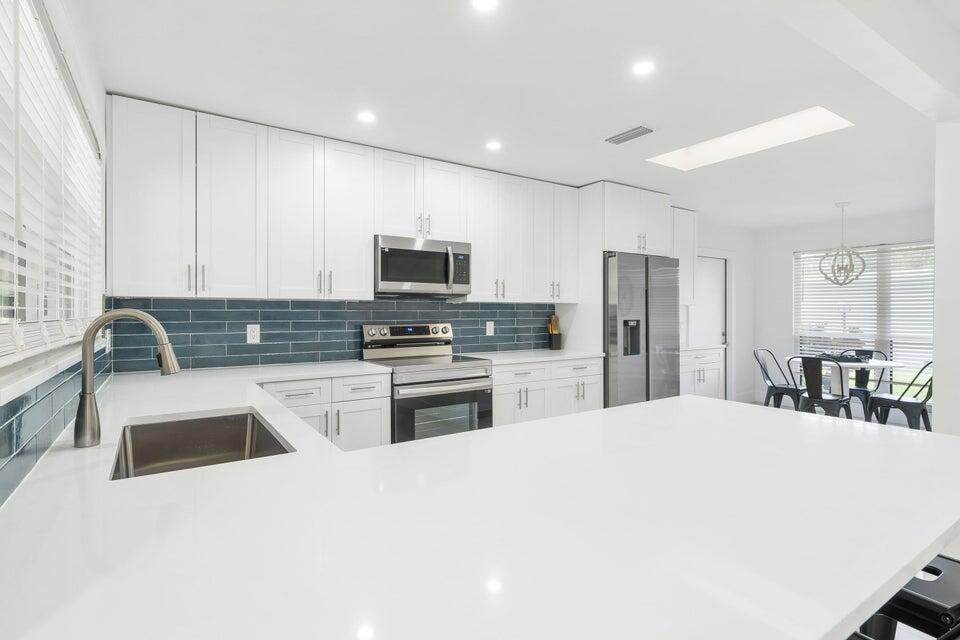 Priced to sell fast! Country Club living at its finest! Discover your dream home in the exclusive Eastpoint Country Club! This stunning 3-bedroom home has been fully renovated from top to bottom. Step into a designer kitchen featuring quartz countertops and brand-new appliances, perfect for your culinary adventures. You'll love the gorgeous new flooring and stylish lighting throughout, along with beautifully redone bathrooms. The home boasts abundant natural light, adding warmth and vibrancy to each room. An extra-large garage provides plenty of storage, and accordion shutters offer peace of mind. Roof has 14+ years of life left per 4 pt inspection, replaced in 2008. 2023 HVAC. Don't miss out on this gem!