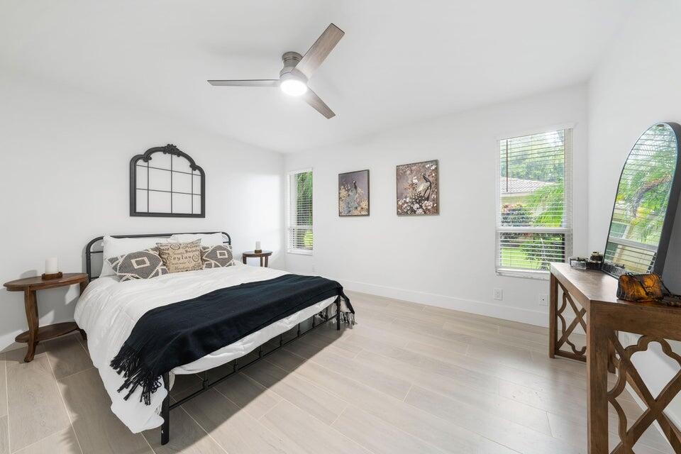 DescriptionPriced to sell fast! Country Club living at its finest! Discover your dream home in the exclusive Eastpoint Country Club! This stunning 3-bedroom home has been fully renovated from top to bottom. Step into a designer kitchen featuring quartz countertops and brand-new appliances, perfect for your culinary adventures. You'll love the gorgeous new flooring and stylish lighting throughout, along with beautifully redone bathrooms. The home boasts abundant natural light, adding warmth and vibrancy to each room. An extra-large garage provides plenty of storage, and accordion shutters offer peace of mind. Roof has 14+ years of life left per 4 pt inspection, replaced in 2008. 2023 HVAC. Don't miss out on this gem!