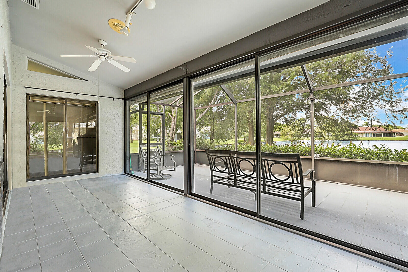 Fantastic 2-bedroom, 2-bathroom home with 2 car garage and a double lanai one with a glass enclosure for an oversized Florida room and the other is a screened enclosure for indoor outdoor living. Both show the expansive lake views. This home offers a newer A/C 2022, GE Electrical Panel, newer laminate flooring and an updated kitchen and more. Boca Delray & CC is a NON-MEMBERSHIP country club that allows ''Pay As You Play'' or Purchase Golf Membership if you desire. 24/7 manned gate, 18-hole, Par-60 Executive Golf course, pro-shop, 4 tennis courts, pickle ball, fitness center, restaurant, 2 pools and 2 entertainment clubs.