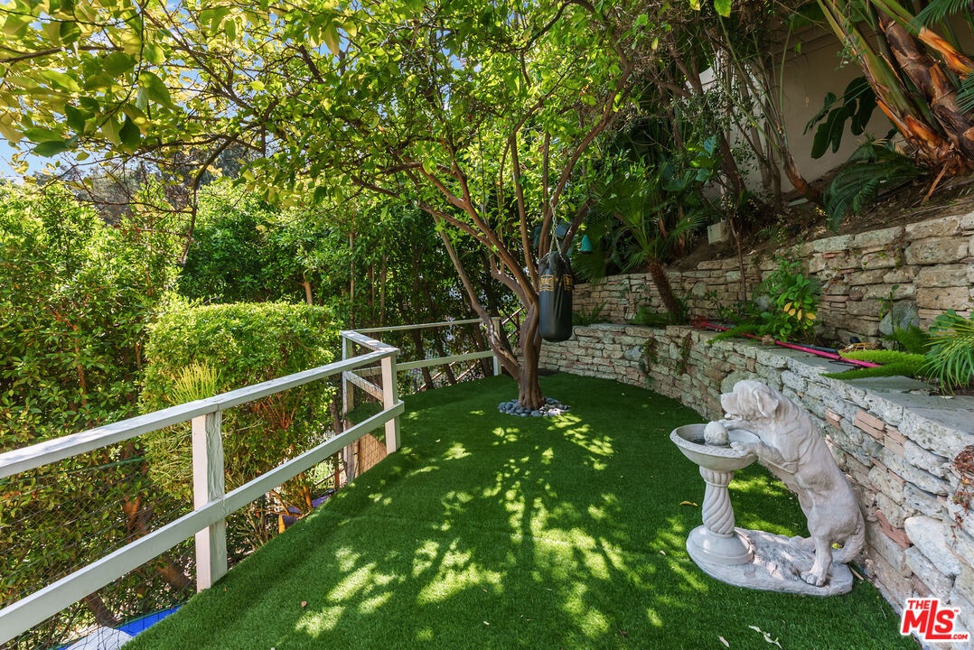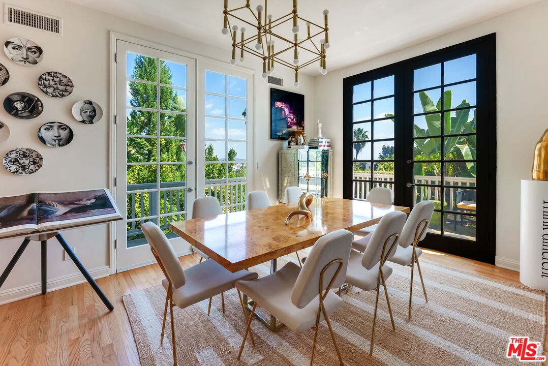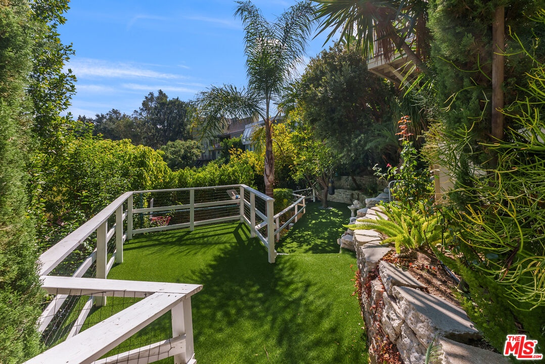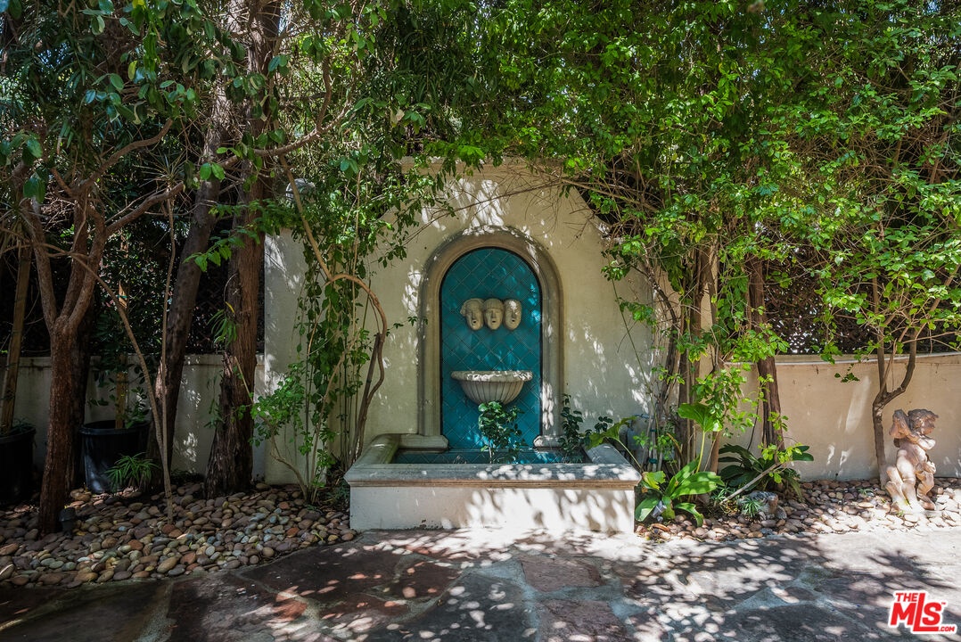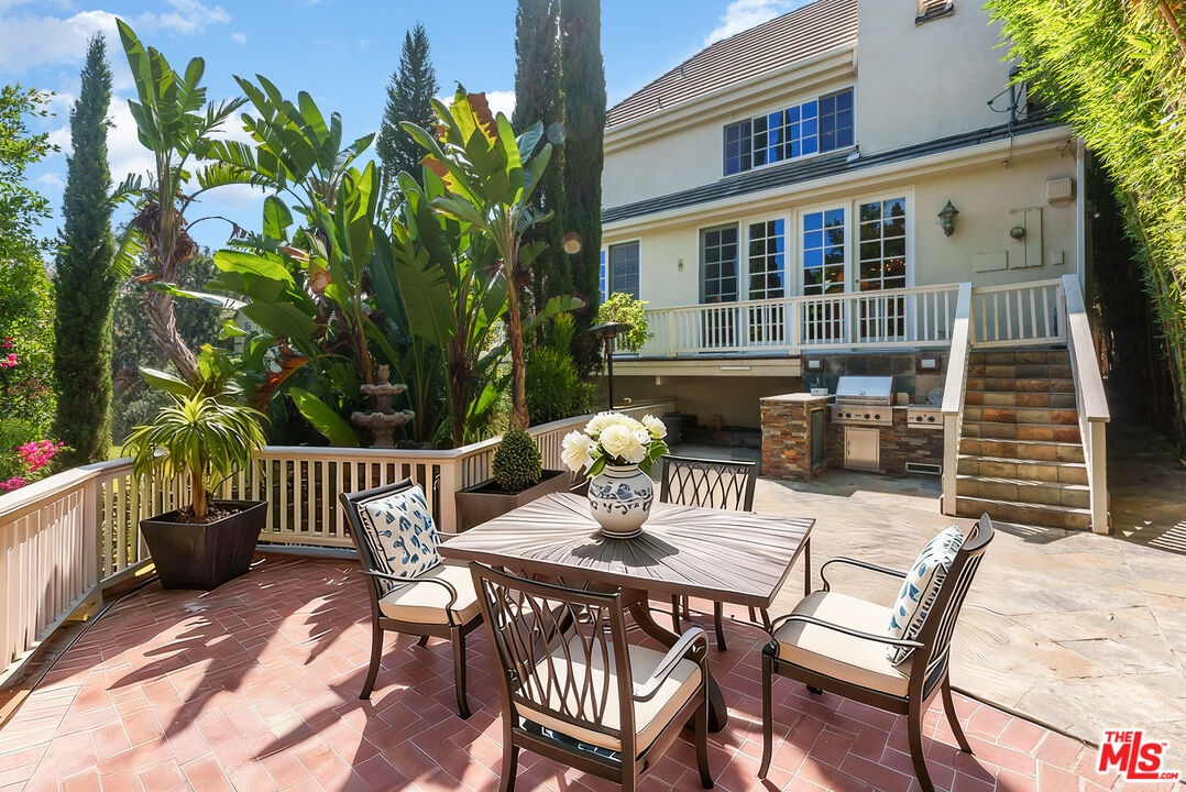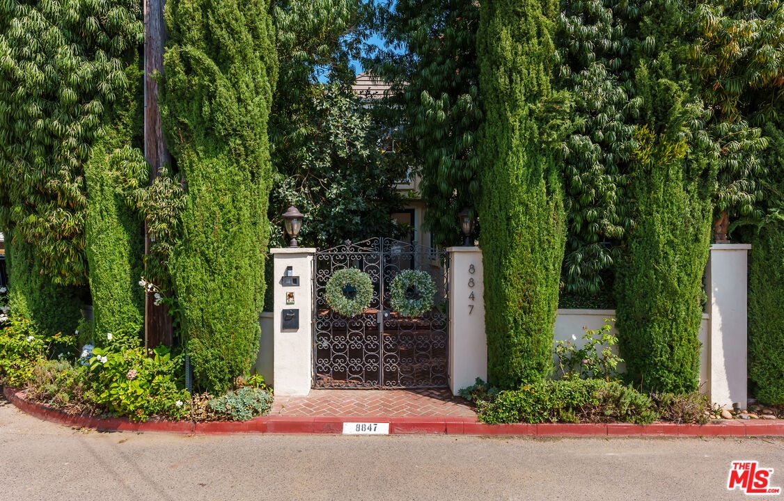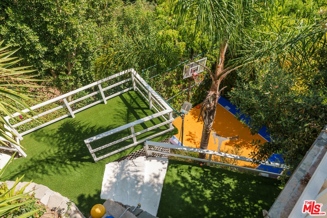 Perched high in the Hollywood Hills West, on a celebrity lined street, this private apx 4,000 sq ft hillside retreat offers modern sophistication with sweeping views of the city, mountains, and the iconic Hollywood sign - just minutes from the flats of West Hollywood, the legendary Sunset Strip, Studio City, and close to everything of interest. A dramatic entry courtyard, complete with Italian Cypress, lavender, and a custom fountain, sets the stage. Inside, soaring 14-foot ceilings and designer details - including Fornasetti and Scalamandre wall-coverings, Ralph Lauren and Jonathan Adler lighting throughout, oak floors, and George Nelson pendants - create a refined yet inviting atmosphere. The open living and dining areas flow seamlessly to expansive terraces designed for entertaining. A chef's kitchen boasts a glass-door Sub-Zero refrigerator, Viking appliances, and generous counter space. Multiple outdoor dining and lounging areas are enhanced by a fireplace, outdoor kitchen, and fruiting lemon trees. Three spacious ensuite bedrooms each feature walk-in closets and stunning views. Dual primary suites offer fireplaces, steam showers, and private balconies, while a separate staircase leads to a third ensuite bedroom and a custom loft. A den/screening room with surround sound and fireplace completes the interior. Outdoors, meandering stone pathways lead to a half basketball court under custom lighting - perfect for recreation or gatherings. A two-car garage, natural light throughout, and layered landscaping enhance this hillside oasis. Located within the award-winning Wonderland School District, this property offers privacy, style, and an entertainer's dream setting in the heart of the Hollywood Hills.