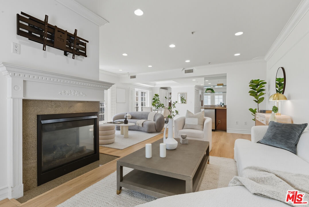 Prime Brentwood Location with Stunning Sophisticated Style! This completely remodeled, single-level condo with 3 BD + 2.5 BA + Den + Open Layout. Because it shares no walls, this turnkey condo feels like a freestanding home. As you enter, you'll love the open and airy layout with a spacious living room and dining area, a gorgeous fireplace, and two sets of French doors that open to the front private balcony. From the expansive living room, flow to the den to enjoy casual living and onto the kitchen, which is gorgeously updated with stainless steel appliances, custom cabinetry, and beautiful countertops. The generously sized primary bedroom suite boasts a fireplace, walk-in closet, bathroom, and a second private balcony. The second bedroom, with a custom en-suite bathroom, also opens to the private patio. Additional features include a beautifully remodeled powder bathroom and a laundry closet with a washer/dryer. This 8-unit boutique building's amenities include secure building entry and 2-car tandem gated parking with additional guest parking. With its fantastic location close to San Vicente Blvd restaurants and shops, Brentwood Country Mart, and UCLA, you can enjoy the Brentwood lifestyle from this beautiful condo that is not to be missed!