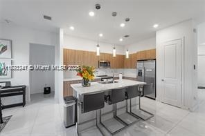 Beautiful Marbella at Tuscan Isles Home, where modern luxury and exceptional design converge in this stunning 5-bed, 4-bath home plus den/office with a 3-car garage. Built in 2022, this house boasts 3,381 sq. feet of living space on an oversize 10,281-sq.-foot lot. The first floor has a guest bedroom with a full bathroom. Upstairs, you’ll find four bedrooms and 3 bathrooms. Premium finishes such as luxurious flooring, designer wall coverings, hurricane-impact windows and doors, and a fully fenced PVC backyard elevate the home's appeal. Gated community, amenities: lap pool, gym, putting green, play area, and a clubhouse with a party room and catering kitchen. Top-rated schools, shopping, dining, and major highways. Make this residence yours and experience a new standard of living.