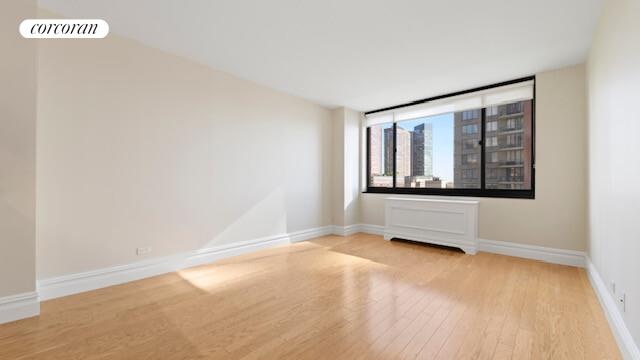 This renovated south facing 1BR/1BA residence features a generously proportioned living space with river and statue of liberty views. The renovated galley kitchen includes stainless steel appliances and dishwasher. The stone countertops and cabinetry highlight a warm and neutral palette. The bathrooms feature Cararra marble floors and wall tiles. The spacious bedroom features large closets and southern exposure.