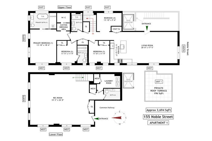 Crafted by award-winning local designer Cece Stelljes, 155 Noble Street is a distinctive, freestanding, landmarked Neo-Gothic condominium that is 30-foot-wide on an extra deep lot and consists of only five residences. Nestled on a favorite tree-lined block in the historic district of Greenpoint, here you will find a rare combination of architectural pedigree and everyday practicality. Enjoy proximity to the neighborhood's best dining, parks, and boutiques with the conveniences of Manhattan and Franklin Avenues nearby, the G train just one block away, easy access to the East River ferry and the North Brooklyn waterfront , and convenient parking options. Perfectly positioned between McCarren Park and Long Island City, and in close proximity to Manhattan, this quiet, charismatic enclave embodies Brooklyn at its most beautiful. Pet-friendly. Subletting allowed. 90% financing allowed.