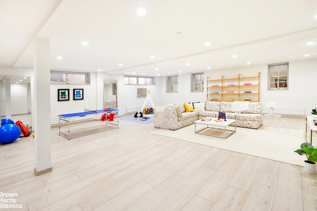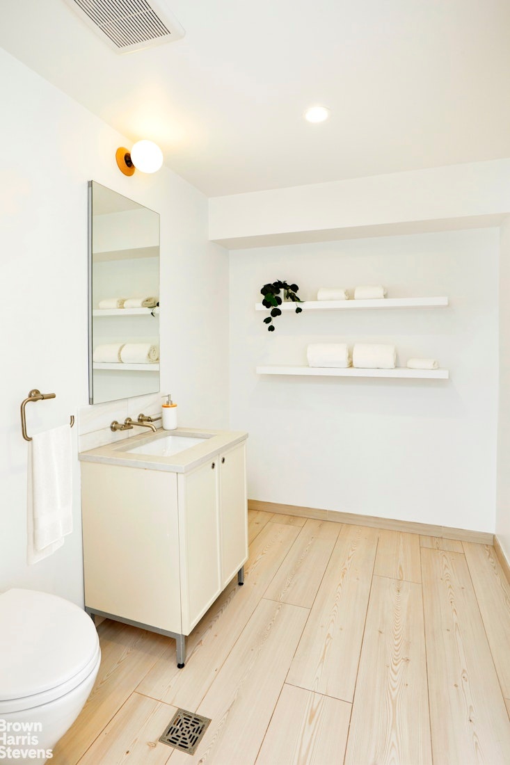 At approximately 1,000 square feet, with six windows and soaring ceilings, the lower level offers remarkable versatility - ideal for a private gym, media lounge, or creative studio - or perhaps reimagined to include two additional windowed rooms. This floor also features a dedicated laundry room with a vented LG washer and dryer, a separate powder room for added convenience, and an additional entryway accessible via the building's elevator.