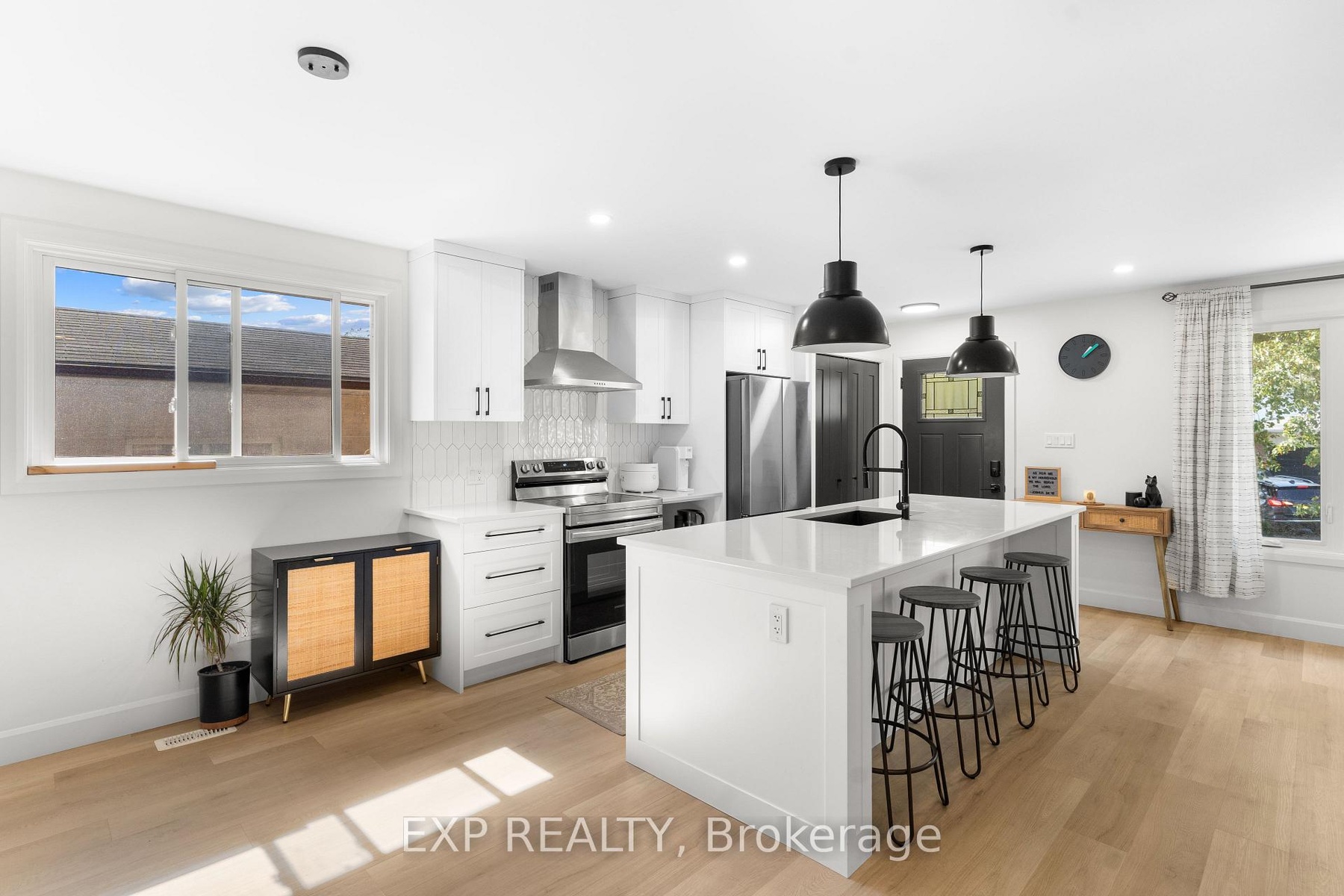 DescriptionWelcome to 779 Monsarrat Avenue, a fully renovated 3 bedroom, 2 bath, four level back split in sought after North Carling. This home blends modern design with everyday functionality. The open concept kitchen features a large quartz island, sleek black fixtures, and new stainless steel appliances. Luxury vinyl plank flooring runs throughout, and both bathrooms showcase stylish tile and bold black finishes. The lower level offers a bright family room perfect for movie nights, while the basement includes a finished flex area and private office ideal for working from home or a home gym. A side walk up provides potential for an in law or income suite. Outside, enjoy a covered composite deck, landscaped yard, and two sheds for storage. Parking for two on the asphalt driveway. Close to Fanshawe College, schools, parks, and community amenities, this home is move in ready and designed for modern living.Virtual Tour: https://show.tours/779monsarratavenue