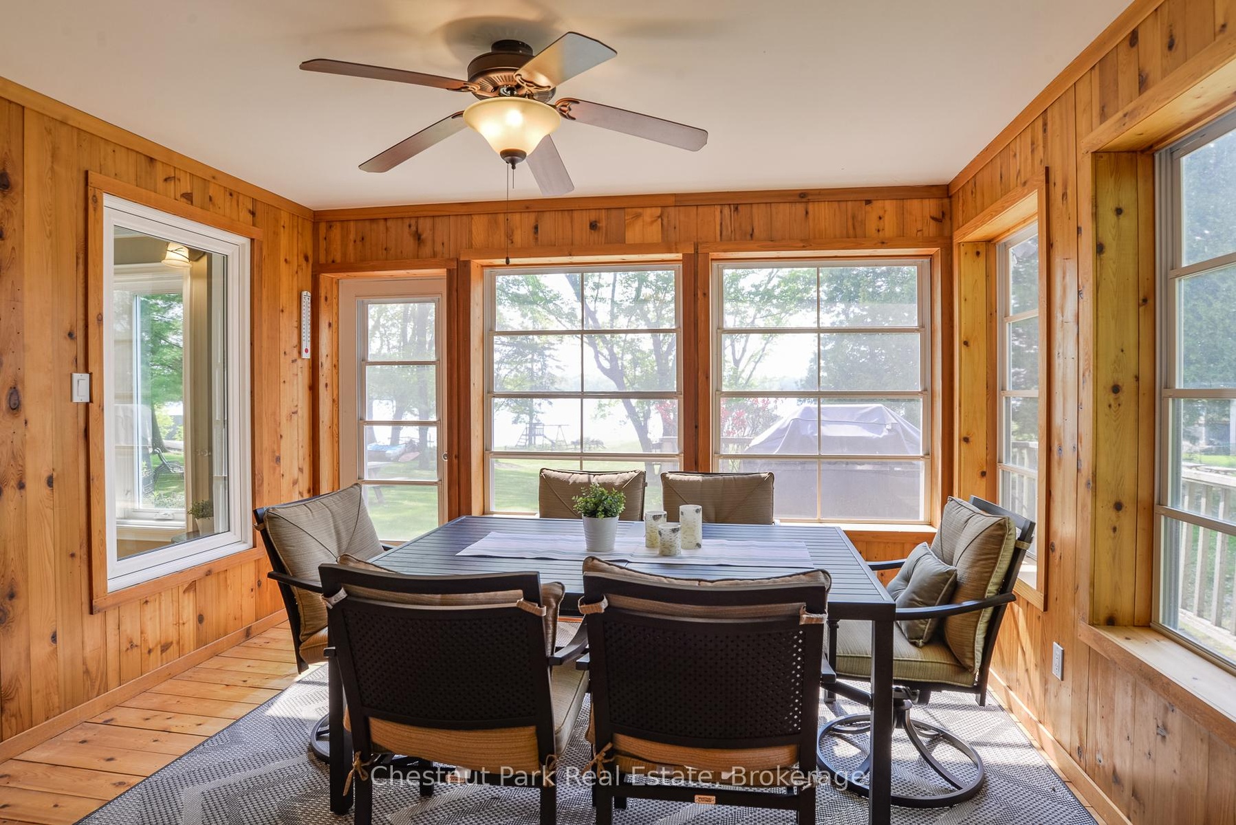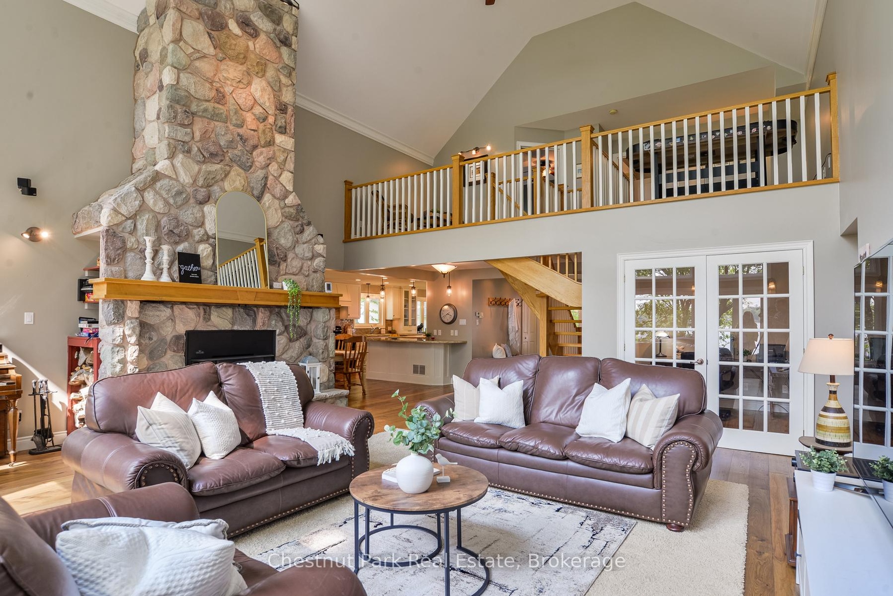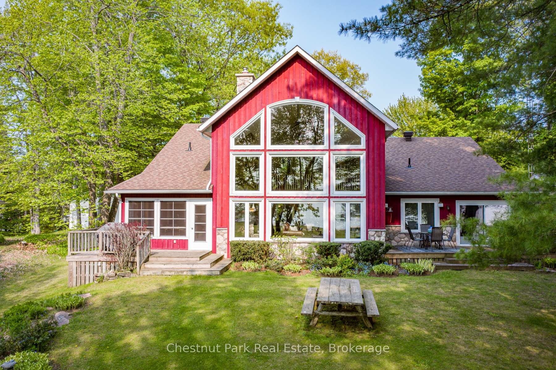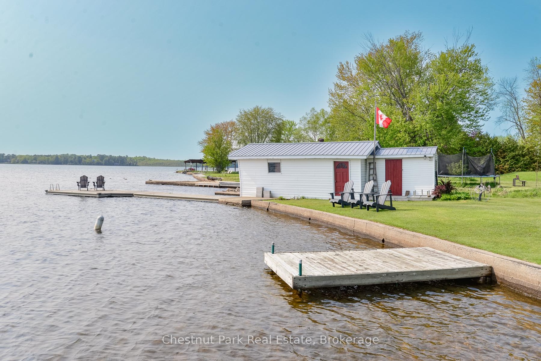 DescriptionHIGHLY COVETED *SPARROW LAKE* SUNSET SHORE LAKEHOUSE with easy year round, paved municipal road access. This custom built year round home or 4-seasons cottage offers over 3,100 sq.ft. of living space with not 1 but 2 MAIN FLOOR BEDROOMS & 2 ENSUITE BATHROOMS plus an additional private lofted guest suite to accommodate family & friends. Great room features soaring cathedral ceilings, a stunning stone fireplace & magnificent window wall to the lake where you will enjoy the most incredible sunsets ALL YEAR LONG. Discerning buyers, get out your check list & prepare to be impressed - this property is well appointed throughout. ENJOY LIFE, PLAY EVERY DAY or WORK IF YOU MUST from the private main floor office with plenty of room for 2 desks. Ideal for entertaining, the newer chef's DREAM KITCHEN comes complete with a breakfast counter, large centre island & an eat-in area. Plus there is a second dining room & living room which flow effortlessly out to the cozy Muskoka room. Side entry & decking makes BBQing a breeze! Gracing the bungalow level are the master suite with 5-piece ensuite, massive walk-in closet & private lakeside deck, main floor laundry & pantry, plus you will absolutely love the oversized second main floor bedroom with ensuite privilege (previously used as an artisan's studio so it even has its own separate entrance). Triple detached garage provides 2 bays for vehicles, oodles of storage room, plus an extended full workshop with 2 man doors. The upper loft offers 11'x32' of flex space for games or storage. With 2 shore docks you can use one just for lakeside yoga if you'd like! A rare single wet slip boathouse, sandy shore & play area complete this incredible package. Level lot is ideal for all ages & ranges of mobility. Large firepit at the shore & lots of room for a pool w lake views should a buyer wish to explore. Relax, swim, fish, or boat to Lake Couchiching & Lake Simcoe in one direction & Georgian Bay in the other (go around the world if you want).Amenities- Bay