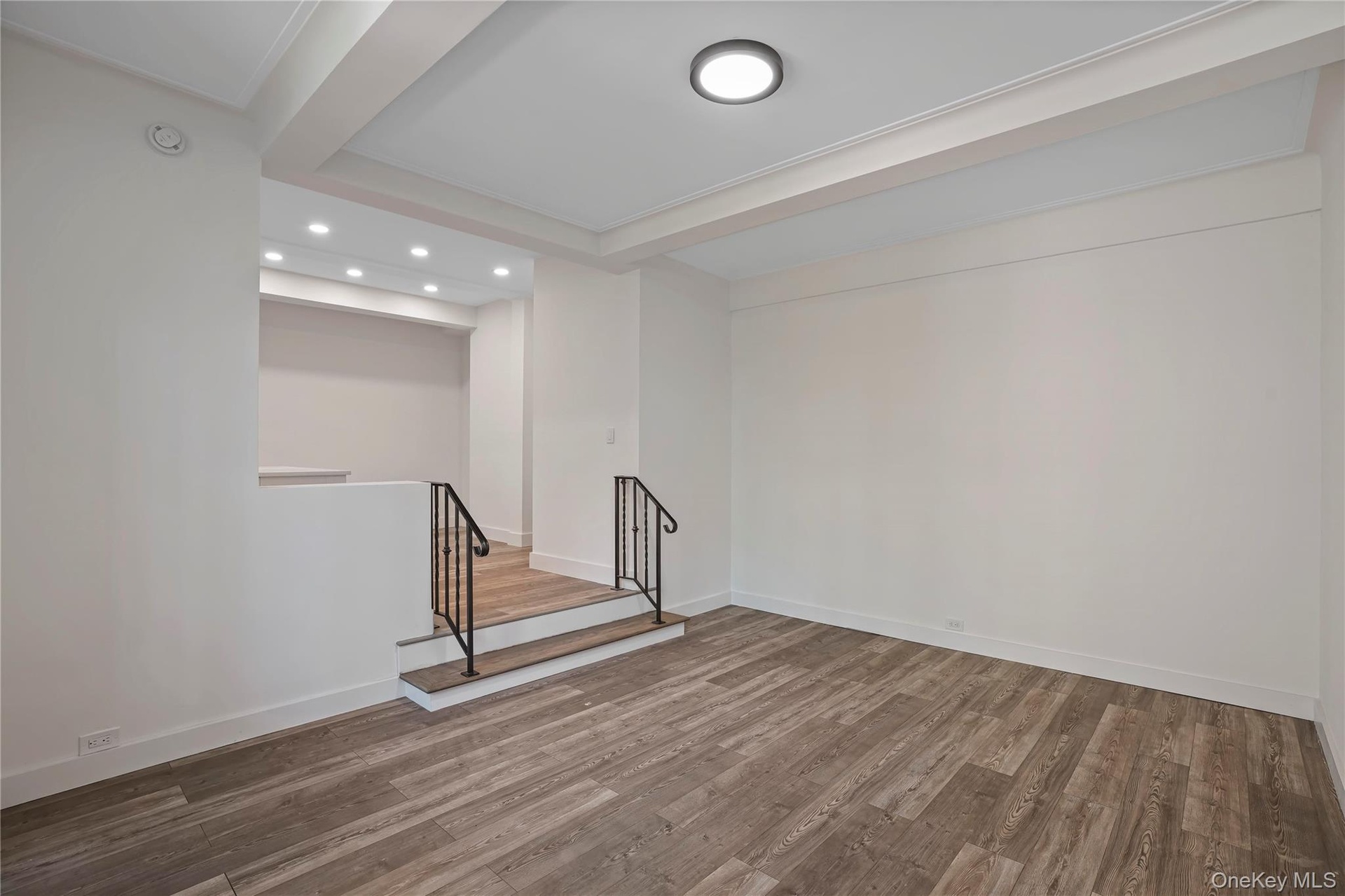 - Empty room with recessed lighting and wood finished floors