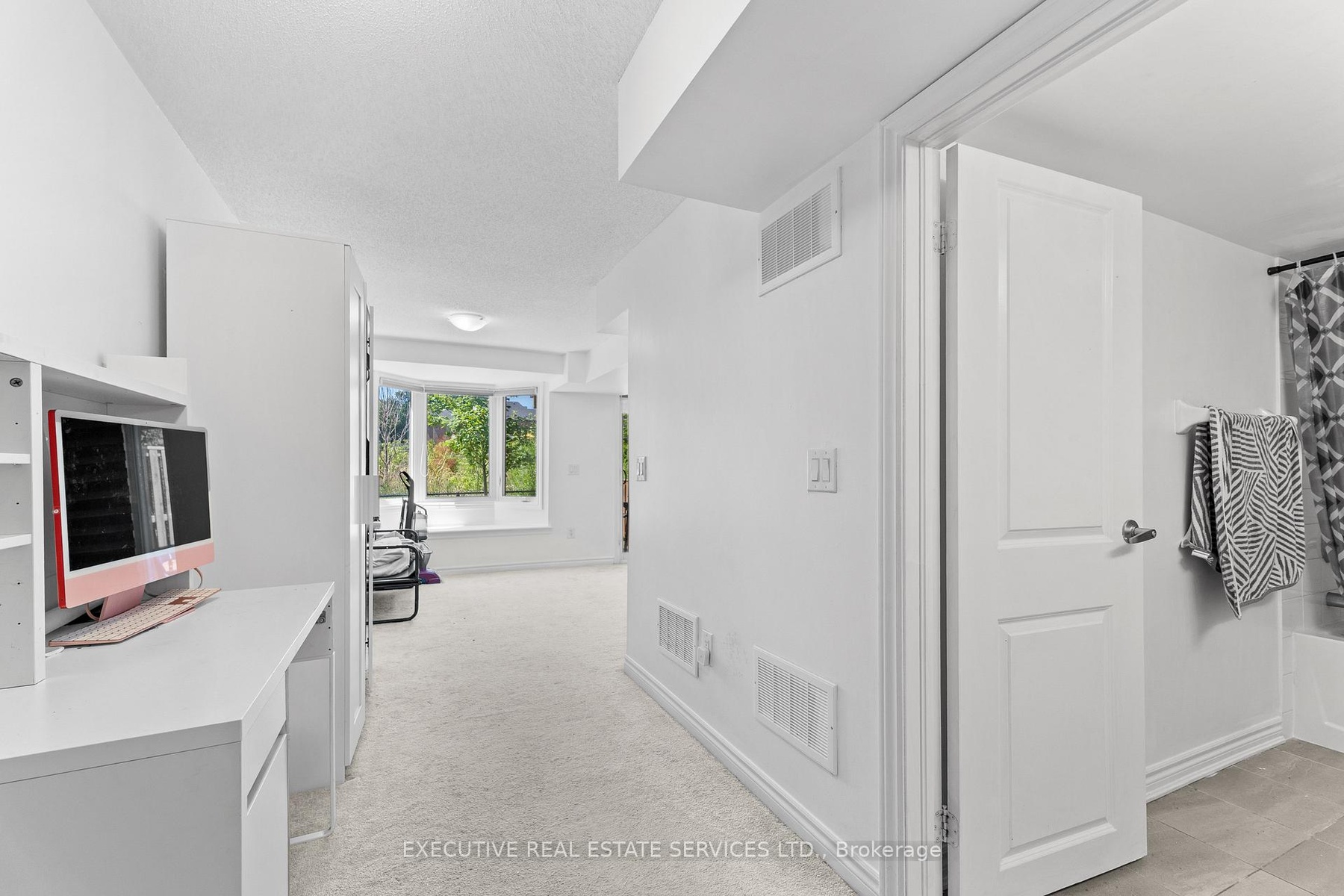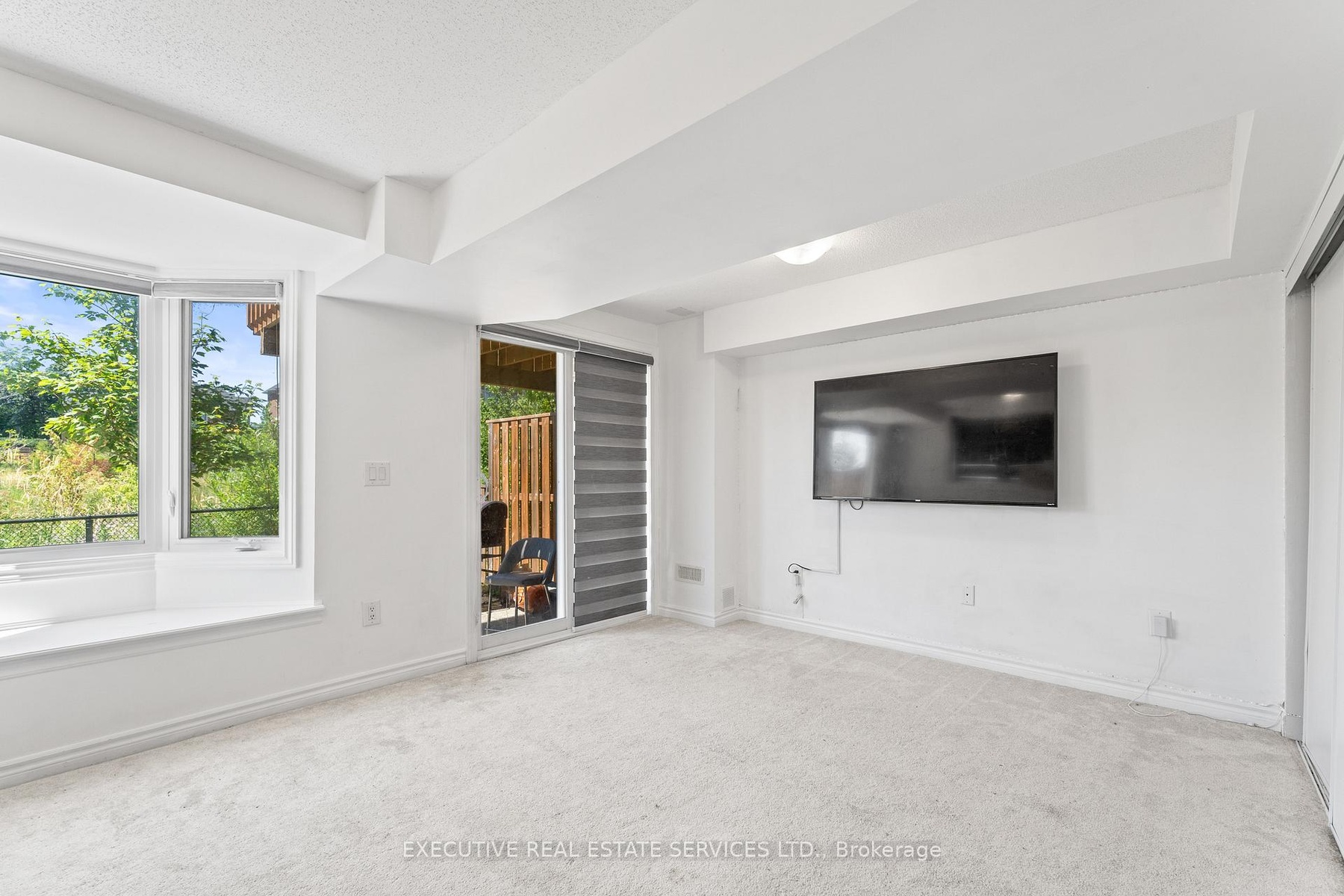 Welcome to this stunning end-unit 3-bedroom, 4-bathroom condo-townhouse, offering one of the best locations in the complex! This bright and spacious home features a fully finished walkout basement that backs onto a serene ravine, offering peaceful views and added privacy. From the moment you step inside, you'll be impressed by the thoughtful layout, natural light, and quality finishes throughout.The main floor showcases an open-concept living and dining area with elegant hardwood flooring, perfect for relaxing or entertaining guests. A bay window adds charm and floods the space with light. The modern kitchen is equipped with stainless steel appliances, ample counter and cabinet space, a stylish backsplash, and a convenient breakfast bar. A second bay window in the kitchen overlooks the private ravine and opens to a deck perfect for morning coffee or evening BBQs.Upstairs, the large primary bedroom features a walk-in closet, its own bay window, and a 4-piece en-suite bath for your comfort. Two additional generously sized bedrooms and a full bathroom complete the upper level.The professionally finished basement, completed by the builder, offers a walkout to a private patio surrounded by nature ideal for a home office, recreation room, or media space. Theres also a 2-piece bathroom and abundant storage space.Enjoy the convenience of a single-car garage with direct interior access, a private driveway, and visitor parking nearby. Bay windows on all three levels enhance the character and brightness of this exceptional home. Don't miss this rare opportunity to own a beautifully maintained, move-in-ready home in a sought-after, family-friendly community. Book your private showing today!