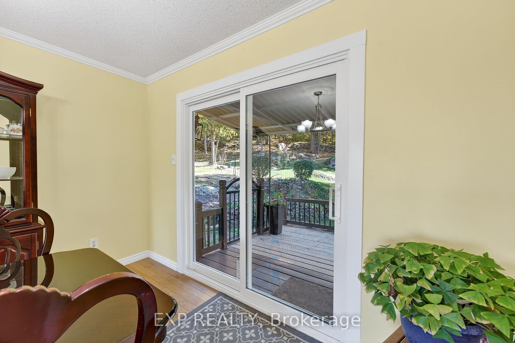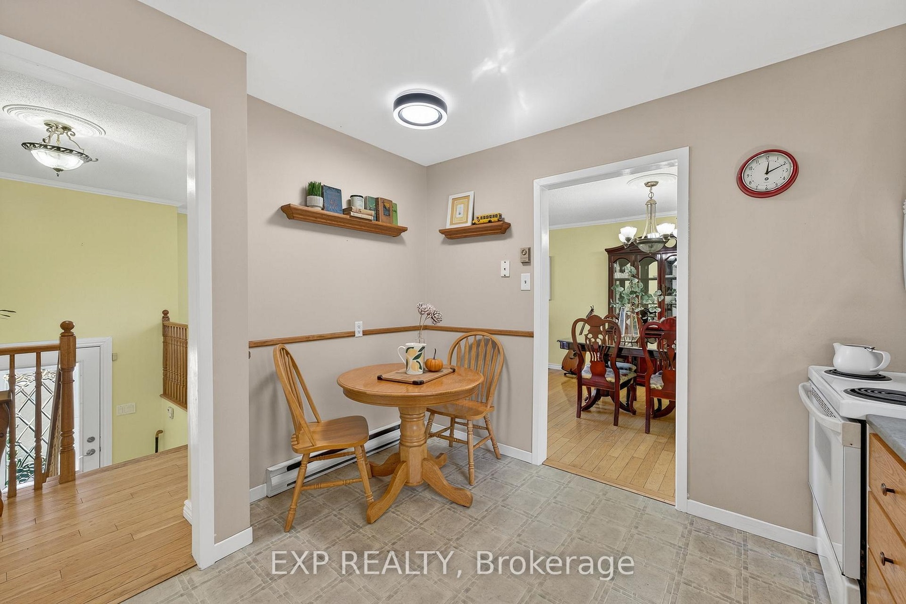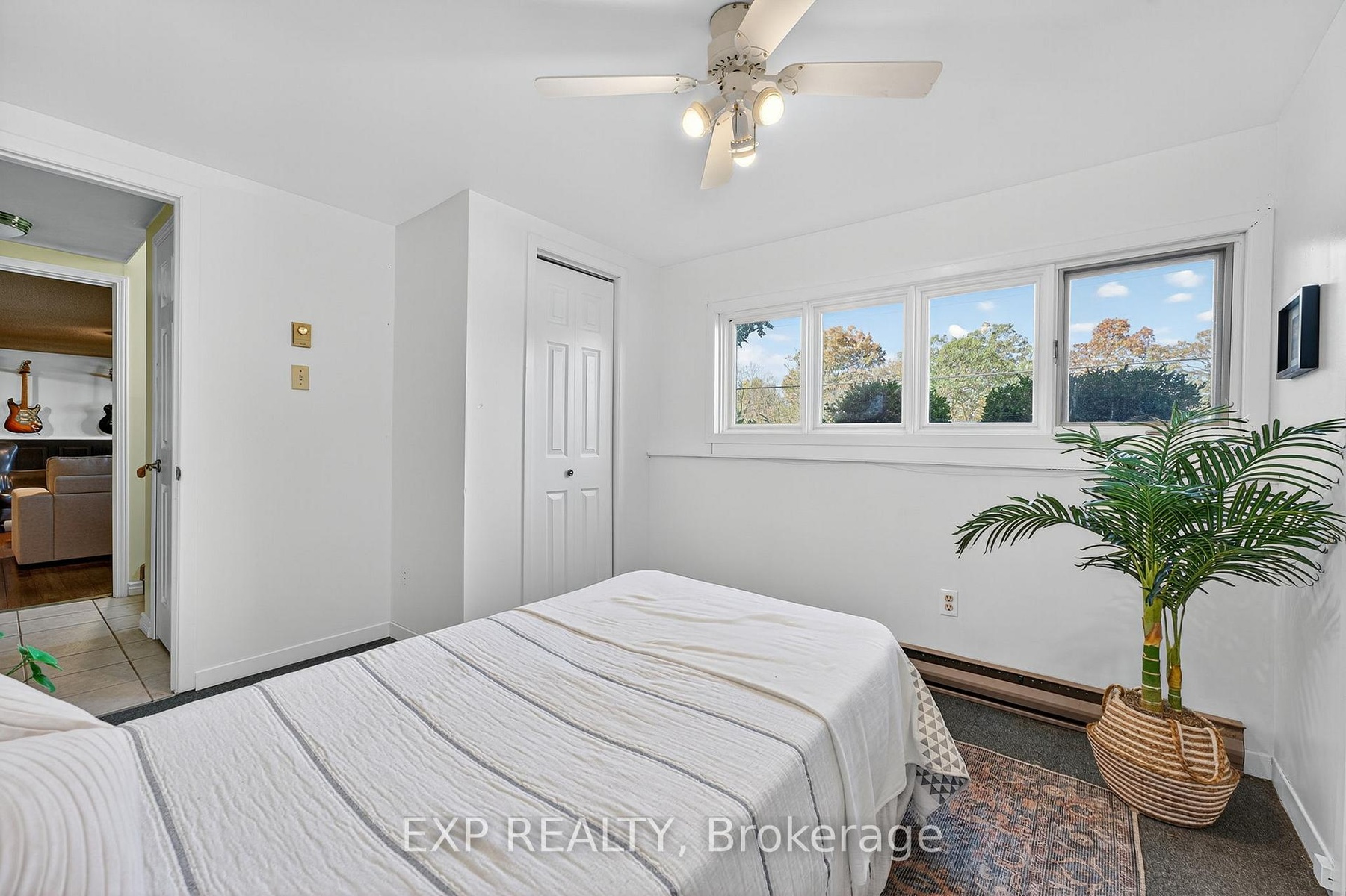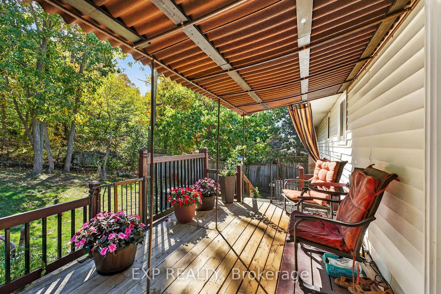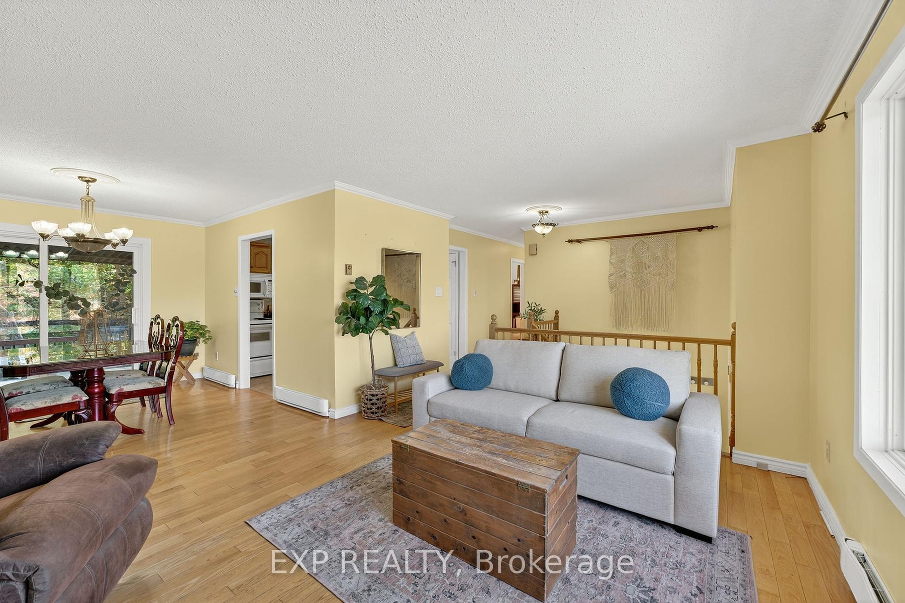 A home with space, light, and all the right vibes. Set on 1.59 acres with granite outcroppings, mature trees, and trails to wander, this elevated home gives you room to breathe and enjoy life a little more. It's that rare mix of space and convenience tucked in a scenic setting just minutes from downtown Kingston and the base. Freshly painted and move-in ready, the home features new bedroom carpets, updated sliding doors, and a bright layout that just feels good to live in. The sun-filled living room looks out through a big picture window, while the dining area opens to a covered deck and fenced yard perfect for kids, pets, or weekend hangouts.The main floor includes a comfortable primary bedroom with ensuite, plus two more bedrooms and a second full bath. Downstairs, the finished lower level adds even more space with a huge rec room, cozy wood stove, and a fourth bedroom ideal for guests or a growing family. Scenic land. Smart layout. Solid value.