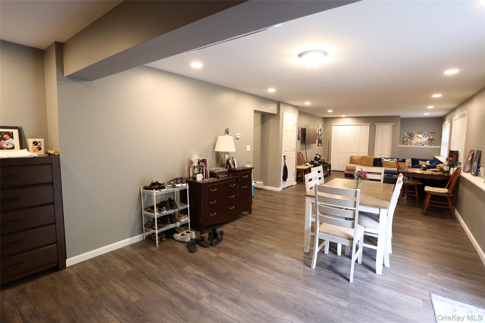 - Living area featuring wood finished floors, recessed lighting, and a baseboard heating unit