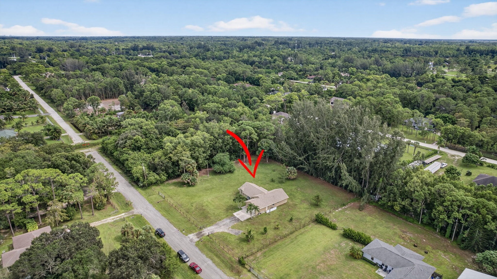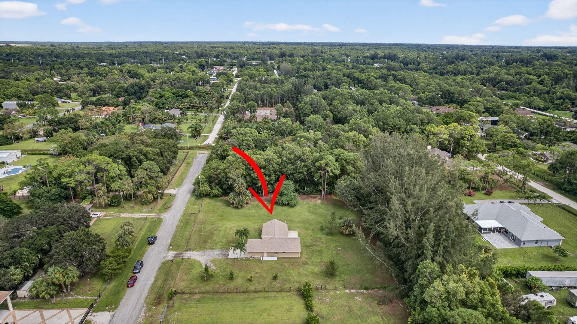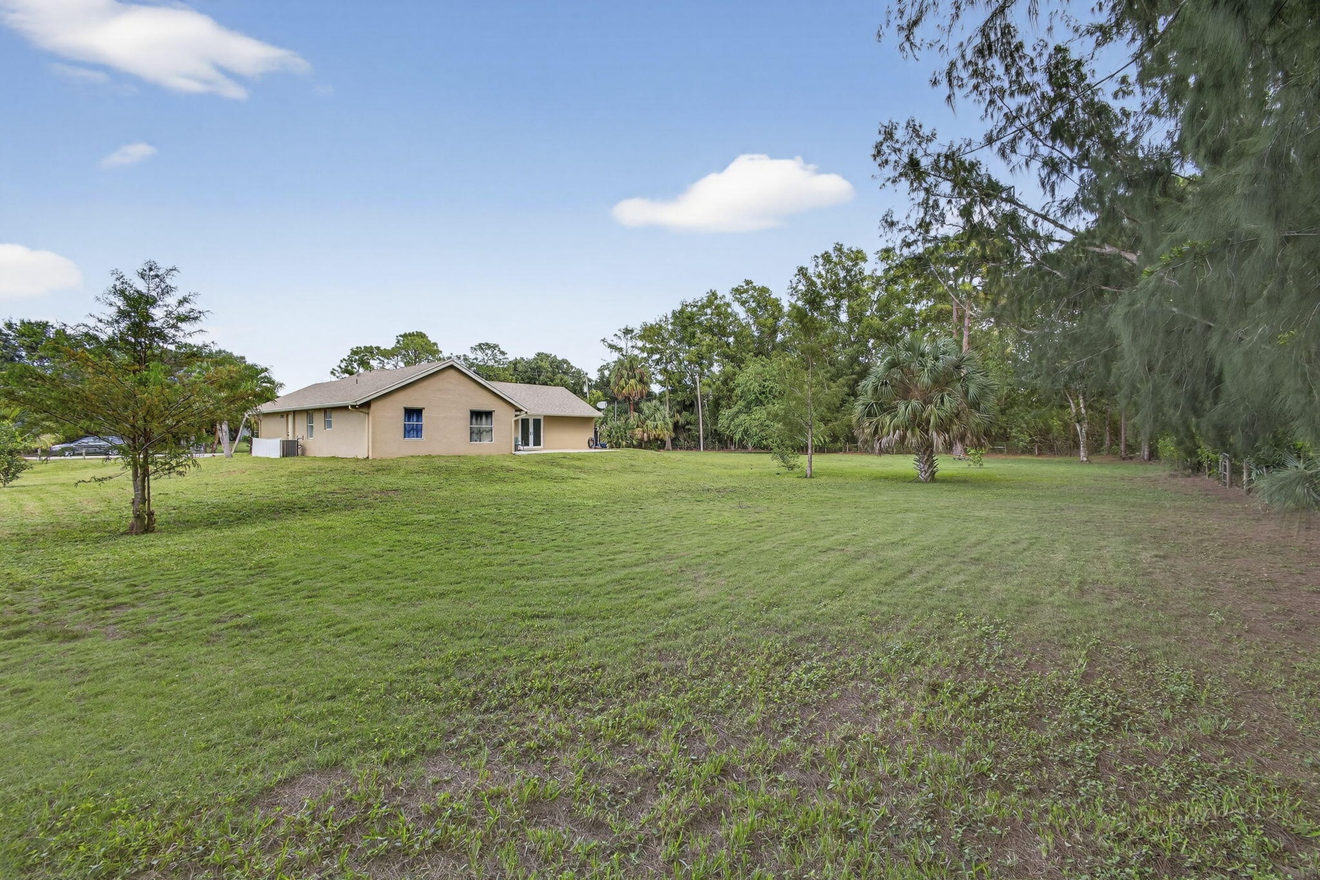 DescriptionExperience country living just minutes from the new City of Westlake! This 3-bedroom, 2-bath CBS home with a 2-car garage sits on 1.29 fully fenced acres at the end of a quiet paved street. The split floor plan features two living areas with vaulted ceilings, creating an open, airy feel, and vinyl flooring in the living areas. The kitchen boasts solid wood cabinets, granite countertops, and stainless steel appliances. French doors open to a spacious backyard and patio, ideal for entertaining. With no HOA, enjoy the freedom to bring horses, boats, RVs, or trailers. The oversized lot offers room for a pool, workshop, or guest house providing endless possibilities for Florida country living.