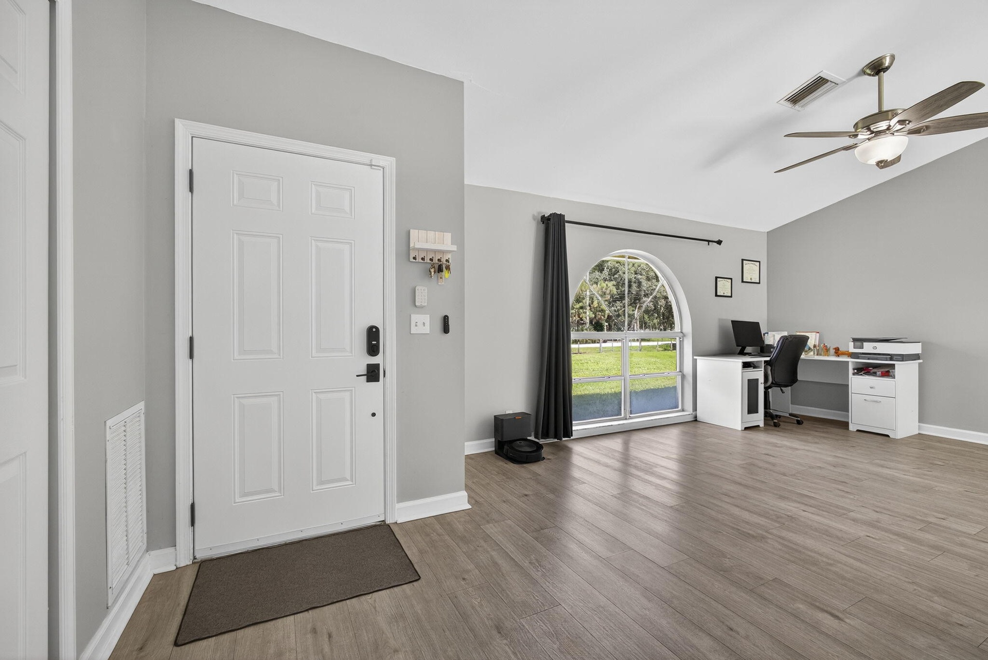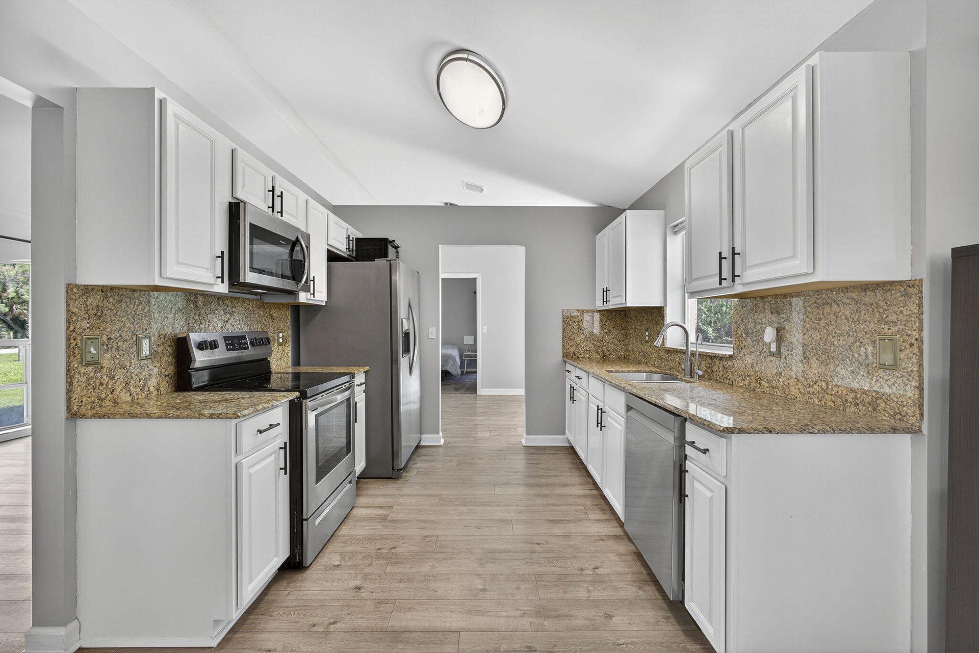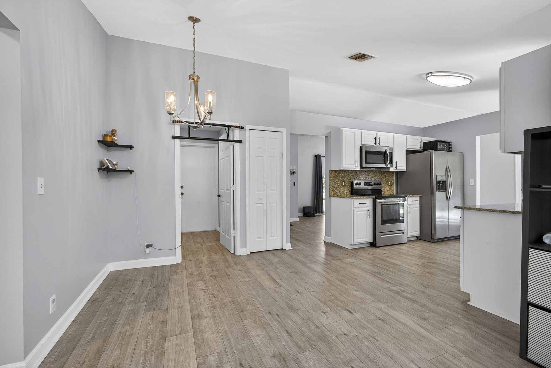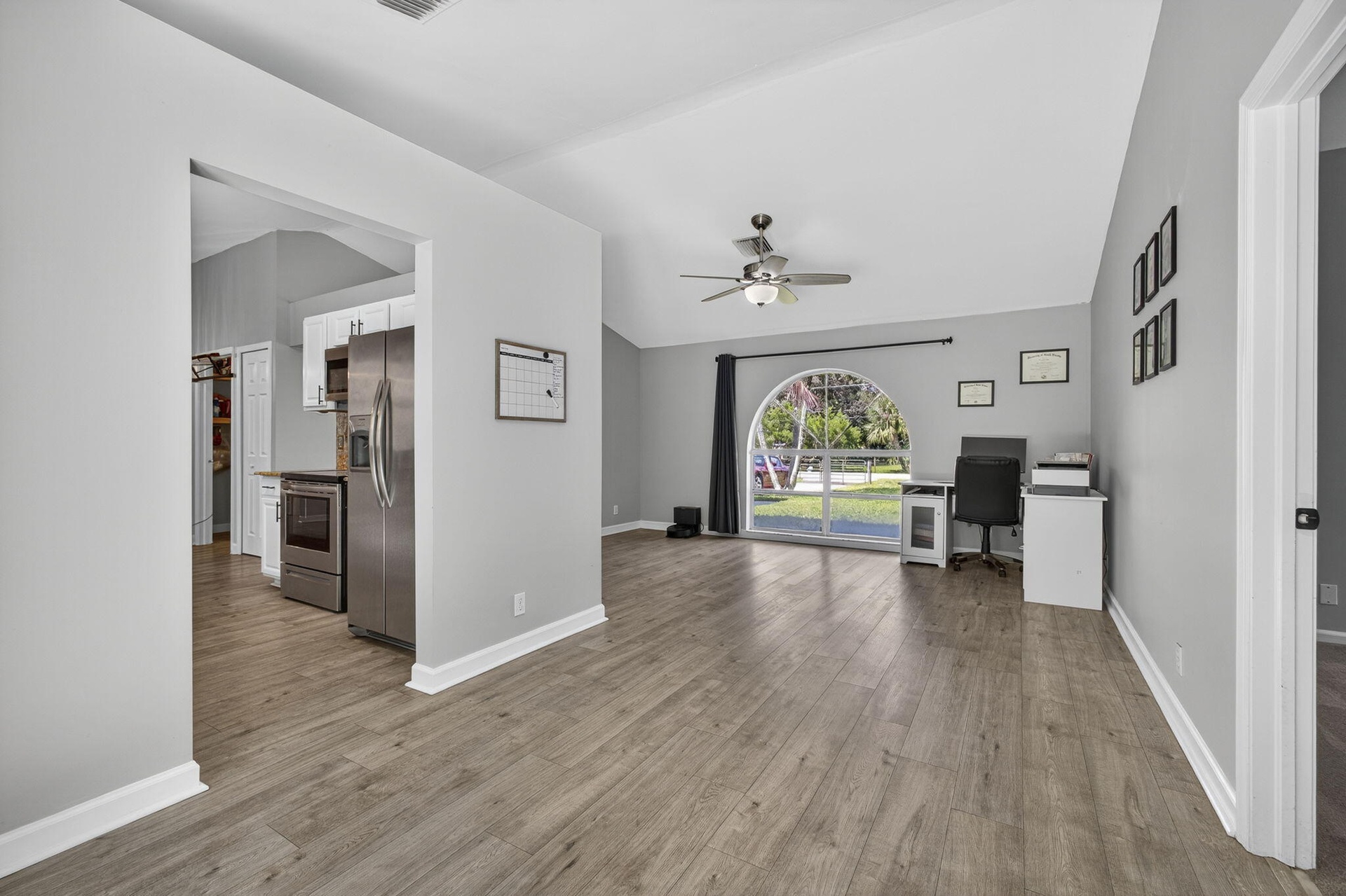 DescriptionExperience country living just minutes from the new City of Westlake! This 3-bedroom, 2-bath CBS home with a 2-car garage sits on 1.29 fully fenced acres at the end of a quiet paved street. The split floor plan features two living areas with vaulted ceilings, creating an open, airy feel, and vinyl flooring in the living areas. The kitchen boasts solid wood cabinets, granite countertops, and stainless steel appliances. French doors open to a spacious backyard and patio, ideal for entertaining. With no HOA, enjoy the freedom to bring horses, boats, RVs, or trailers. The oversized lot offers room for a pool, workshop, or guest house providing endless possibilities for Florida country living.