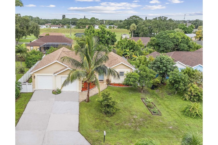 DescriptionWelcome to 1651 Alpha St NE, Palm Bay, FL 32907 -- a beautifully updated 3-bedroom, 2-bath home featuring an open floor plan with high ceilings throughout. Enjoy peace of mind with a new roof (2023), AC (2019), and newer water heater. The stunning renovated kitchen boasts granite countertops, modern cabinetry, and flows seamlessly into spacious living areas with laminate and tile flooring. The primary suite offers direct access to the backyard, a large bathroom with a tub and separate shower, and his-and-hers closets. Step outside to a gorgeous patio perfect for entertaining, surrounded by lush fruit trees including pear, ackee, banana, pineapple, jackfruit, lychee, orange, mango, and coconut--your own tropical paradise!