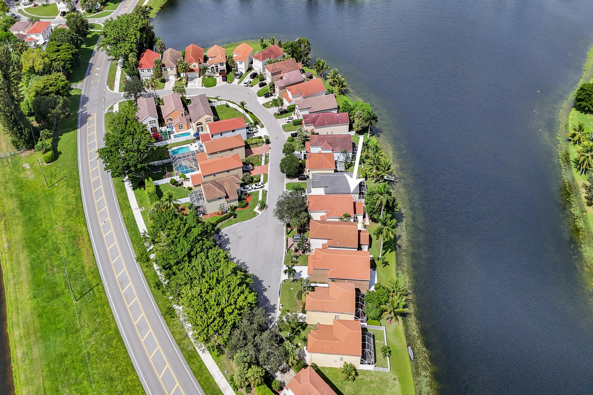 This is the lakefront home you've been waiting for, nestled on a serene private lot with over 2,100 square feet of comfortable living space. This 3-bedroom, 2.5-bath CBS residence includes a 2-car garage and boasts high-value upgrades like hurricane-impact windows, a beautiful new paver driveway, a tile roof installed in 2018, freshly painted interiors and exteriors, and an upgraded kitchen featuring 42-inch cabinets, granite countertops, and stainless steel appliances. Sought-after features include a downstairs den/office, volume ceilings, large windows, tropical landscaping, and generous natural light throughout. Situated on a quiet cul-de-sac, it's just minutes from a private neighborhood park and playground, excellent schools, restaurants, and beaches. Don't delay, come see it today!