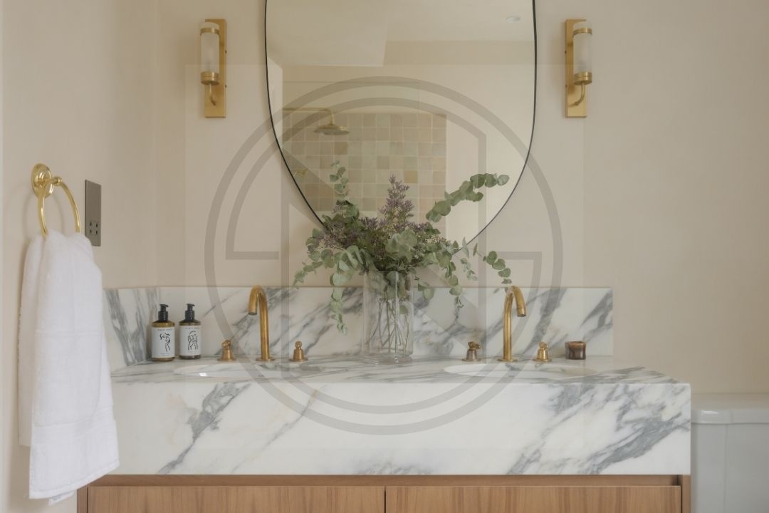 - Marble countertops in kitchens and baths
