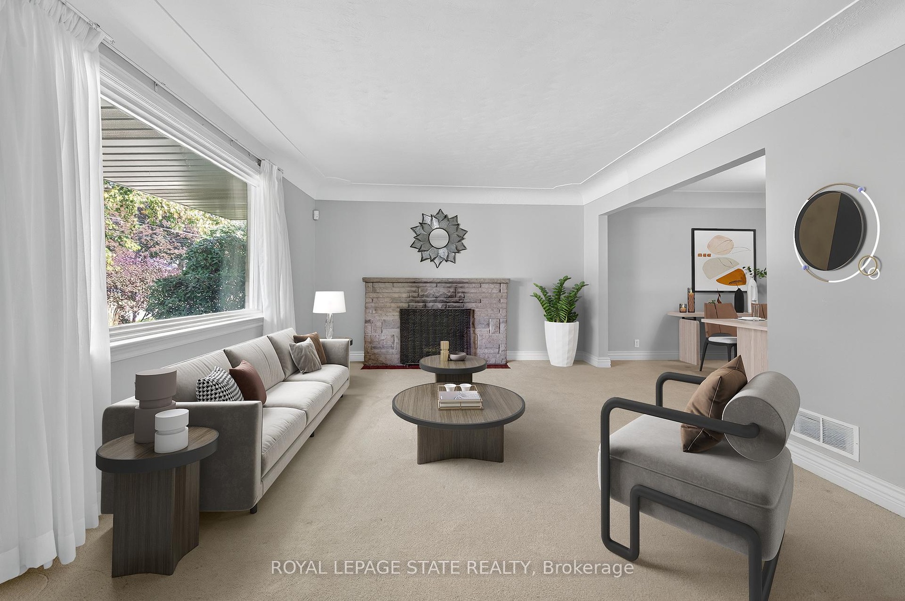 DescriptionThis lovingly maintained bungalow in South Aldershot, Burlington, offers a fantastic layout with some hardwood floors and an inviting bonus family room addition featuring a cozy gas fireplace and beautiful built in cabinetry. Enjoy the elegance of California shutters throughout and the luxury of heated floors in the main bathroom. Step outside to a spacious yard with a covered patio, perfect for entertaining. A wood fireplace with a gas hook-up is also available, adding to the home's charm.This home boasts an ideal location in a lovely mature neighbourhood, that is just a short drive to the Hospital, Spencer Smith Park, with convenient highway access. Downtown Burlington, with its stunning Lake Ontario waterfront, upscale boutiques, diverse restaurants, and a vibrant arts scene including the Performing Arts Centre and Art Gallery, is also easily accessible. Plus, golf is also conveniently close by. This home has been well cared for. Some photos are virtually staged.Virtual Tour: https://www.myvisuallistings.com/vtc/359839Amenities- Alarm system