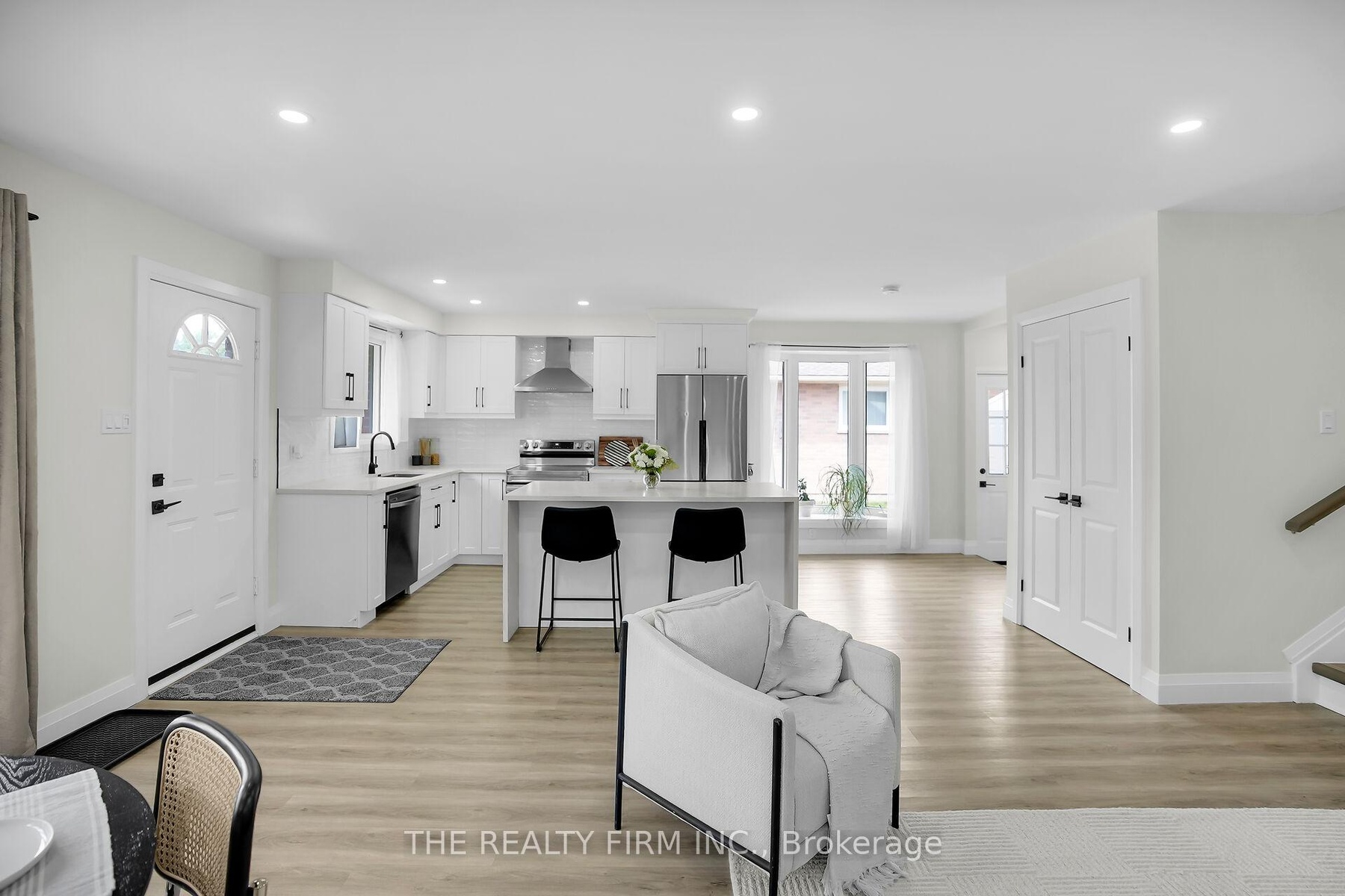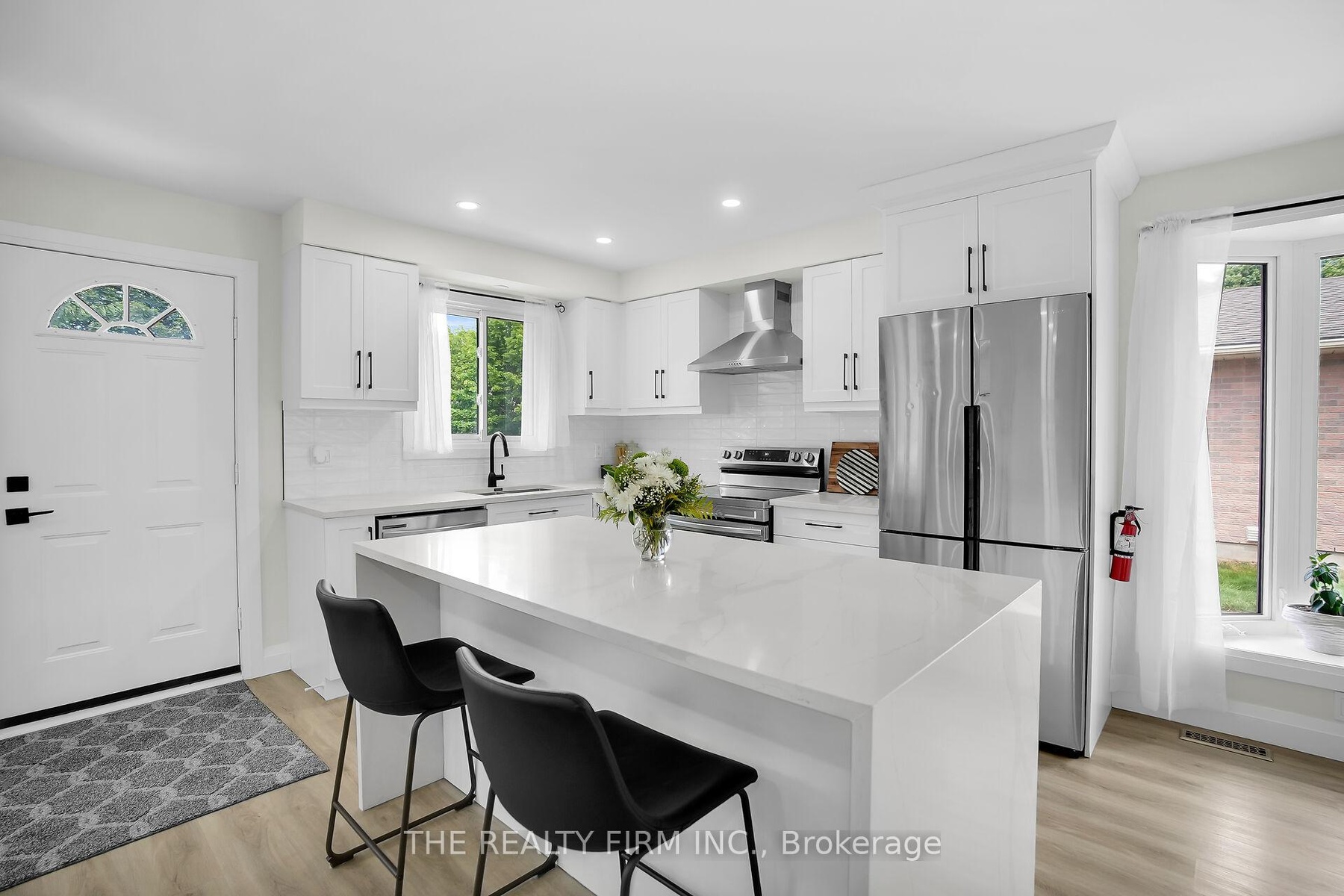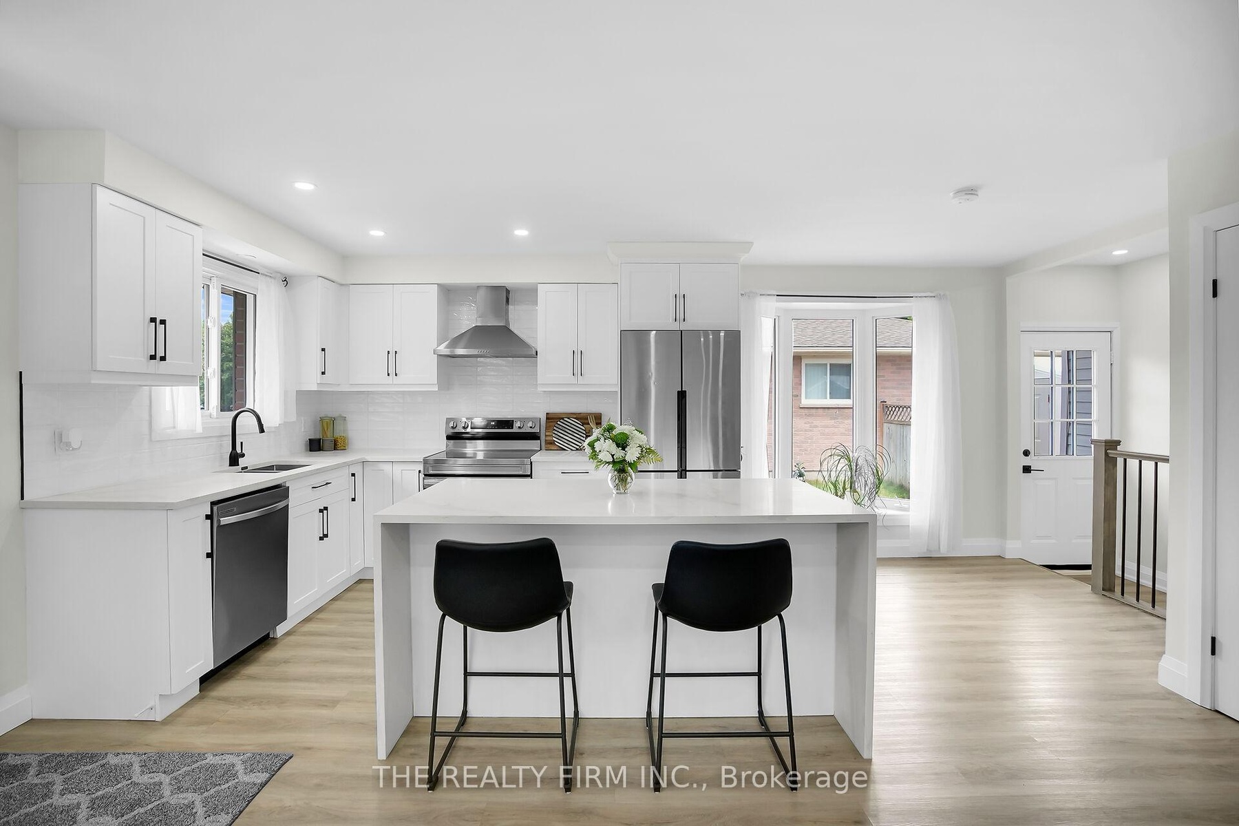 DescriptionBigger than it looks, come see for yourself! This fully renovated 4-level back-split combines style, space, and versatility with 3+2 bedrooms and 2.5 bathrooms. Step inside and prepare to be impressed this home is far more spacious than it looks, with modern finishes throughout.The bright, open-concept main level showcases a stunning white kitchen with quartz countertops, soft-close cabinetry, a waterfall-edge island, and stainless steel appliances. Oversized windows and recessed lighting flood the space with natural light, creating a warm and inviting atmosphere.Upstairs, you'll find three generous bedrooms and a beautifully updated 4-piece farmhouse-inspired bathroom.The lower level offers a versatile flex room ideal as a home office, playroom, den, or extra bedroom plus a convenient 2-piece bath and a large family room featuring a tiled accent wall with a built-in electric fireplace.The fully finished basement includes a spacious bedroom with a luxurious 4-piece bathroom, as well as a dedicated laundry room with custom finishes. Lots of space for families with kids or multi generations. Outside, enjoy parking for up to six vehicles and a large backyard with a massive concrete patio perfect for summer entertaining. As part of the renovations, a precautionary Big O drainage system was installed, running from the rear concrete slab out to the front yard. The system is topped with clear gravel and decorative black landscaping stone, ensuring both function and curb appeal.Tucked away on a quiet street in a mature, family-friendly neighbourhood, this home offers quick access to the 401, top-rated schools, shopping, transit, and all of South Londons amenities.Amenities- Carpet Free