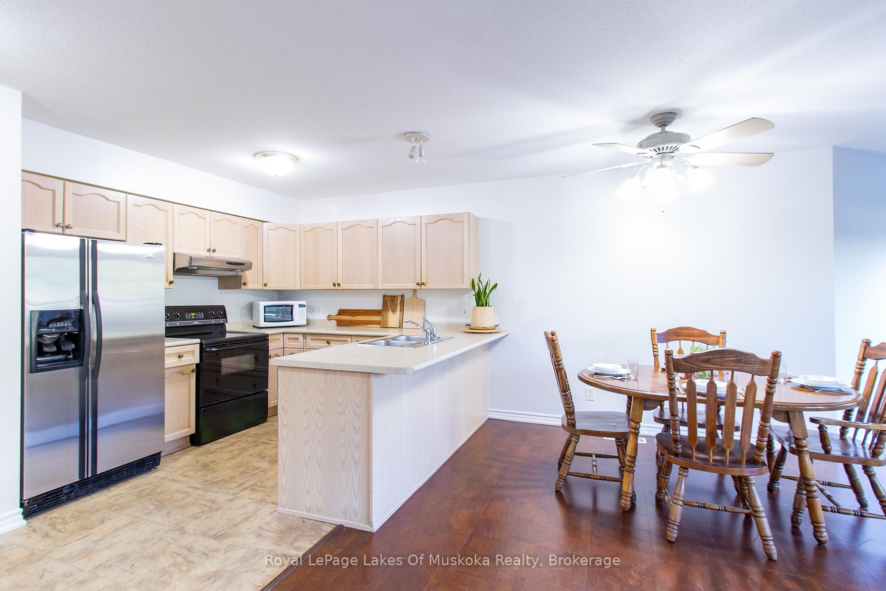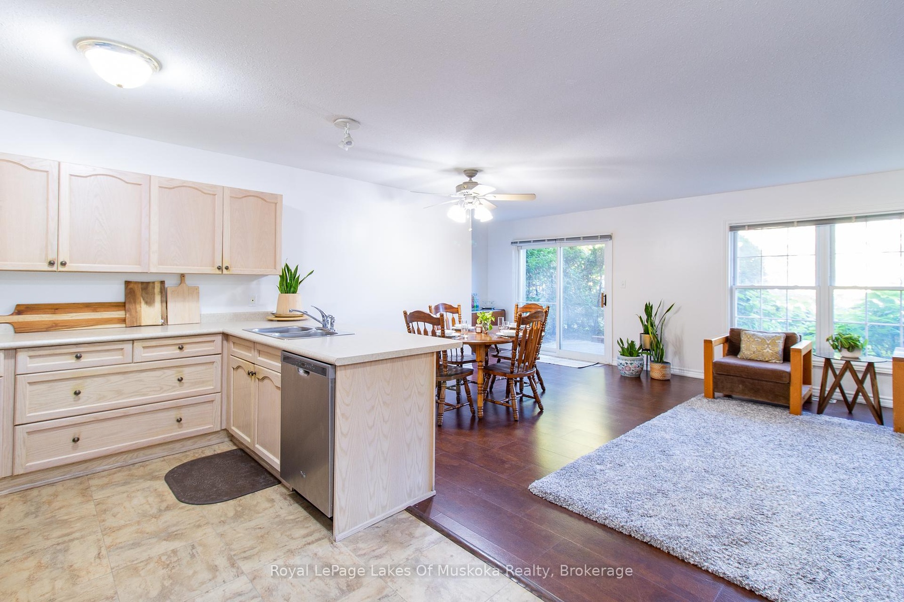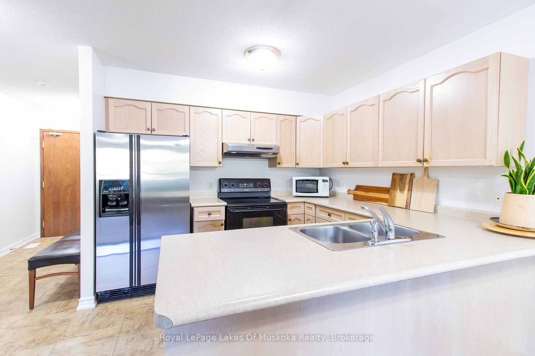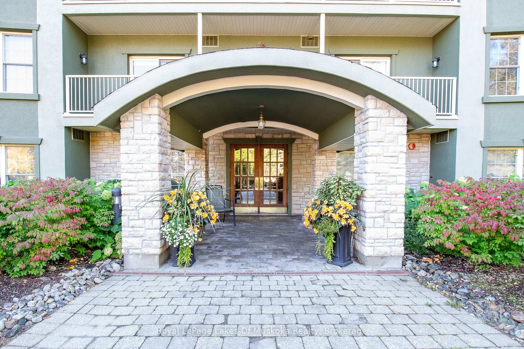 Welcome to this bright and beautifully maintained 2-bedroom plus den, 2-bathroom condo ideally located on the main floor for easy access and convenience. Freshly painted throughout, this unit offers a comfortable and modern layout perfect for retirees, professionals, or anyone looking to enjoy carefree condo living in one of Bracebridges most desirable locations. Step into the open-concept living area that leads out to a private ground-level patio, surrounded by lush privacy shrubs the perfect place to relax with your morning coffee or unwind at the end of the day. The brand new, fully renovated ensuite off the spacious primary bedroom adds a touch of luxury, while the second bathroom features a relaxing jet tub for added comfort. You'll also enjoy a dedicated underground parking space, a secure storage locker, and easy access to the buildings common areas. Located just a short walk to the Falls and downtown Bracebridge, this condo is perfectly positioned to take advantage of the many local shops, restaurants, and year-round events that make this community so special. Enjoy the best of Muskoka living comfort, convenience, and community all in one perfect package. The building is undergoing a roof replacement this spring with the Sellers covering the cost of the new A/C roof unit so the Buyer will get the comfort of knowing a new A/C will be servicing their unit.