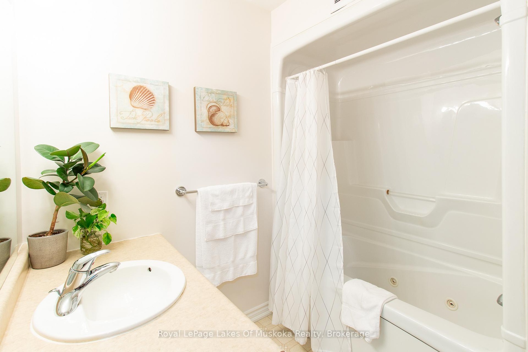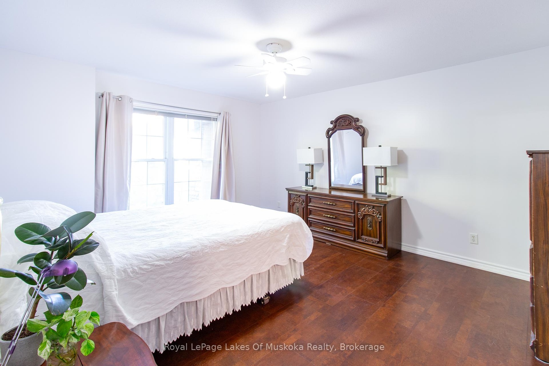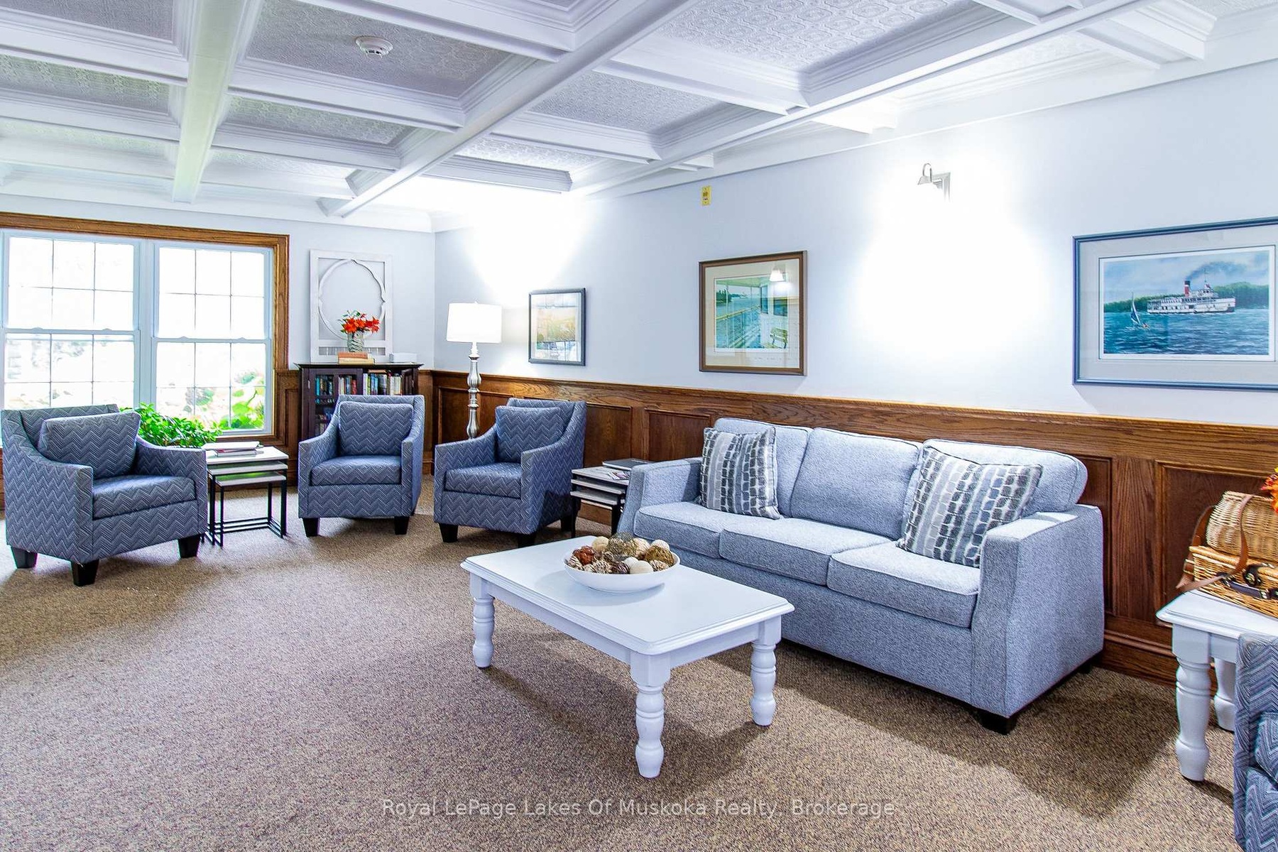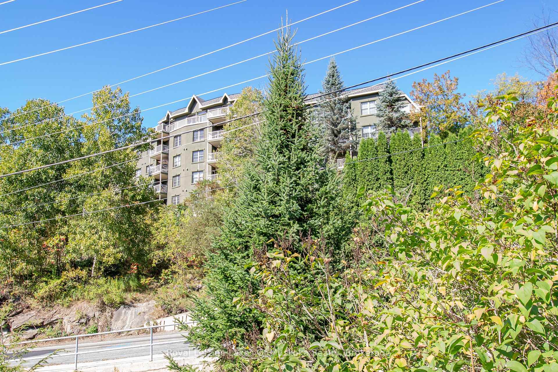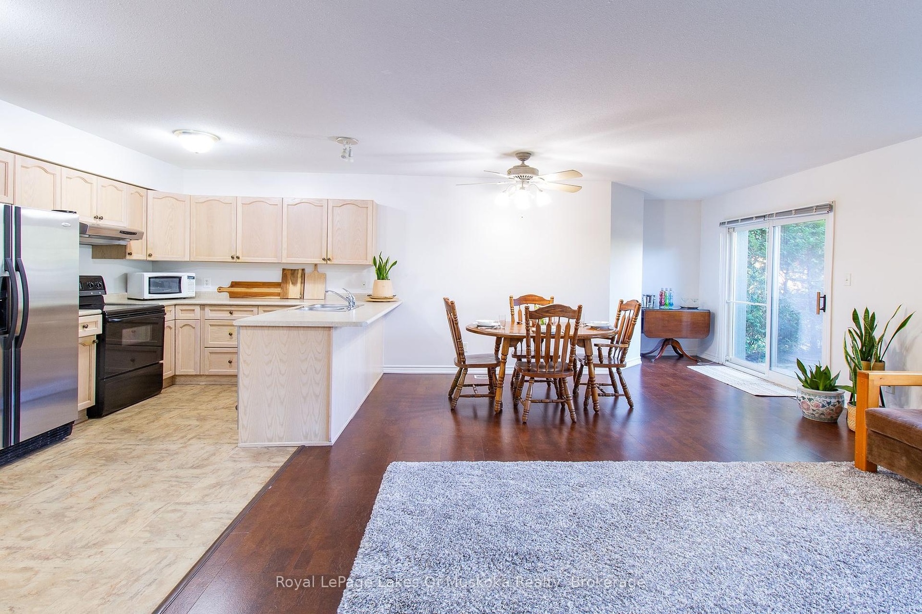 Welcome to this bright and beautifully maintained 2-bedroom plus den, 2-bathroom condo ideally located on the main floor for easy access and convenience. Freshly painted throughout, this unit offers a comfortable and modern layout perfect for retirees, professionals, or anyone looking to enjoy carefree condo living in one of Bracebridges most desirable locations. Step into the open-concept living area that leads out to a private ground-level patio, surrounded by lush privacy shrubs the perfect place to relax with your morning coffee or unwind at the end of the day. The brand new, fully renovated ensuite off the spacious primary bedroom adds a touch of luxury, while the second bathroom features a relaxing jet tub for added comfort. You'll also enjoy a dedicated underground parking space, a secure storage locker, and easy access to the buildings common areas. Located just a short walk to the Falls and downtown Bracebridge, this condo is perfectly positioned to take advantage of the many local shops, restaurants, and year-round events that make this community so special. Enjoy the best of Muskoka living comfort, convenience, and community all in one perfect package. The building is undergoing a roof replacement this spring with the Sellers covering the cost of the new A/C roof unit so the Buyer will get the comfort of knowing a new A/C will be servicing their unit.