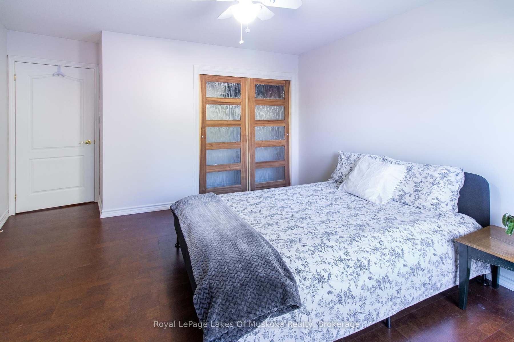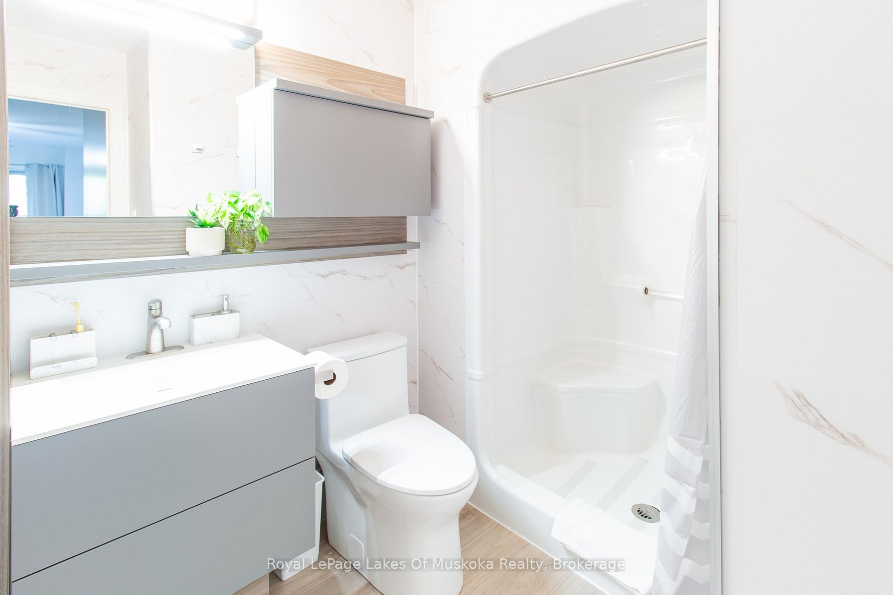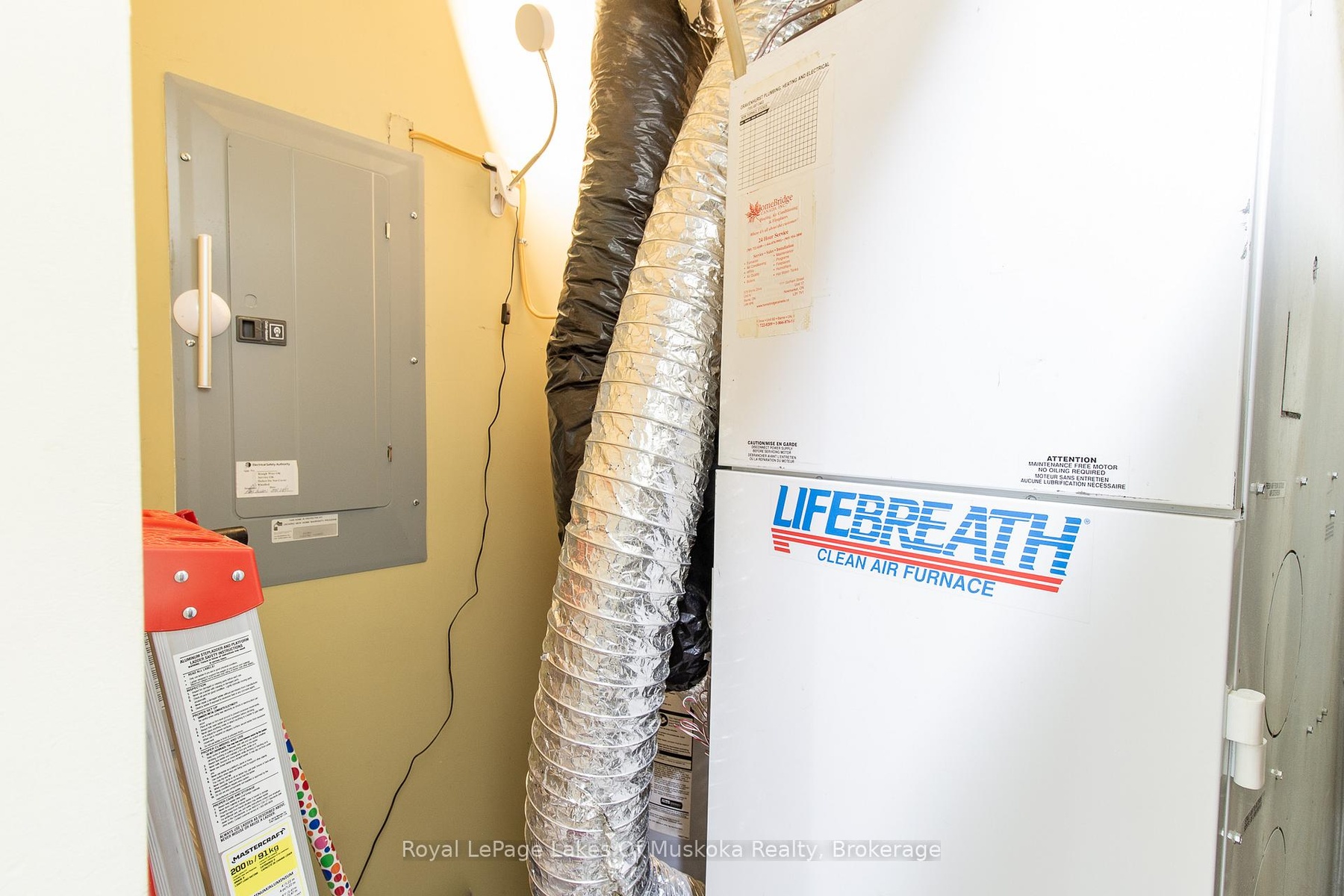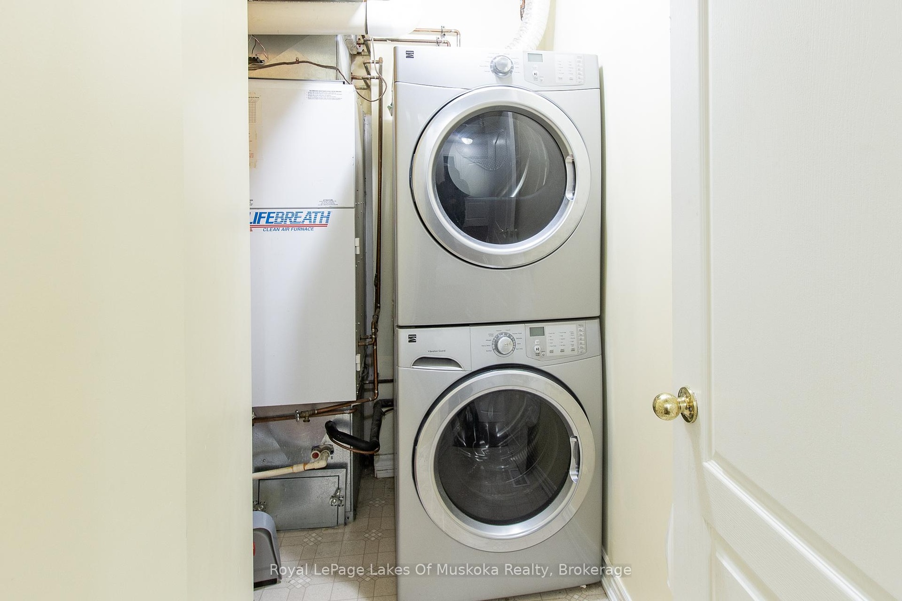 Welcome to this bright and beautifully maintained 2-bedroom plus den, 2-bathroom condo ideally located on the main floor for easy access and convenience. Freshly painted throughout, this unit offers a comfortable and modern layout perfect for retirees, professionals, or anyone looking to enjoy carefree condo living in one of Bracebridges most desirable locations. Step into the open-concept living area that leads out to a private ground-level patio, surrounded by lush privacy shrubs the perfect place to relax with your morning coffee or unwind at the end of the day. The brand new, fully renovated ensuite off the spacious primary bedroom adds a touch of luxury, while the second bathroom features a relaxing jet tub for added comfort. You'll also enjoy a dedicated underground parking space, a secure storage locker, and easy access to the buildings common areas. Located just a short walk to the Falls and downtown Bracebridge, this condo is perfectly positioned to take advantage of the many local shops, restaurants, and year-round events that make this community so special. Enjoy the best of Muskoka living comfort, convenience, and community all in one perfect package. The building is undergoing a roof replacement this spring with the Sellers covering the cost of the new A/C roof unit so the Buyer will get the comfort of knowing a new A/C will be servicing their unit.
