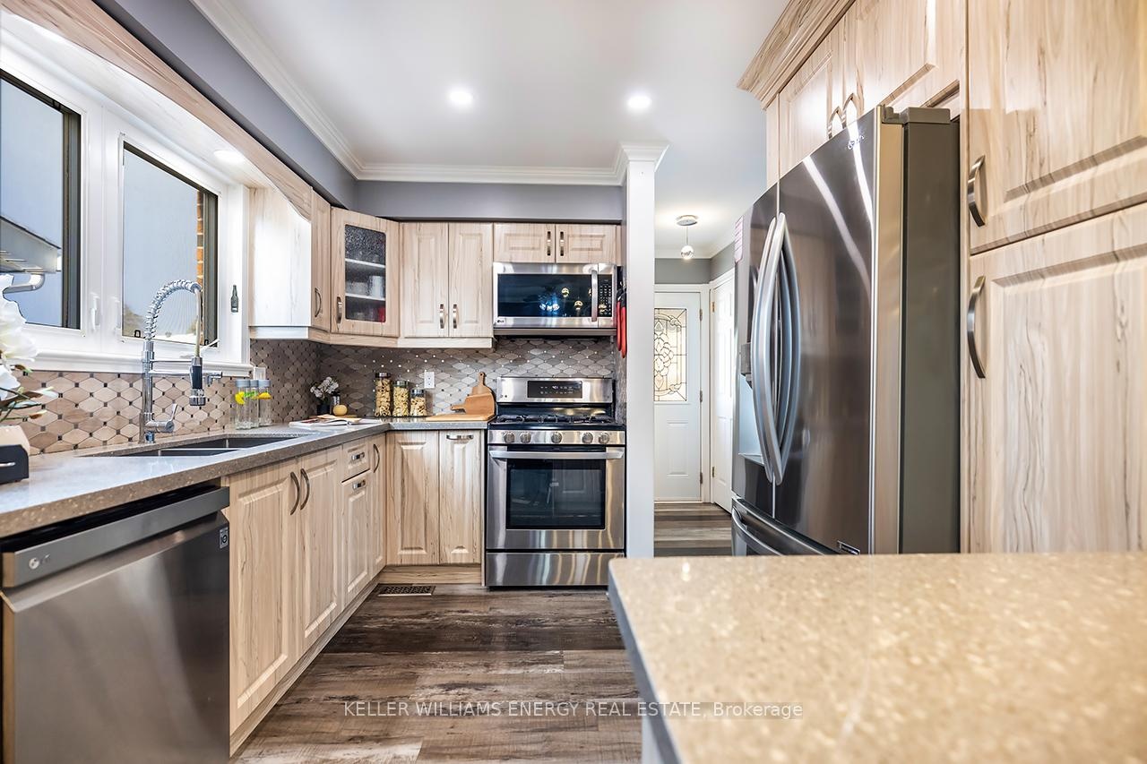 Welcome to 416 Mayfair Avenue, Oshawa a beautifully renovated two-storey detached home that combines modern finishes with family-friendly living in an unbeatable location. This stunning 3+1 bedroom, 3-bath home has been meticulously updated from top to bottom with exceptional attention to detail and offers in-law suite potential with a separate side entrance.The main floor features a bright, open-concept living and dining area with a cozy gas fireplace and a large bay window that floods the space with natural light. The custom-designed kitchen is a showstopper with quartz countertops and placentia, backsplash, high-end stainless steel appliances including a gas stove, upgraded vinyl plank flooring, pot lights, and custom cabinetry that maximizes storage and style.Upper level, youll find three spacious bedrooms, each with ample closet space, along with a luxurious 4-piece bath. The lower level extends the living space with a large recreation room featuring a wood-burning fireplace, an additional bedroom, a 2-piece bath with rough in for shower or bath under laminate flooring, and a unique custom storage area under the stairs ideal for extended family or guests.Step outside to discover even more a 12 x 20 workshop with hydro provides endless possibilities for hobbies, storage, or a home-based business. Situated on a transit route and close to schools, parks, shopping, and all amenities, this home offers the perfect balance of comfort, convenience, and functionality. With its spacious layout, quality finishes, and in-law potential, 416 Mayfair Avenue truly has it all. Dont miss your chance to live in one of Oshawas most welcoming, family-friendly neighbourhoods, this is the one you've been waiting for!