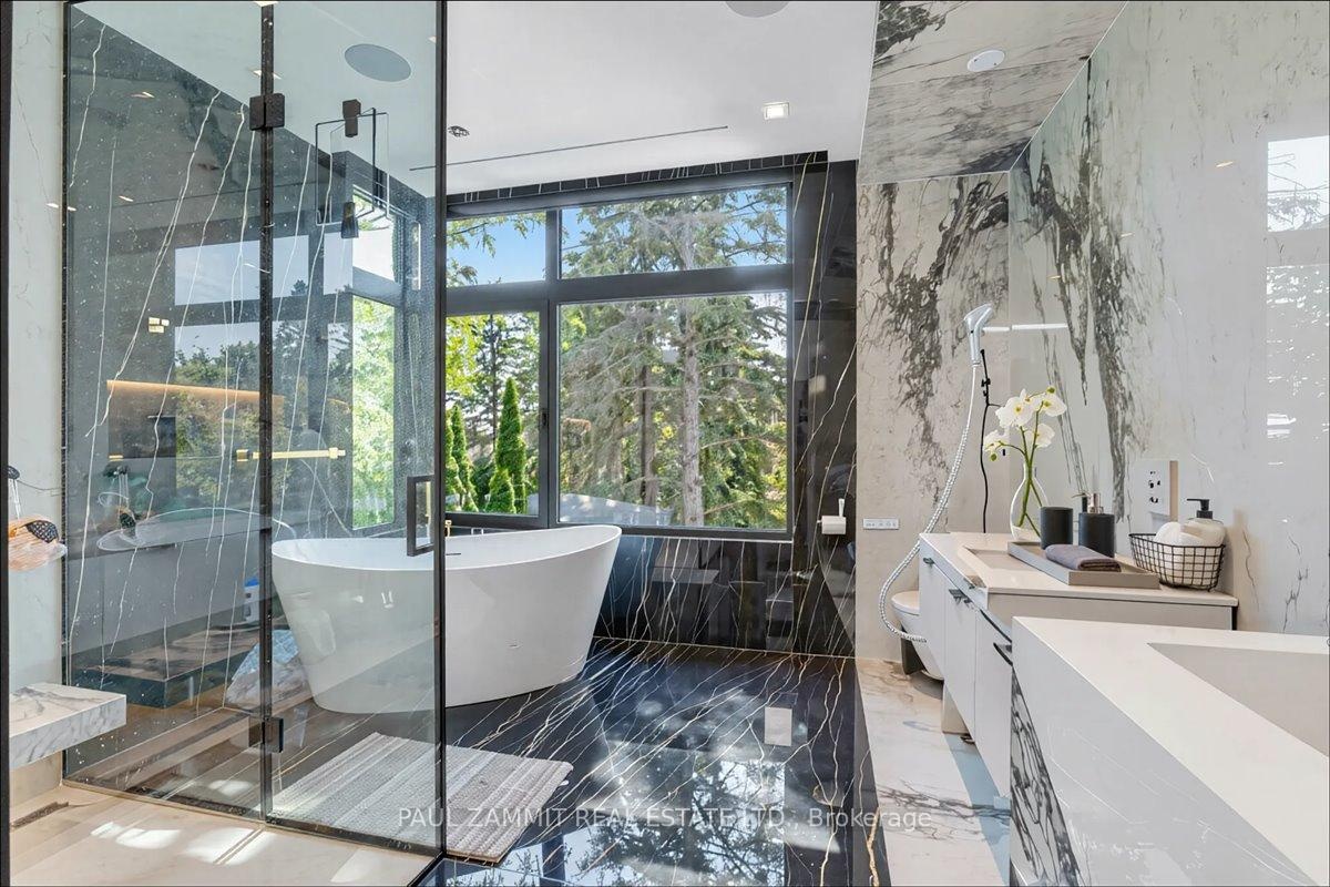 Welcome to a truly one-of-a-kind, approx 9000 SqFt of Living Space, fully customized luxury residence that sets a new standard for modern living. Every inch of this home has been thoughtfully designed and built with the finest materials, cutting-edge technology, and unparalleled attention to detail. Featuring stunning 5x10 ft Italian porcelain slabs throughout for a seamless and luxurious finish. Custom Italian Kitchen- Sleek, modern cabinetry with high-end finishes and integrated appliances. Elevator for effortless access across all levels. Heated Floors in All Bathrooms for year-round comfort. 2 Sets of Laundry Rooms (including one on the 2nd floor). Prim Bdrm has 2 Ensuites.Rift-Cut White Oak Doors and custom-built wall units and beds on the second floor for a cohesive aesthetic. Jacuzzi Tub & Steam Shower in the basement spa-inspired bathroom.Electric Draperies including Somfy motorized window treatments on the main floor. Control4 Smart Home Automation, including indoor & outdoor security cameras, fingerprint scanner at main entry, and automated lighting, sound, climate & blinds. 2 Skylights for natural light and architectural appeal. Heated Driveway, Backyard Deck, Main Floor Balcony & Basement. Enjoy luxury comfort outdoors and in. 3 Boilers, 2 Furnaces, and 2 A/C Units for precision climate control. Infinity Pool (44x18 ft) with Pentair pump, GlowBright LED lighting, salt system, separate pump & hot tub. 2-Car Garage with EV chargers, silent garage door opener, and custom automated gates with remotes. Iron Fencing for enhanced security and curb appeal.Thermally Treated Wood Ceilings on outdoor balconies.Glass Handrails throughout for a clean, open look. Sprinkler System and 2 Electrical Panels for ultimate functionality. This exceptional home is a rare opportunity for buyers who demand nothing less than the best. Whether you're entertaining in style, enjoying spa-like amenities at home, or relaxing in your private outdoor oasis this home truly has it all.