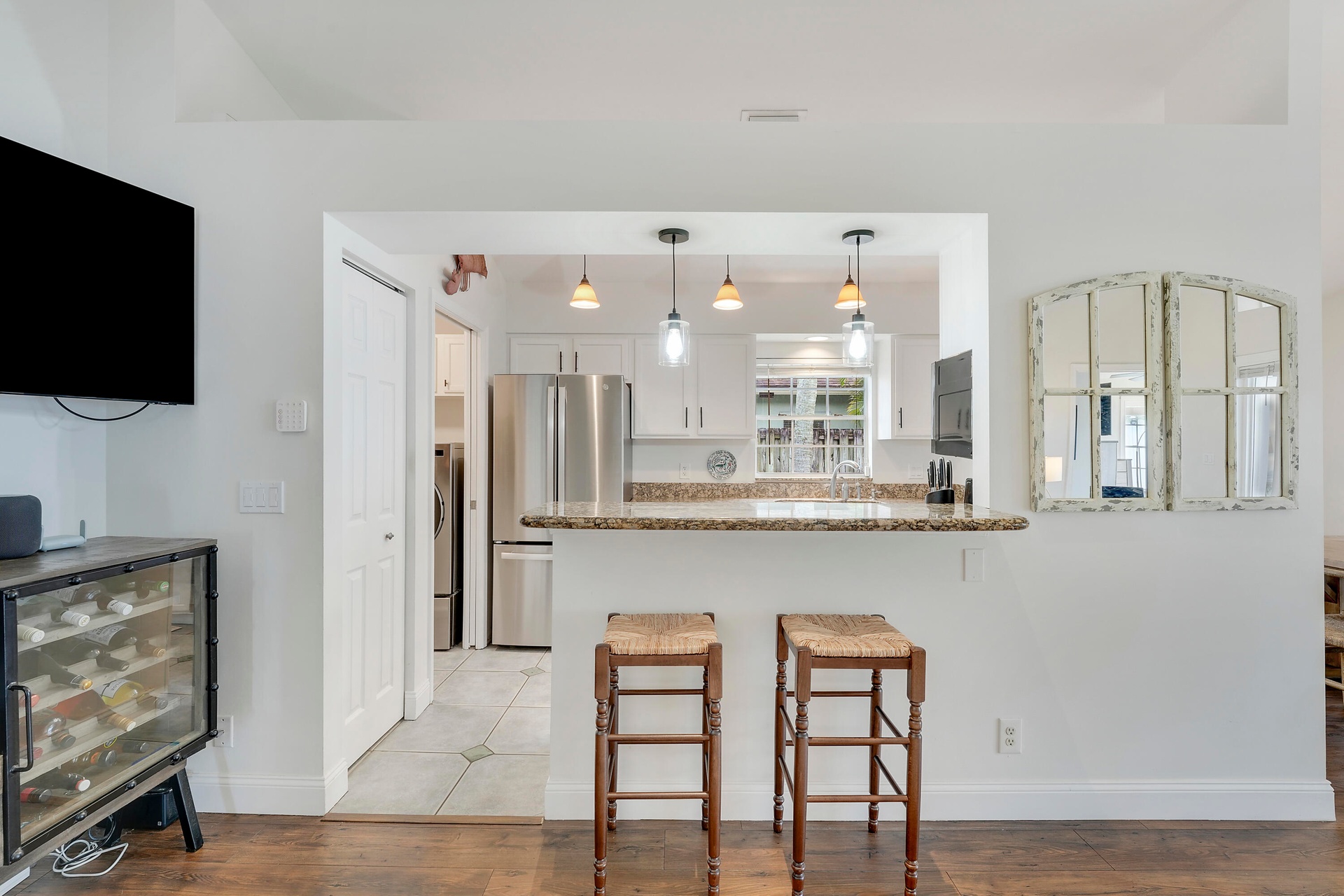 DescriptionThis beautifully maintained 3-bedroom, 2-bathroom, 2-car garage CBS home is located at the end of a quiet street, offering both privacy and no HOA restrictions. Step inside to an open floor plan with high ceilings, LED lighting, and Lutron Smart switches, allowing full control of your home's illumination from anywhere. The spacious living and dining areas flow effortlessly to the screened patio, perfect for entertaining. The owner's suite features a large walk-in closet and a fully renovated bathroom with new tile, frameless glass shower, dual sinks, and a soaking tub. Two additional guest bedrooms include organized closets and a remodeled guest bath. The interior laundry room is equipped with a new washer/dryer on pedestals and a convenient folding station.